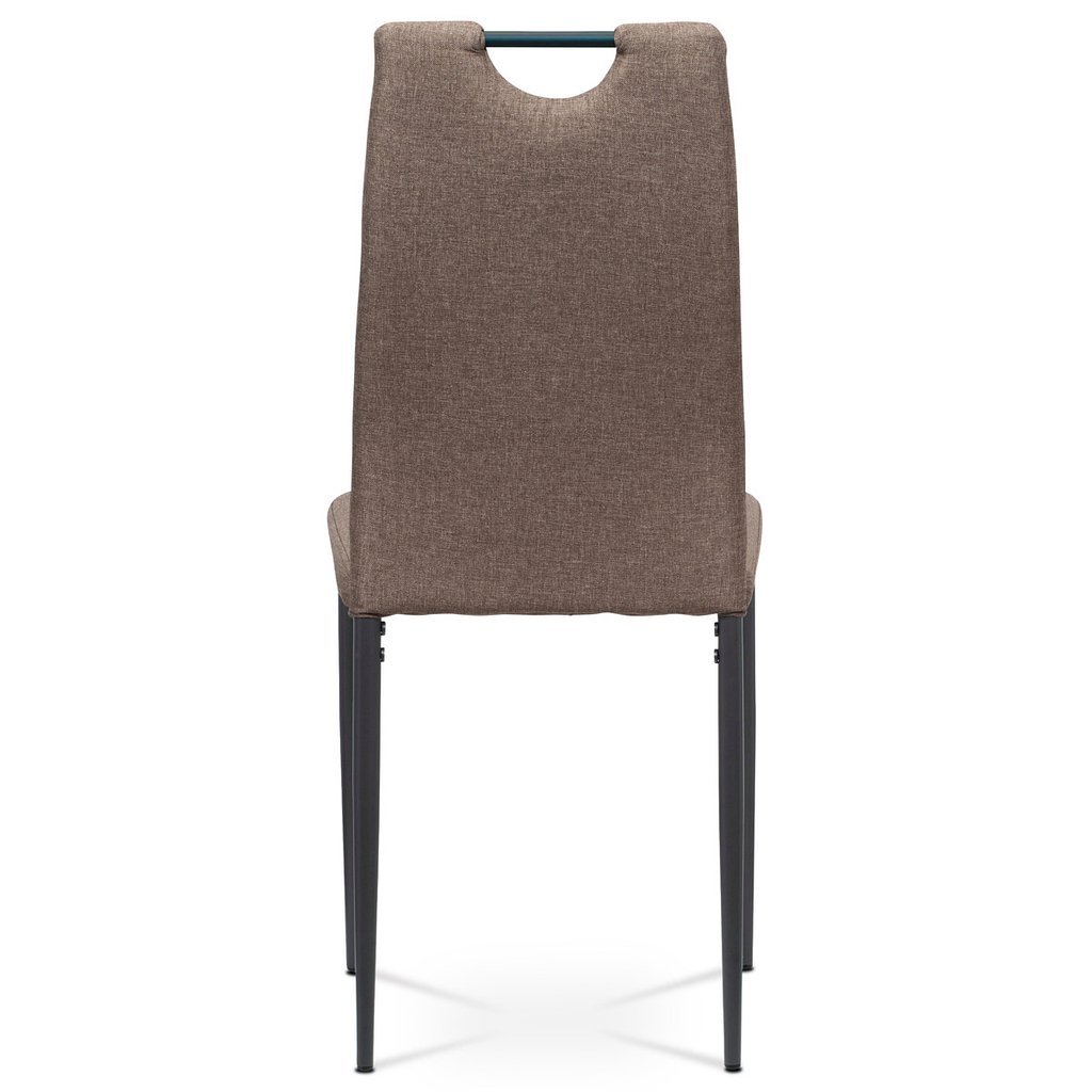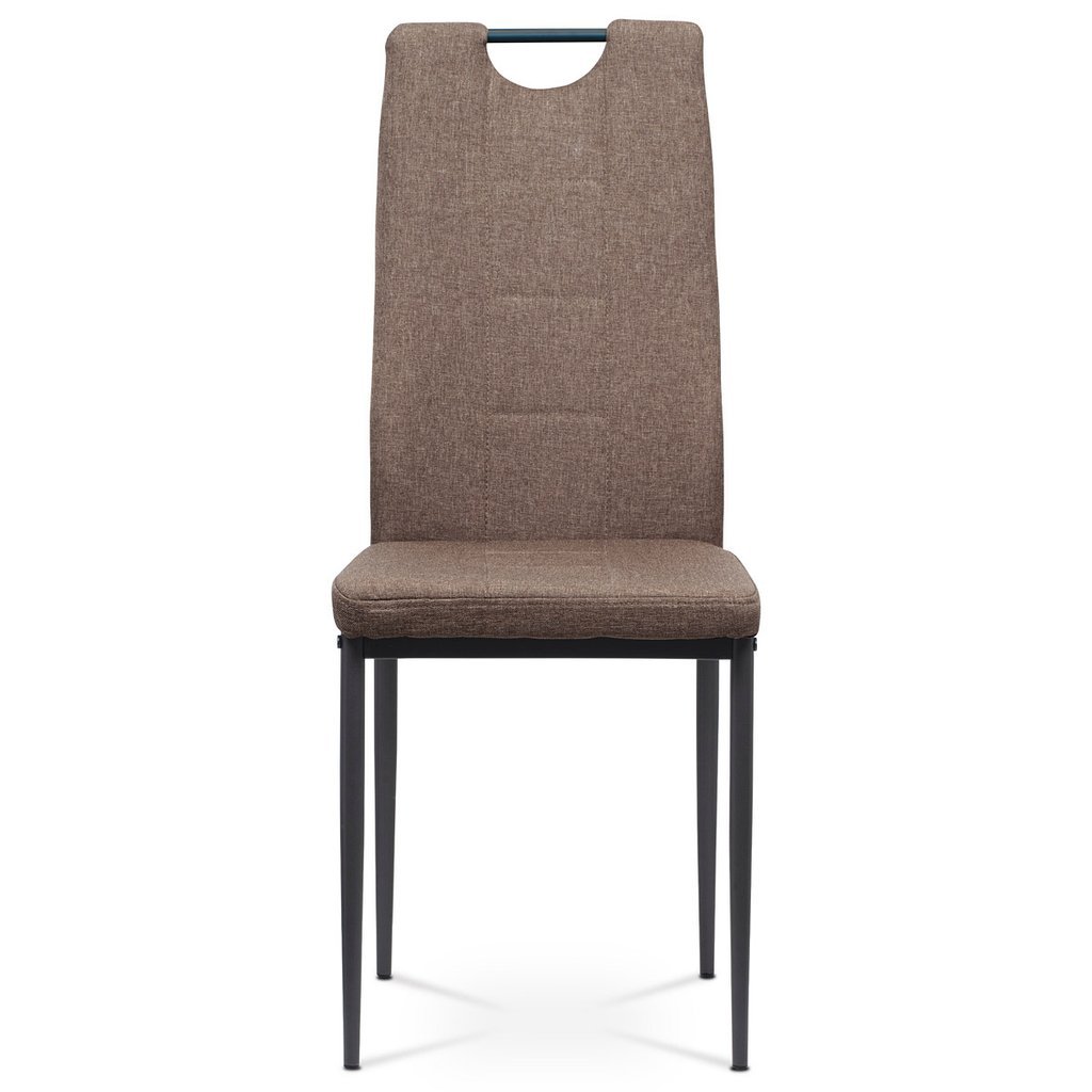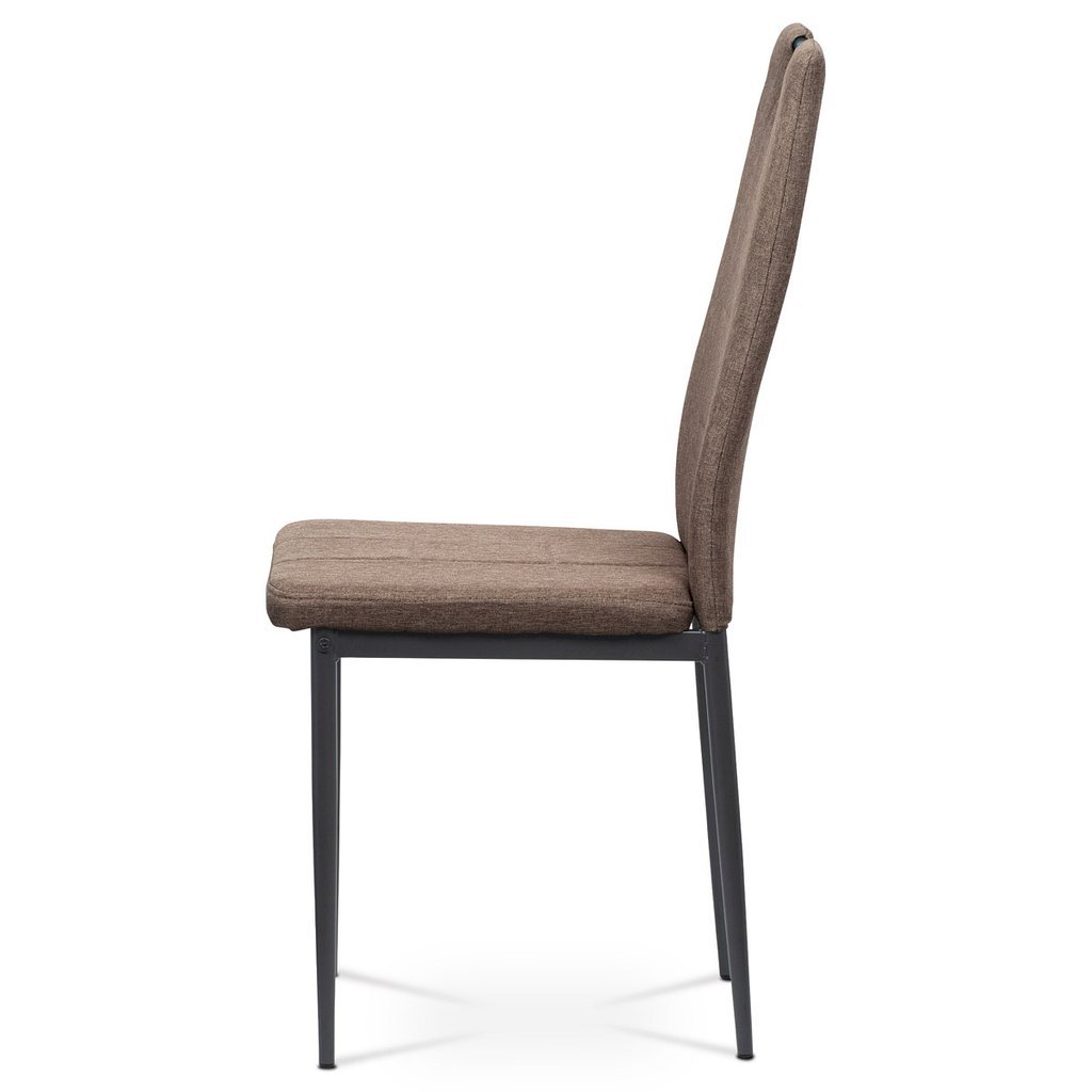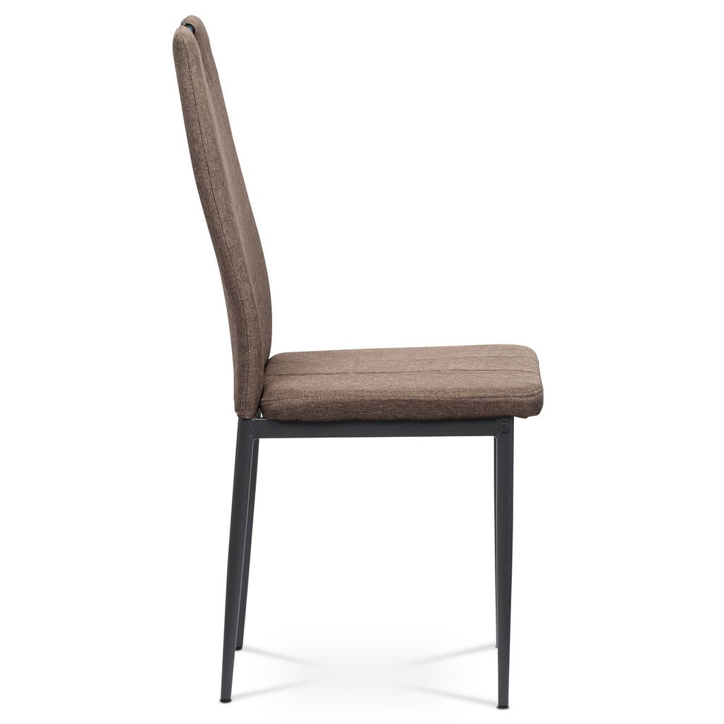 Jedálenská stolička ARIEL v elegantnej hnedej látke prináša komfort, moderný dizajn a spoľahlivú kvalitu do vašej jedálne.