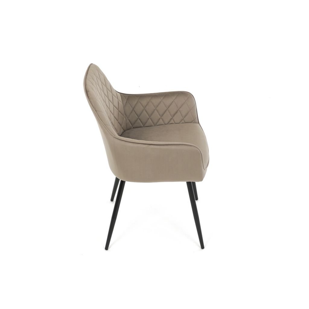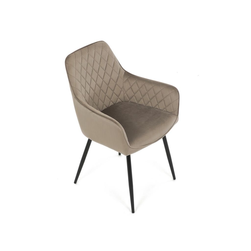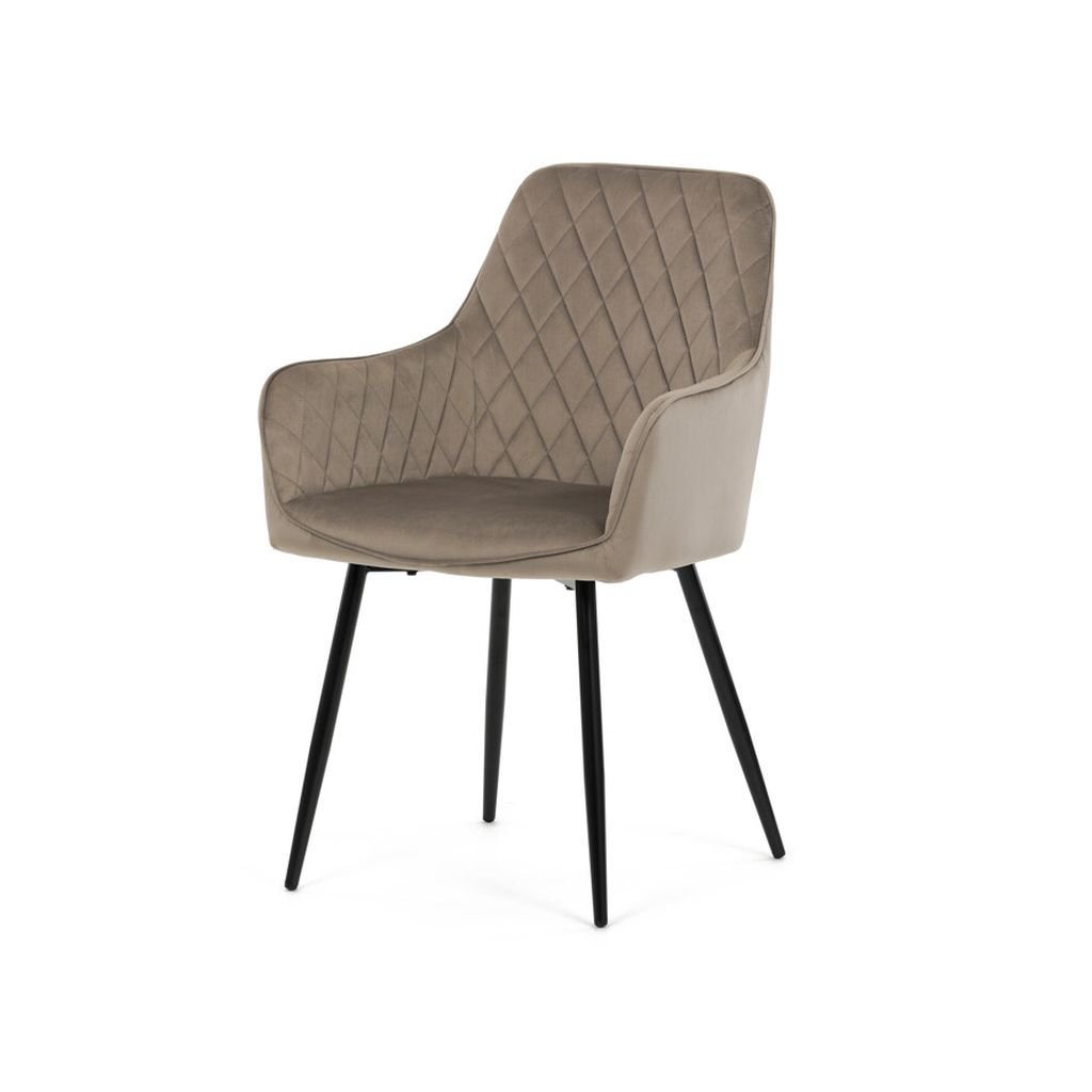 Jedálenská stolička ARNO v hnedom odtieni zamatovej látky je ideálnou voľbou pre tých, ktorí hľadajú kombináciu elegancie a pohodlia. Jej moderný dizajn s prešitím v kosoštvorcovom vzore dodáva šarm každému jedálenskému stolu a zaručuje, že sa stolička stane štýlovým doplnkom vášho interiéru.