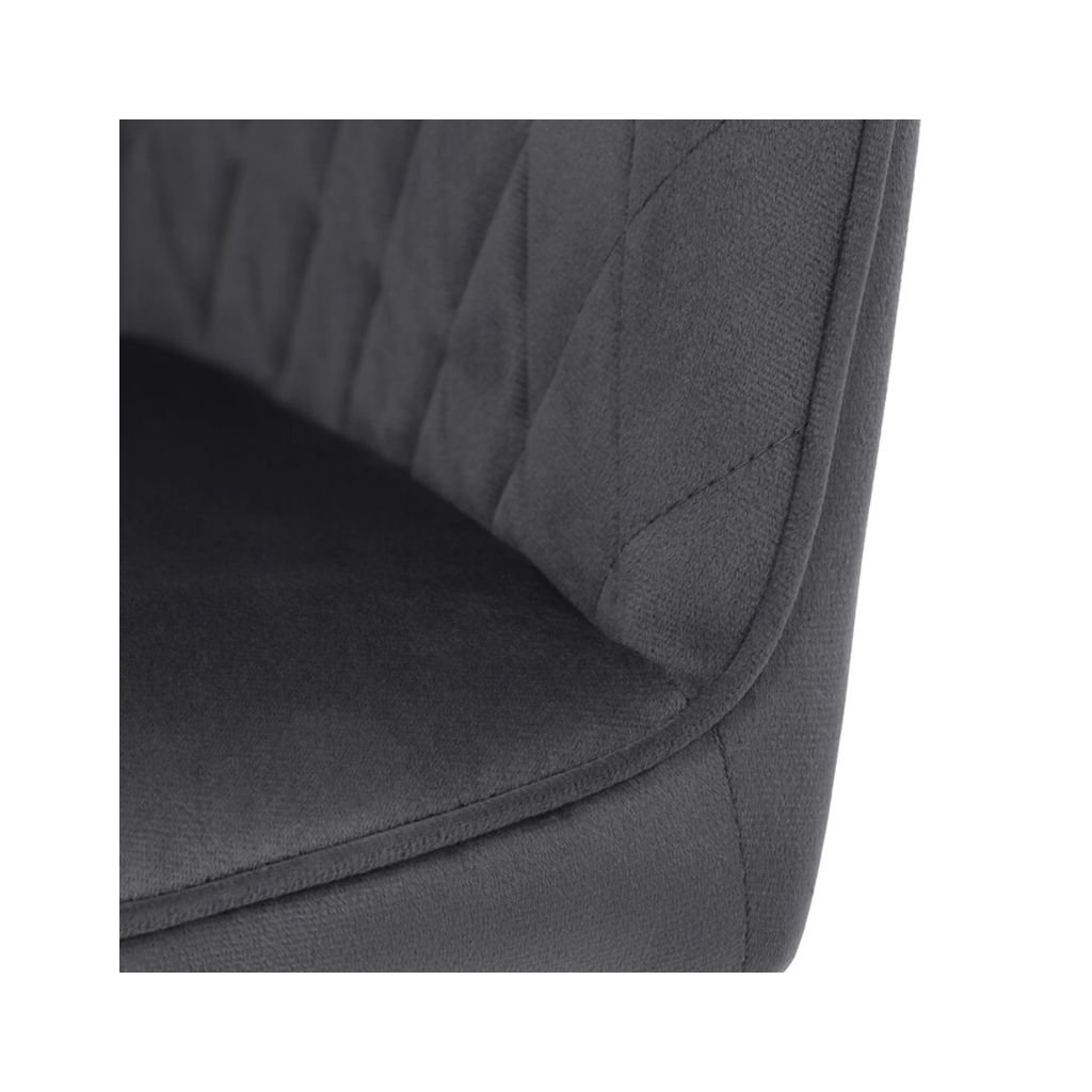 - Elegantný dizajn: Sivá zamatová látka s prešívaním v kosoštvorcovom vzore dodáva stoličke moderný vzhľad.
