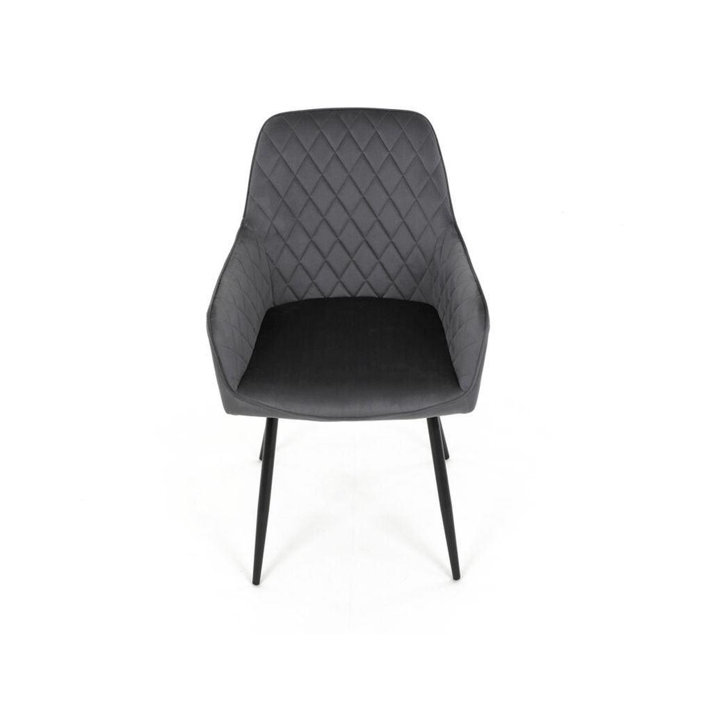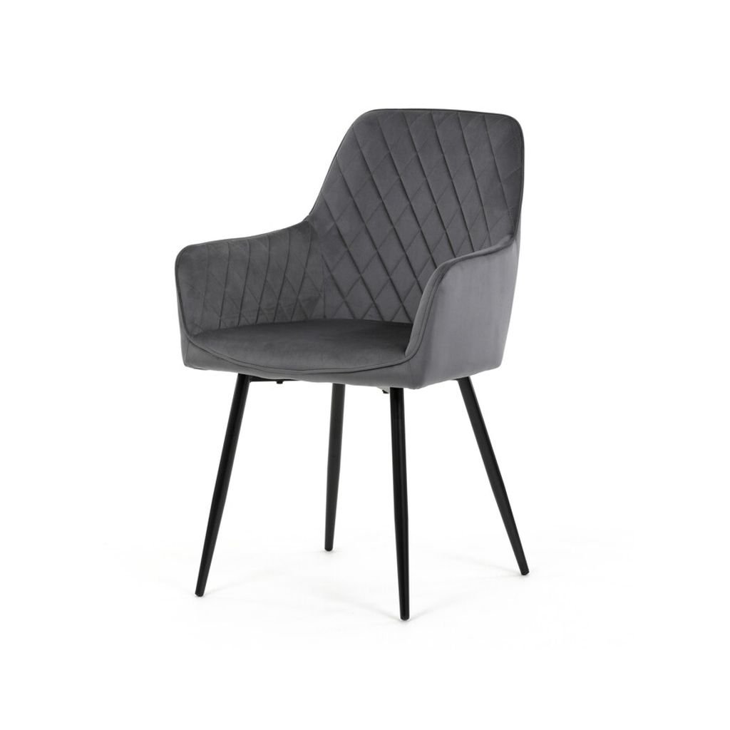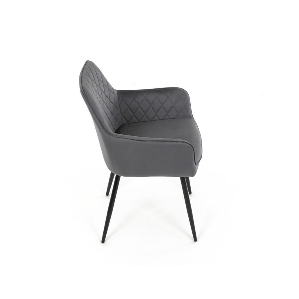 Jedálenská stolička ARNO v elegantnej sivé zamatovej látke predstavuje skvelé spojenie komfortu a moderného dizajnu, ktorý obohatí váš interiér. S prešívaním v kosoštvorcovom vzore na operadle a podrúčkach ponúka nielen štýlový vzhľad, ale aj vysokú úroveň pohodlia pri sedení. Táto stolička je ideálnou voľbou pre každodenné používanie, či už pri rodinných jedlách alebo spoločenských stretnutiach.