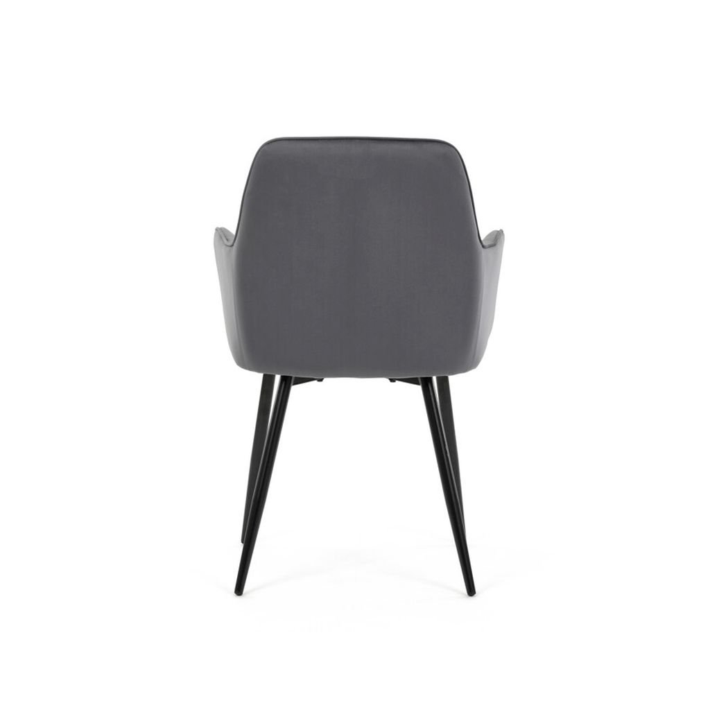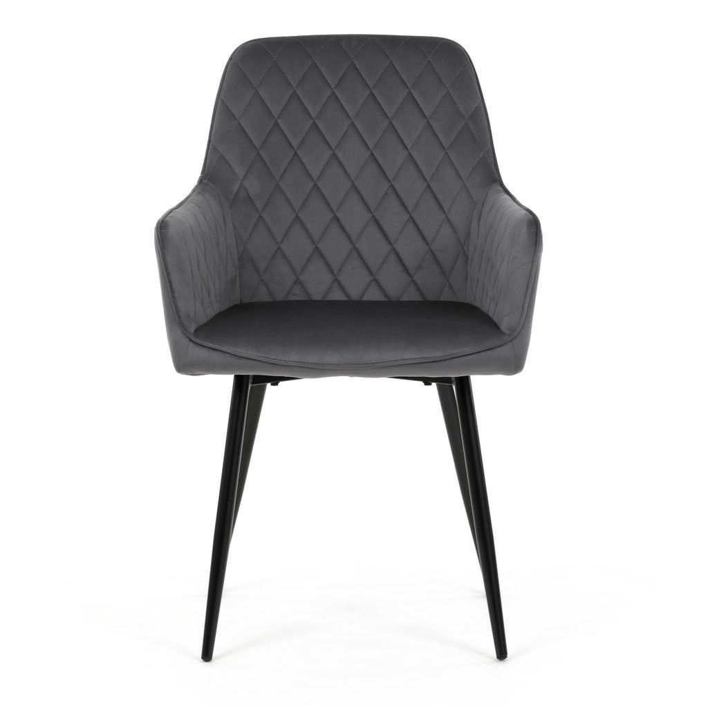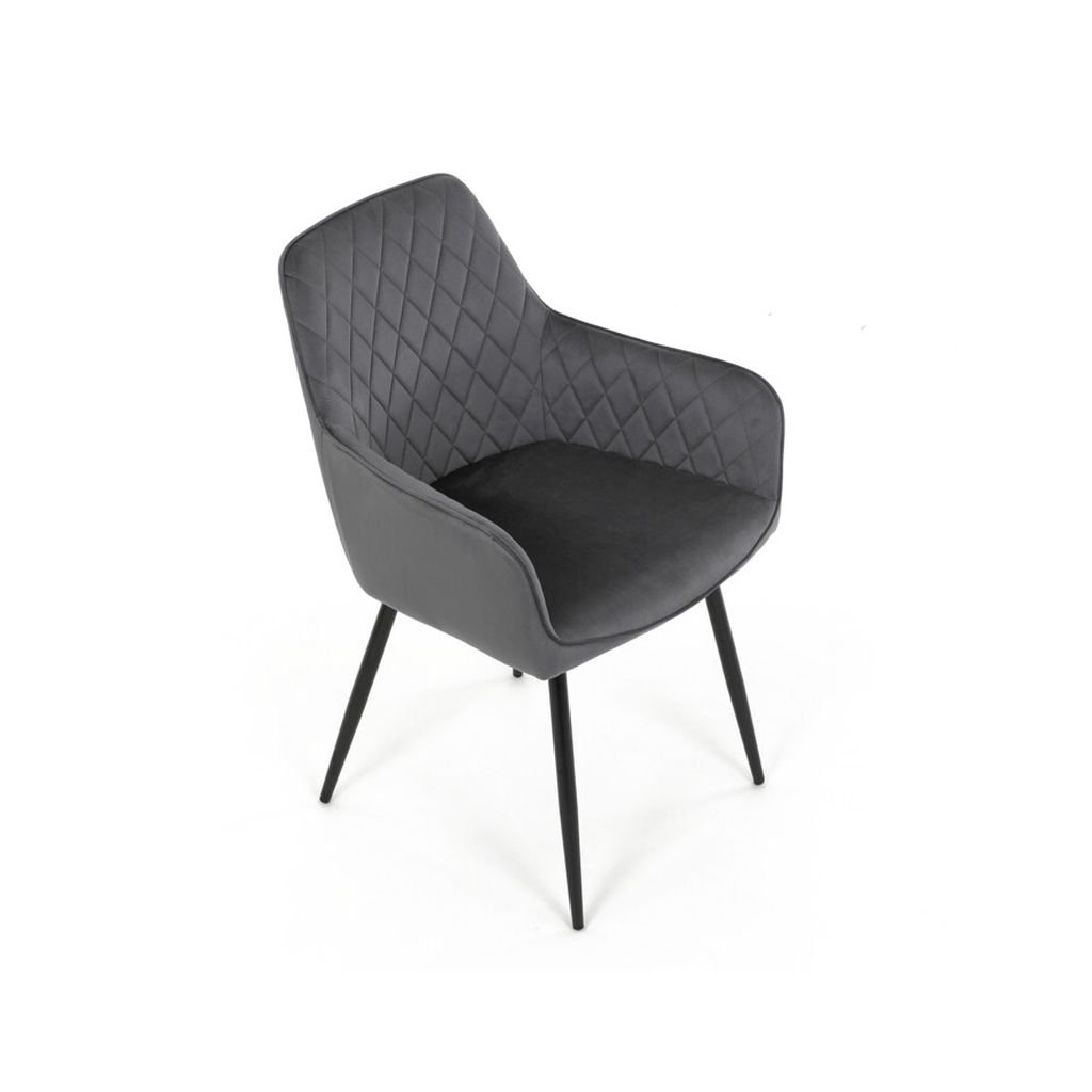 Jedálenská stolička ARNO v elegantnej sivé zamatovej látke predstavuje skvelé spojenie komfortu a moderného dizajnu, ktorý obohatí váš interiér. S prešívaním v kosoštvorcovom vzore na operadle a podrúčkach ponúka nielen štýlový vzhľad, ale aj vysokú úroveň pohodlia pri sedení. Táto stolička je ideálnou voľbou pre každodenné používanie, či už pri rodinných jedlách alebo spoločenských stretnutiach.