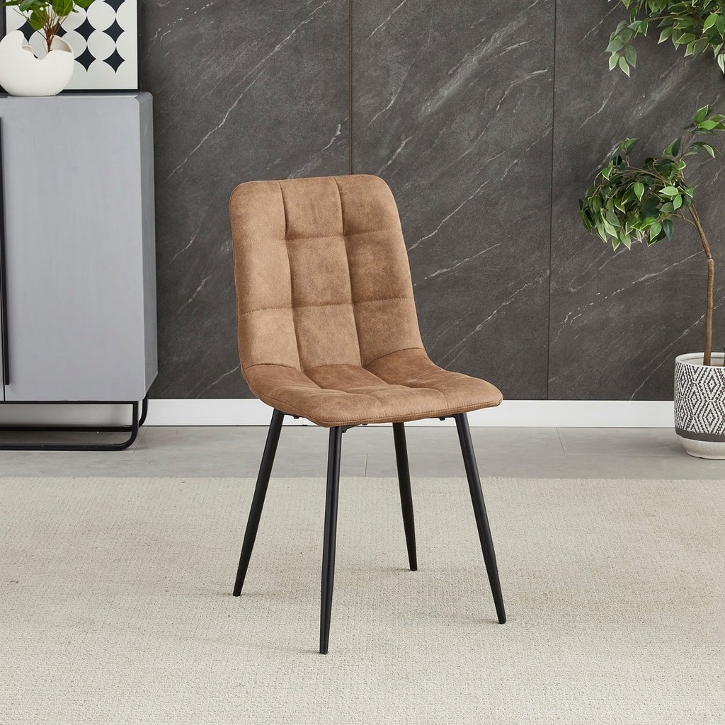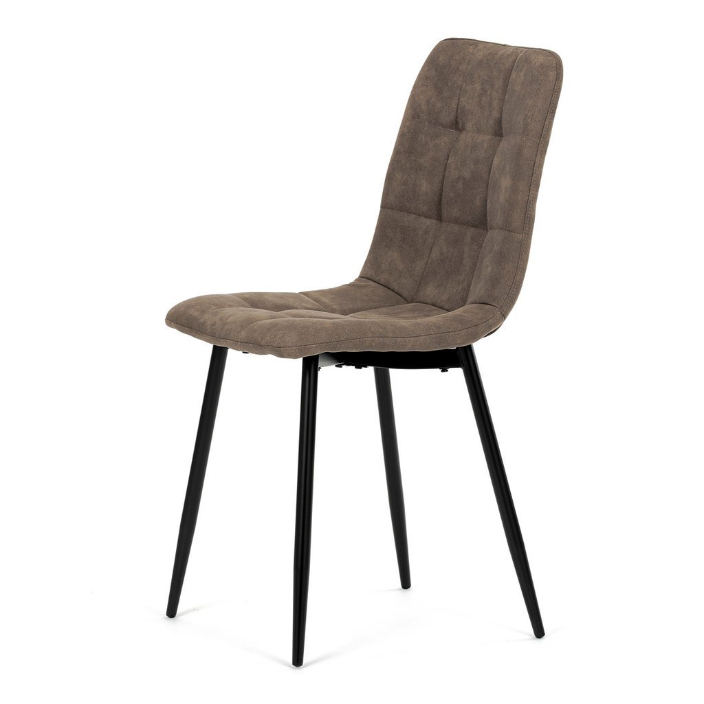 Jedálenská stolička CARLA v hnedom odtieni je perfektnou voľbou pre moderné jedálne, ktorých dizajn čerpá z industriálneho štýlu. Svojou látkou vintage, ktorá imituje kožu, dodáva interiéru šarm a eleganciu. Elegantné prešívanie a čierne kovové nohy nielenže zabezpečujú vynikajúci vzhľad, ale aj stabilitu a odolnosť.