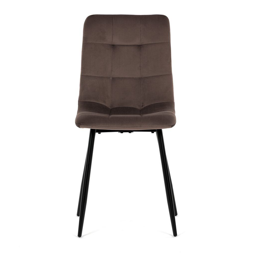 Jedálenská stolička CARLA v elegantnej hnedej farbe je ideálnou voľbou pre každý moderný interiér. Jej čalúnenie z kvalitnej zamatovej látky pôsobí na dotyk luxusne a poskytuje vynikajúce pohodlie pri sedení. Stolička je navrhnutá v štýle, ktorý spája industriálne a moderné prvky, čím oživí vašu jedáleň alebo kuchyňu.