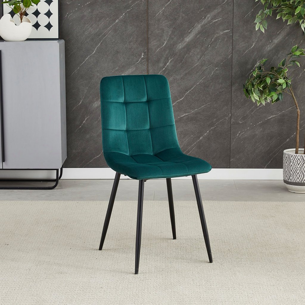 Jedálenská stolička CARLA v elegantnej zelenej farbe je dokonalým doplnkom pre moderné interiéry. Jej zamatová látka a dizajnové prešitie vytvárajú štýlový a luxusný vzhľad, ktorý osloví každého. S kombináciou industriálneho štýlu a pohodlného sedenia zabezpečuje ideálne miesto pre rodinné stretnutia alebo romantické večere.