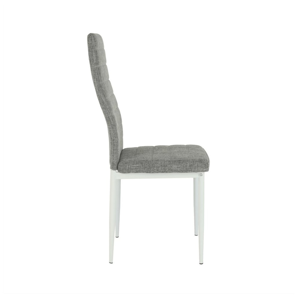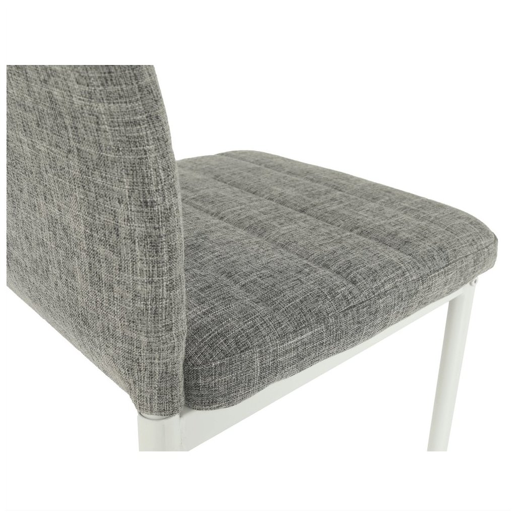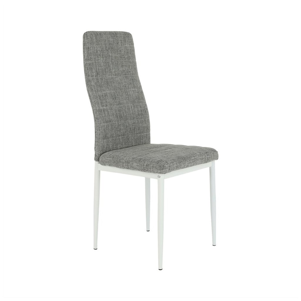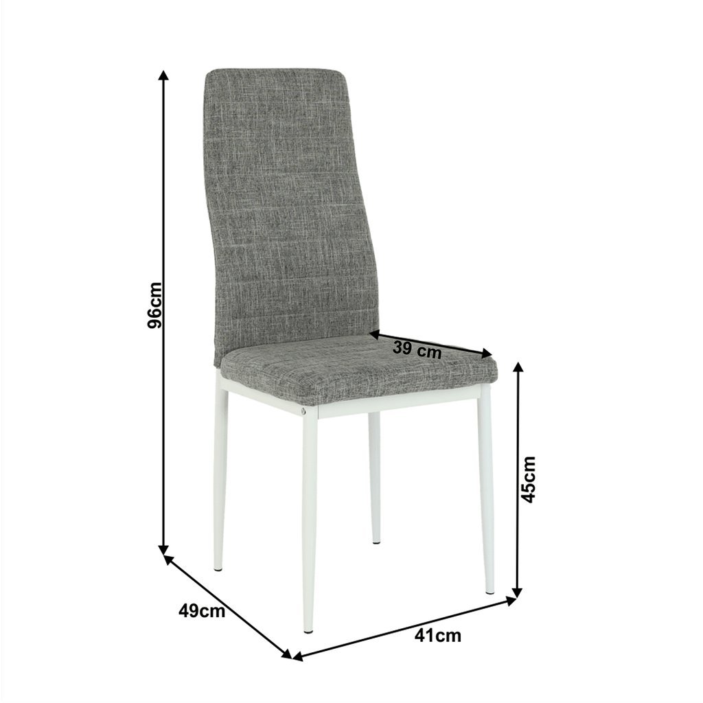 Jedálenská stolička COLETA v elegantnej sivej látke dodá vášmu interiéru moderný nádych. Stabilný kovový rám v bielej farbe zaručuje pohodlie a štýl. Rozmery: 41x49x96 cm. Nosnosť 110 kg.