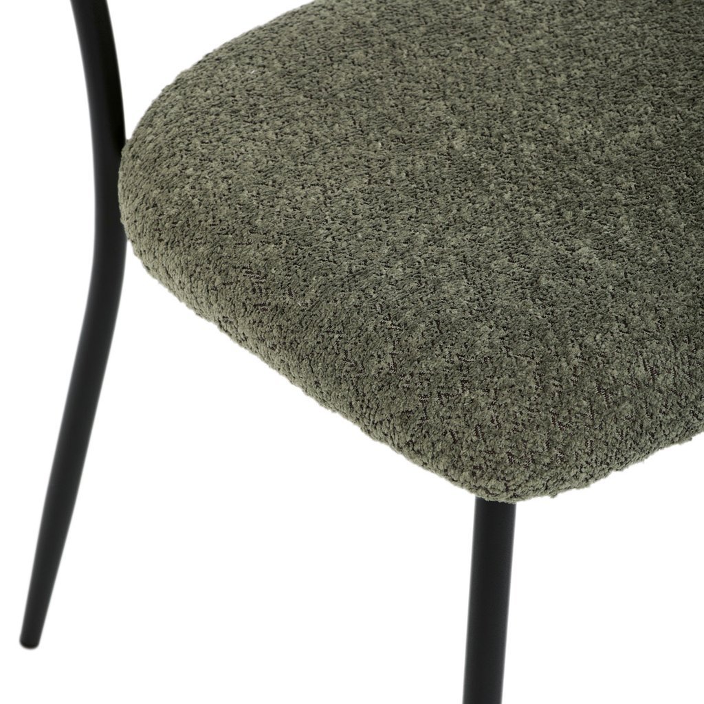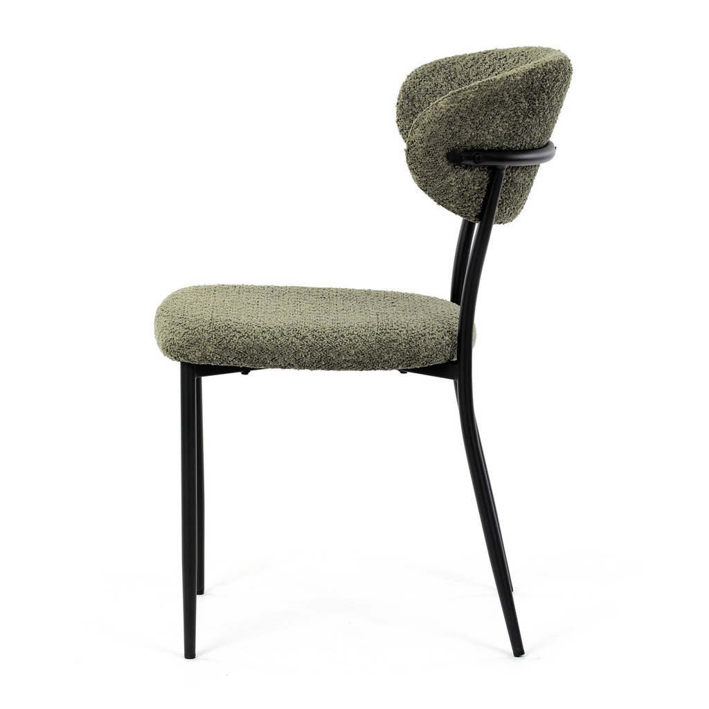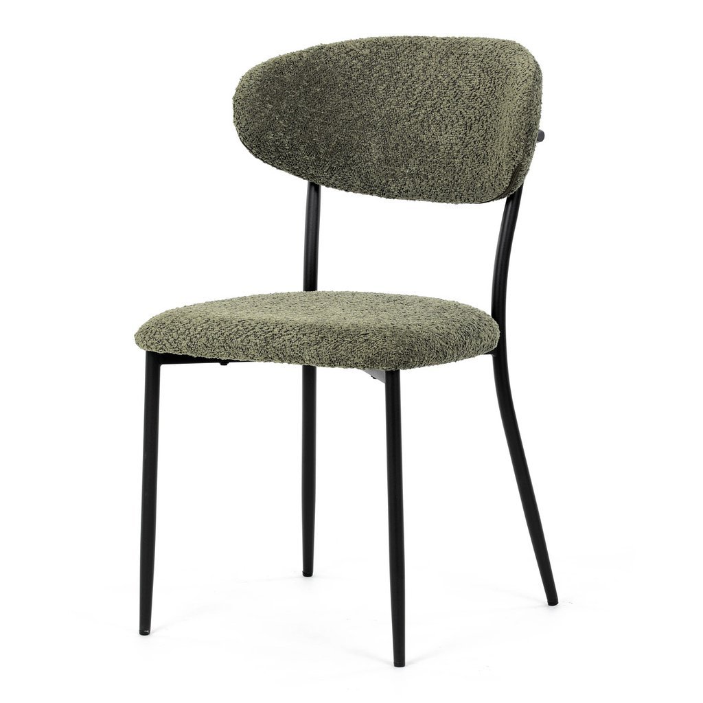 Jedálenská stolička DANUTA v zelenom prevedení je dokonalou kombináciou elegancie a funkčnosti. Je vyrobená z kvalitnej látky Bouclé, ktorá ponúka moderný a útulný vzhľad, ideálne sa hodí do industriálneho štýlu interiérov. Čierne kovové nohy stoličky zabezpečujú stabilitu a odolnosť, čím sa stáva ideálnou voľbou nielen na každodenné sedenie, ale aj na slávnostné príležitosti.