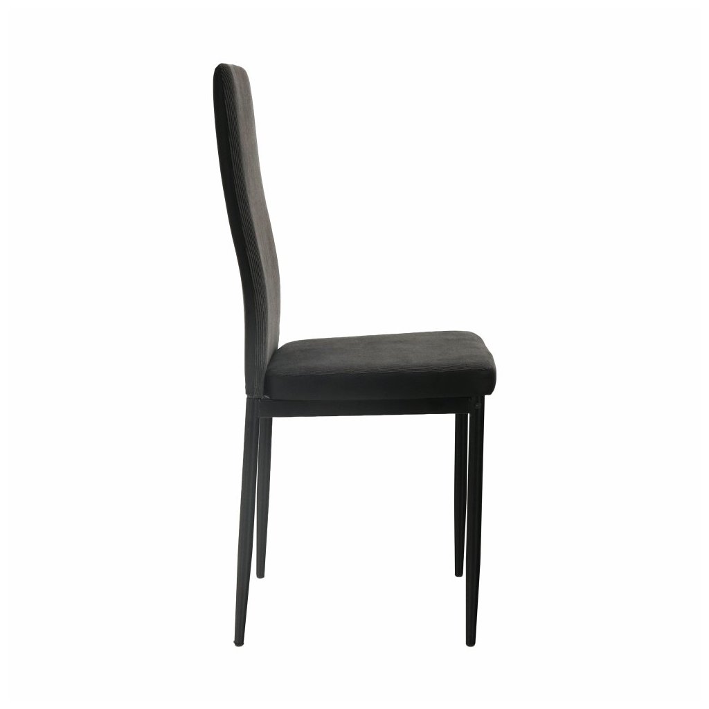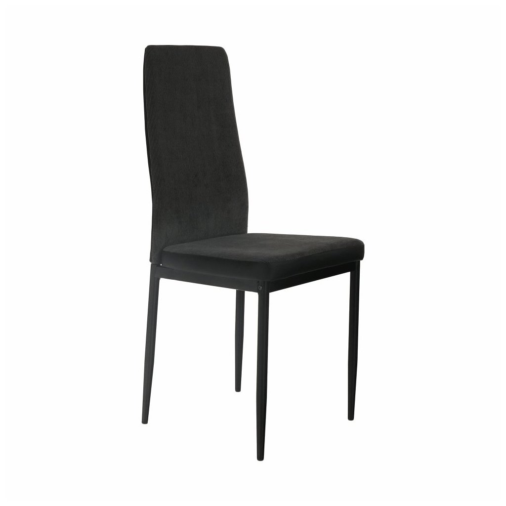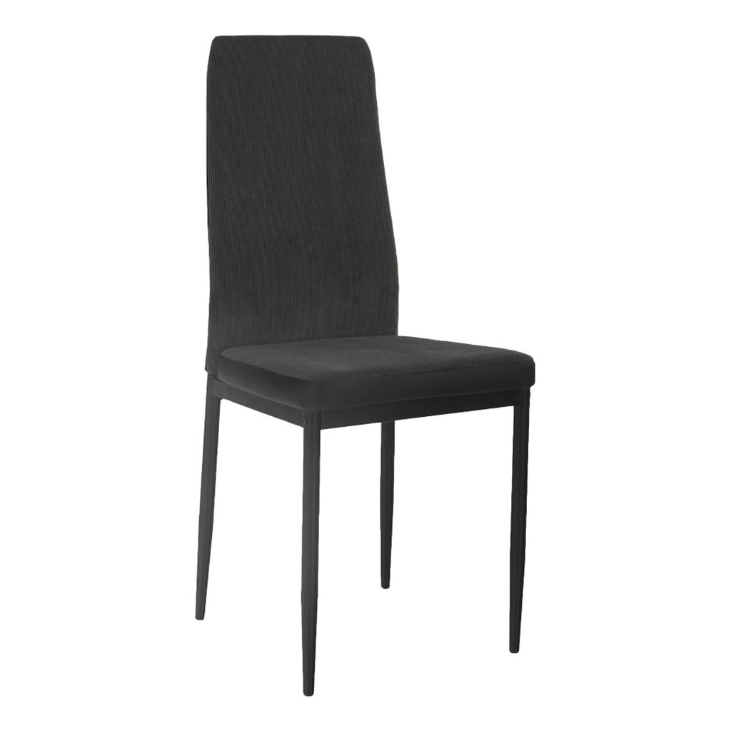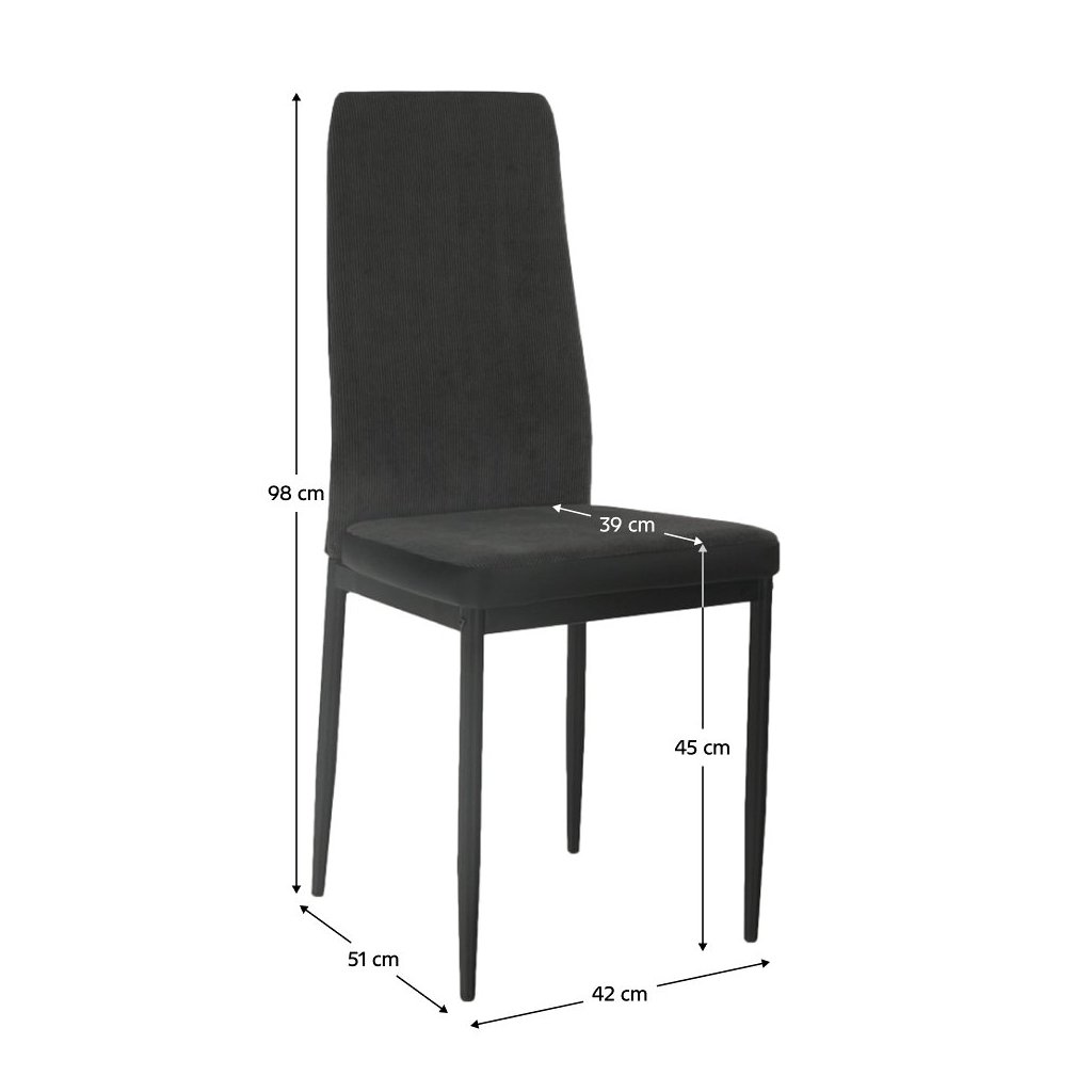 Jedálenská stolička ENRA je dokonalým spojením moderného dizajnu a praktickosti. Jej elegantná tmavosivá látka v kombinácii s čiernymi kovovými nohami vytvára štýlový a nadčasový vzhľad, ktorý sa hodí do každého interiéru. S touto stoličkou si užijete nielen pohodlie, ale aj estetický zážitok pri každom jedle.