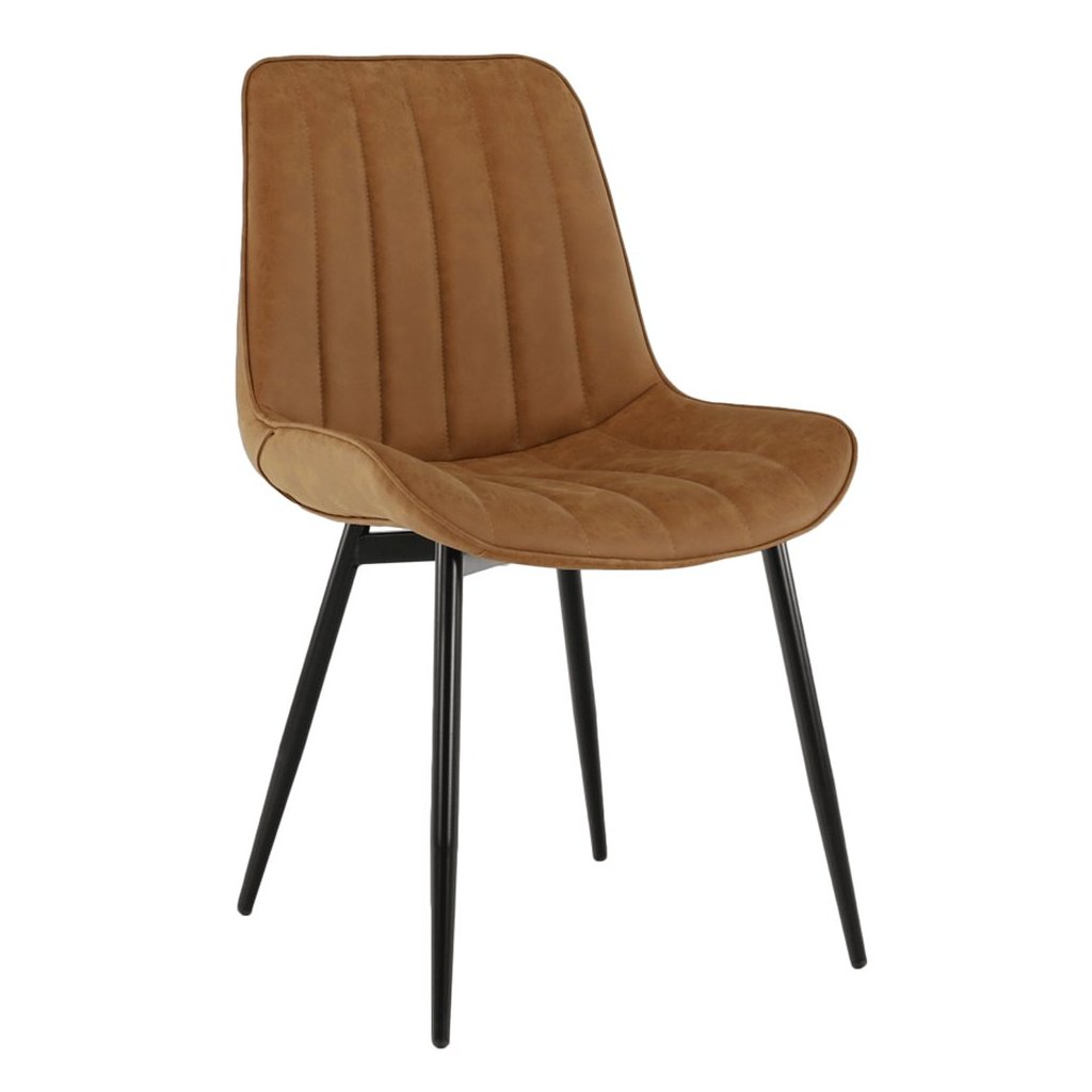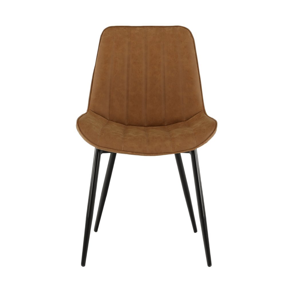 Jedálenská stolička HAZAL v hnedej ekokoži kombinuje moderný dizajn s pohodlím. Kovová čierna konštrukcia zaručuje stabilitu a nosnosť až 110 kg. Rozmery: 49x57x85 cm. Dodávaná v demonte.