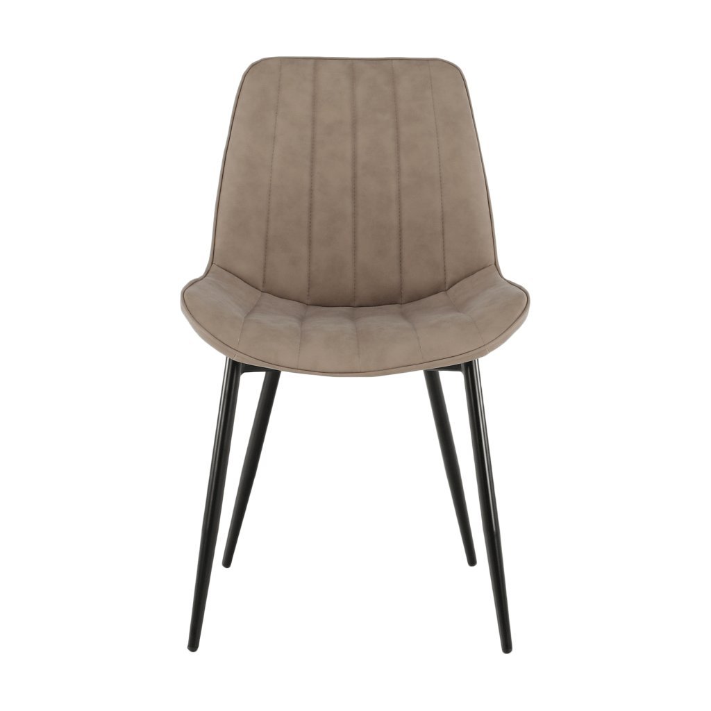 Jedálenská stolička HAZAL v sivohnedej ekokoži a čiernom kovovom ráme skvele doplní váš interiér. Moderné dekoratívne šitie a pohodlné sedenie s nosnosťou 110 kg. Rozmery: 49x57x85 cm.