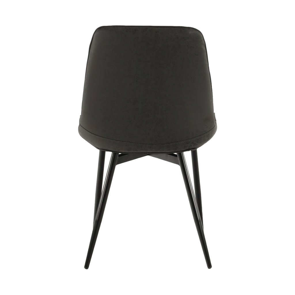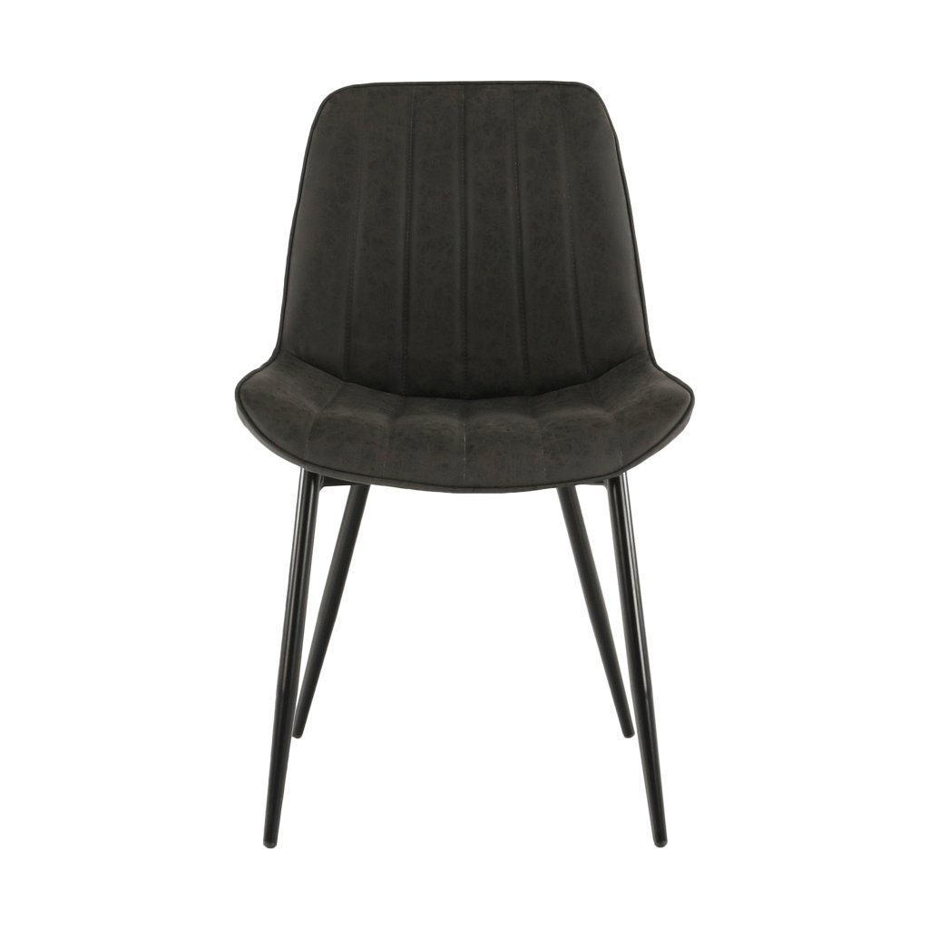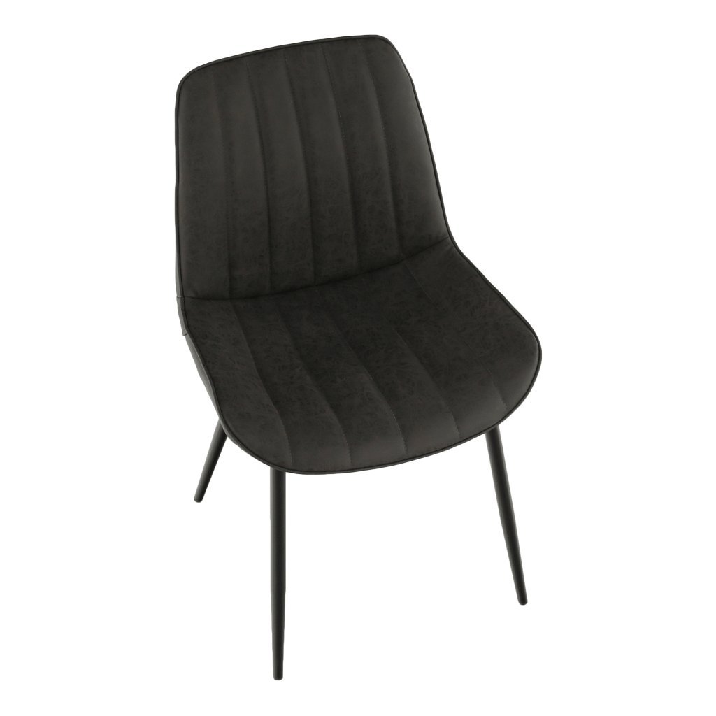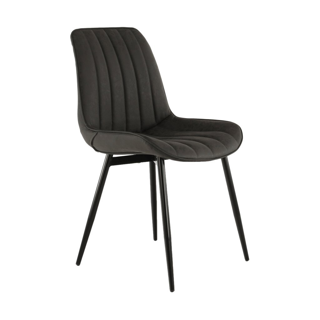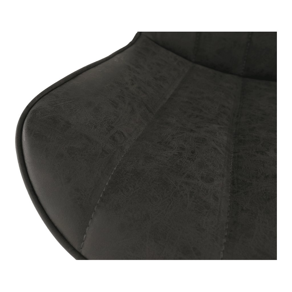 Jedálenská stolička HAZAL v tmavosivej ekokoži kombinuje moderný dizajn s dekoratívnym šitím. Kovová konštrukcia v čiernej farbe zaisťuje stabilitu a nosnosť 110 kg. Rozmery: 49x57x85 cm.