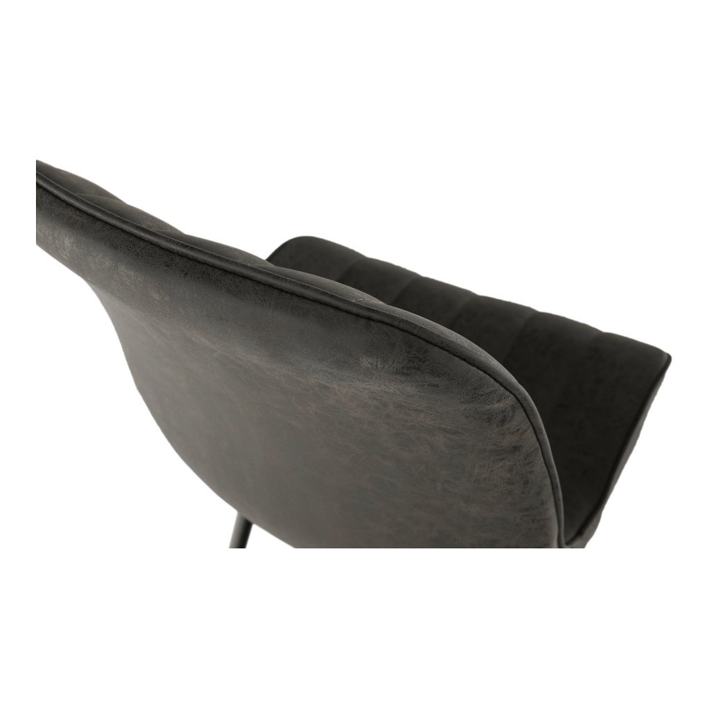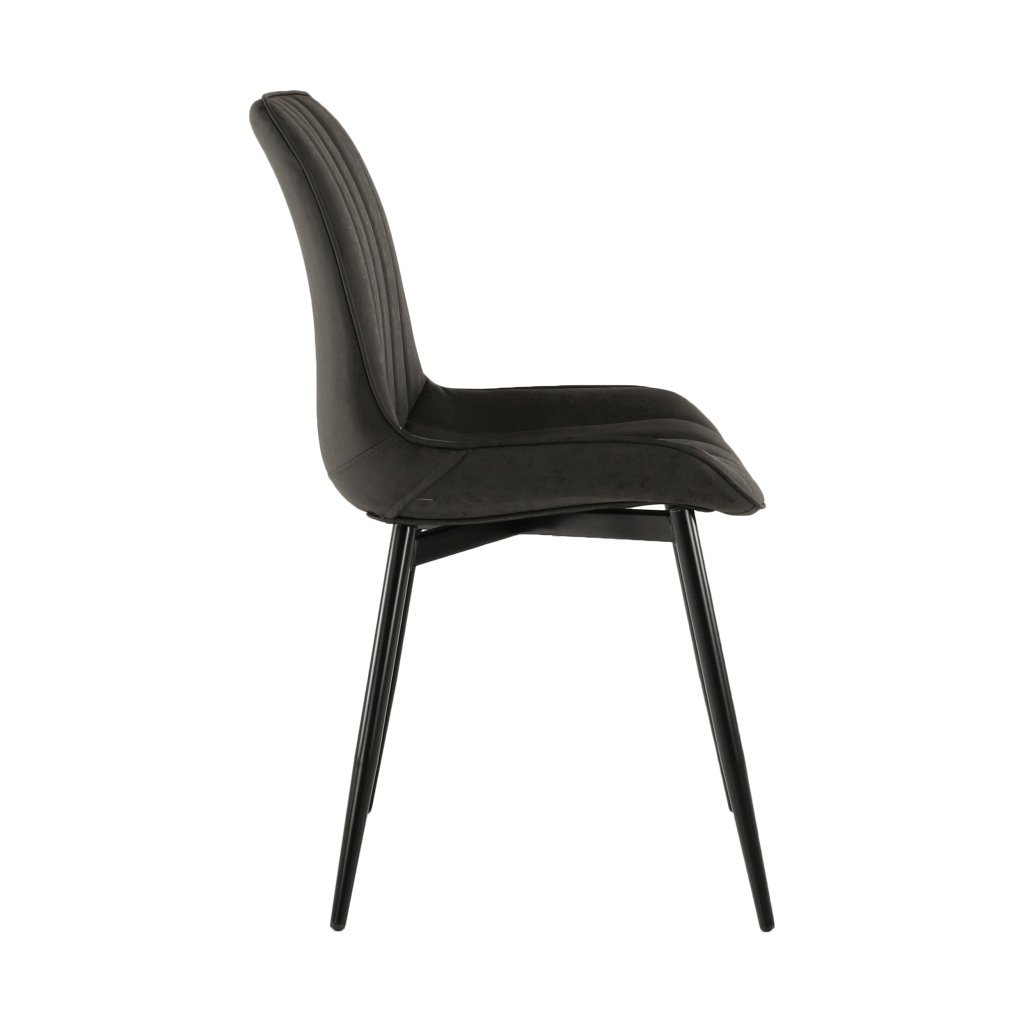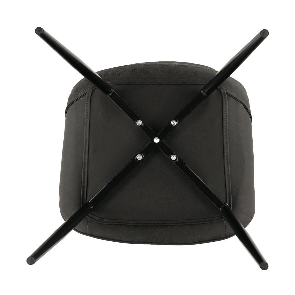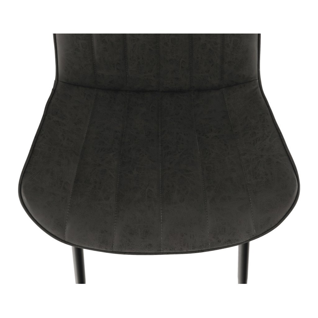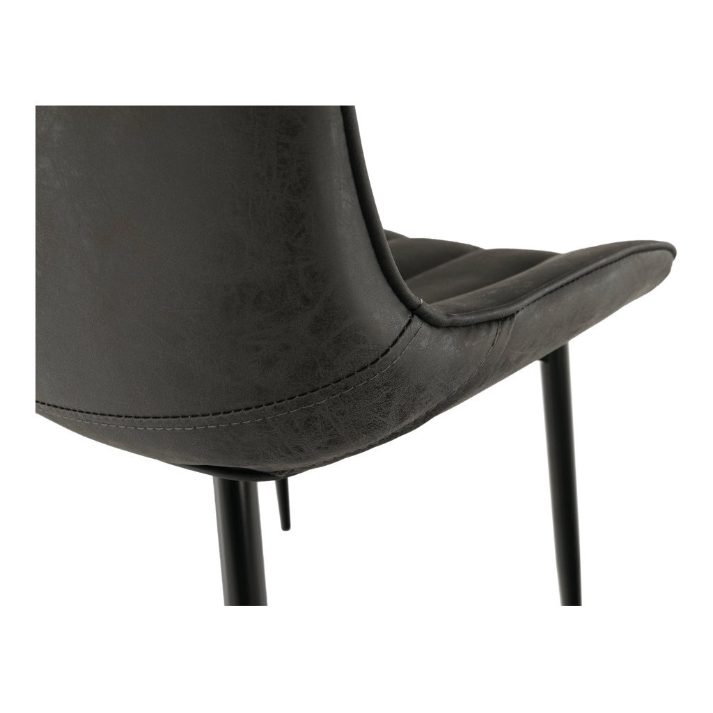 Jedálenská stolička HAZAL v tmavosivej ekokoži kombinuje moderný dizajn s dekoratívnym šitím. Kovová konštrukcia v čiernej farbe zaisťuje stabilitu a nosnosť 110 kg. Rozmery: 49x57x85 cm.