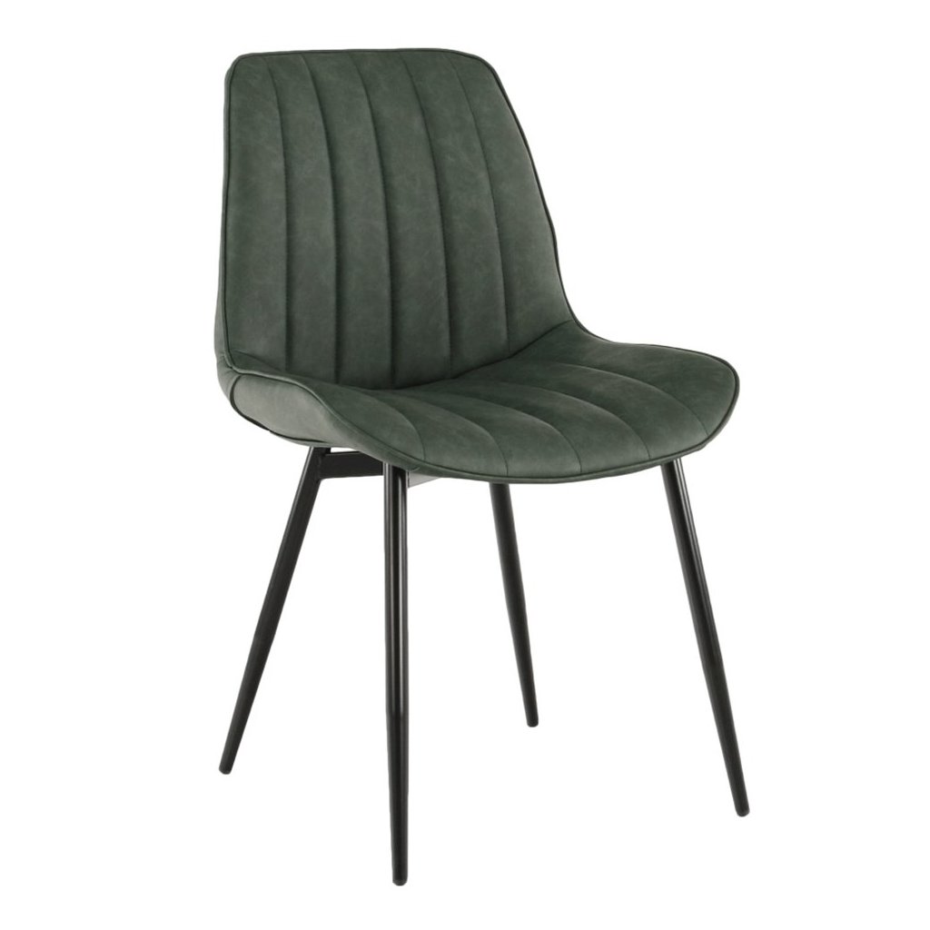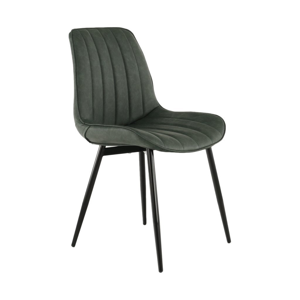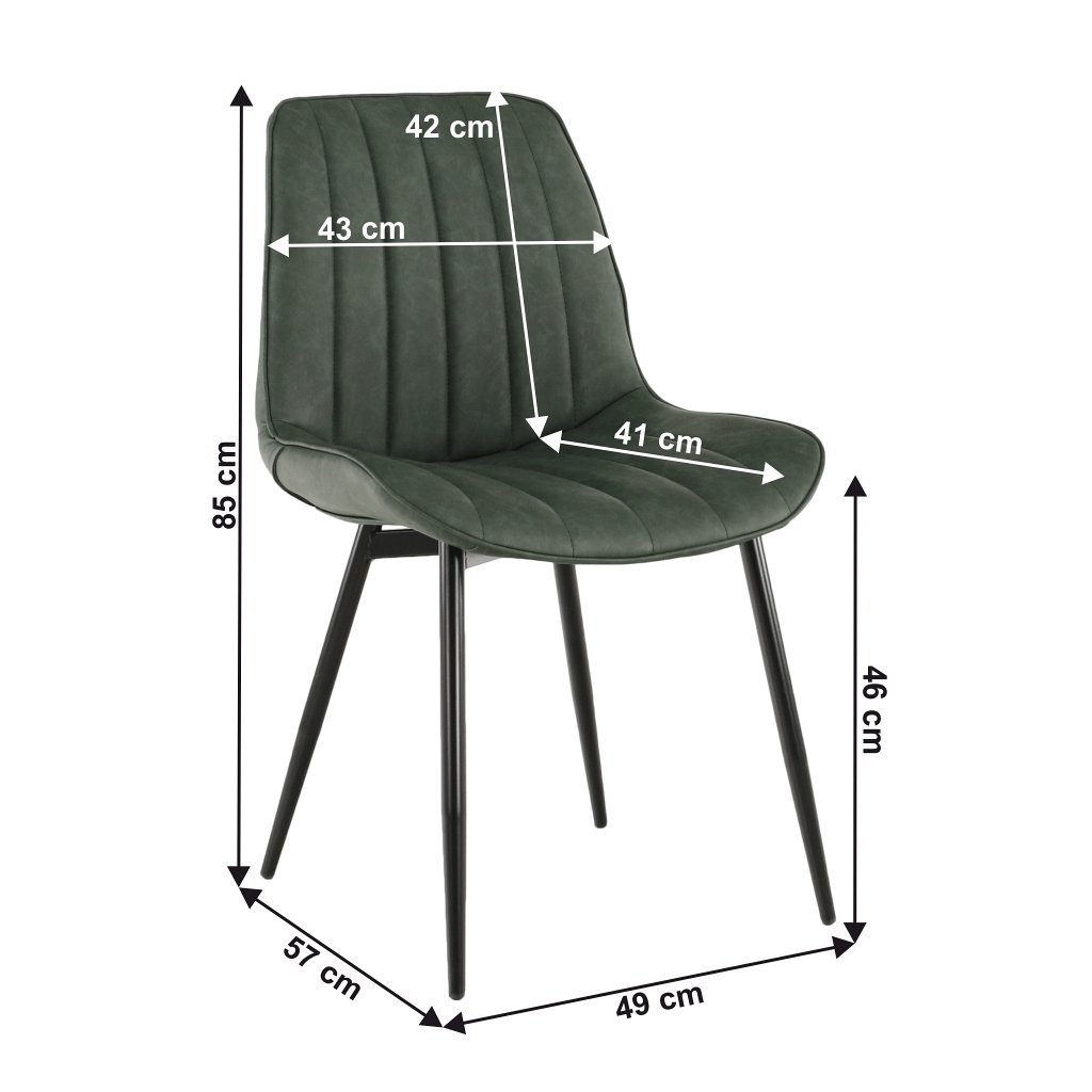 Jedálenská stolička HAZAL v zelenej ekokoži je moderný kúsok s dekoratívnym šitím. Kovové nohy v čiernej farbe zaručujú stabilitu a nosnosť až 110 kg. Rozmery: 49x57x85 cm.