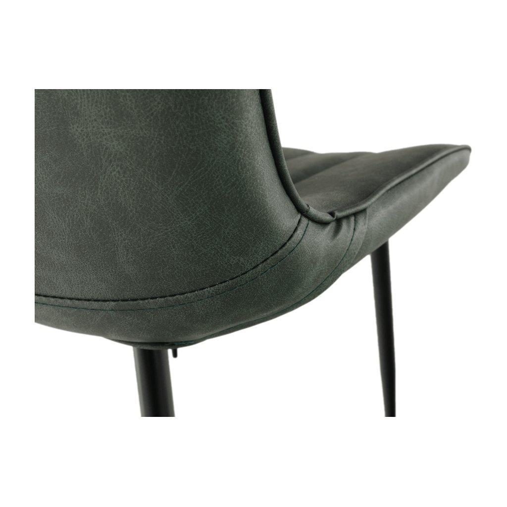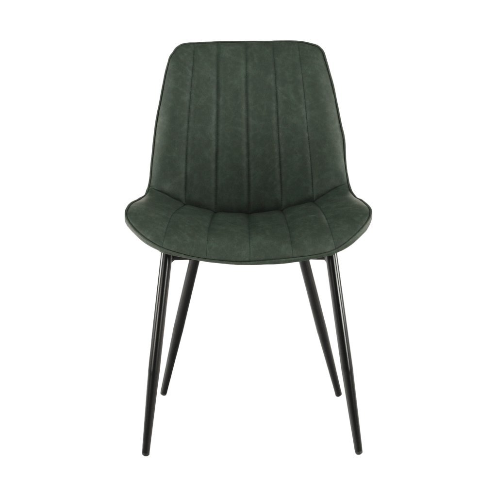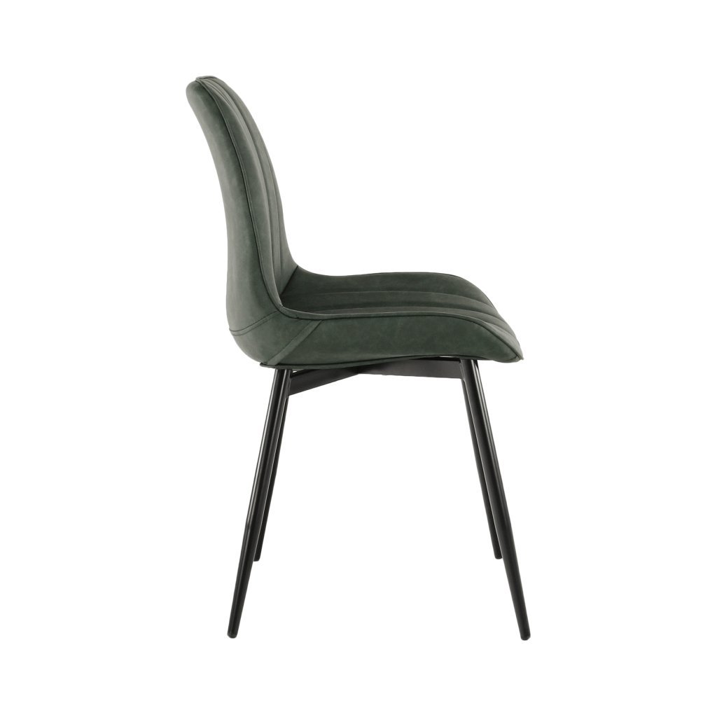 Jedálenská stolička HAZAL v zelenej ekokoži je moderný kúsok s dekoratívnym šitím. Kovové nohy v čiernej farbe zaručujú stabilitu a nosnosť až 110 kg. Rozmery: 49x57x85 cm.