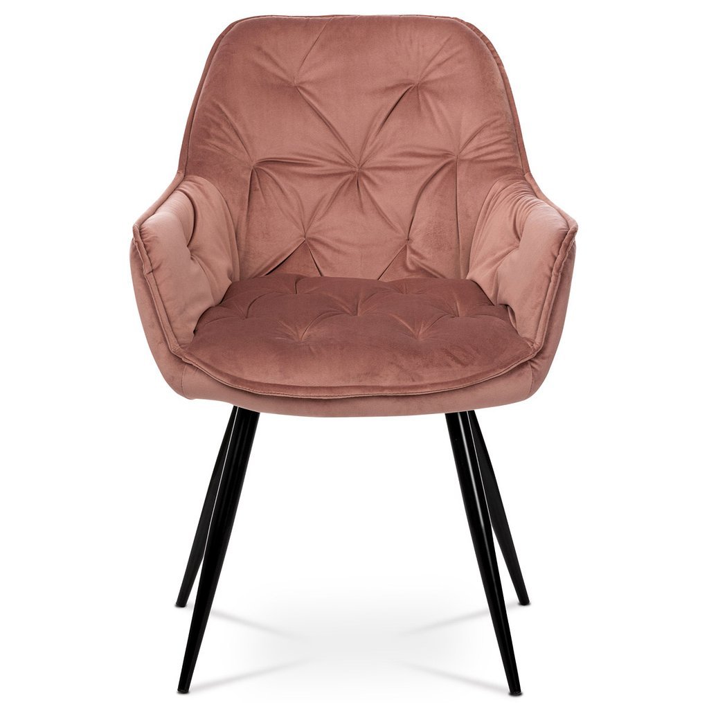 Jedálenská stolička IRIS je dokonalým spojením elegancie a komfortu. Jej poťah z ružovej zamatovej látky poskytuje príjemný pocit na sedenie, ktorý oceníte pri každom jedle. Moderný a trendy dizajn stoličky s dizajnovým prešívaním ju robí ideálnou voľbou pre vašich hostí aj každodenné stolovanie.