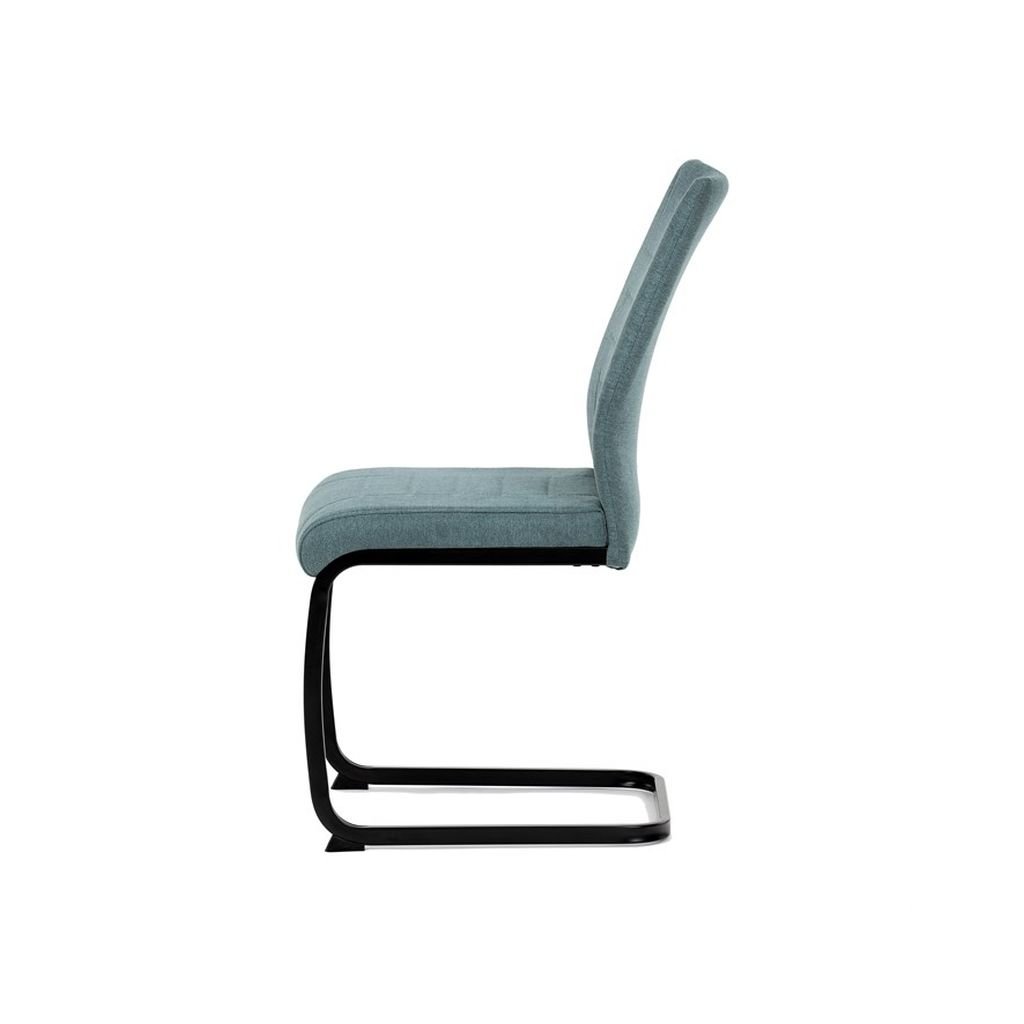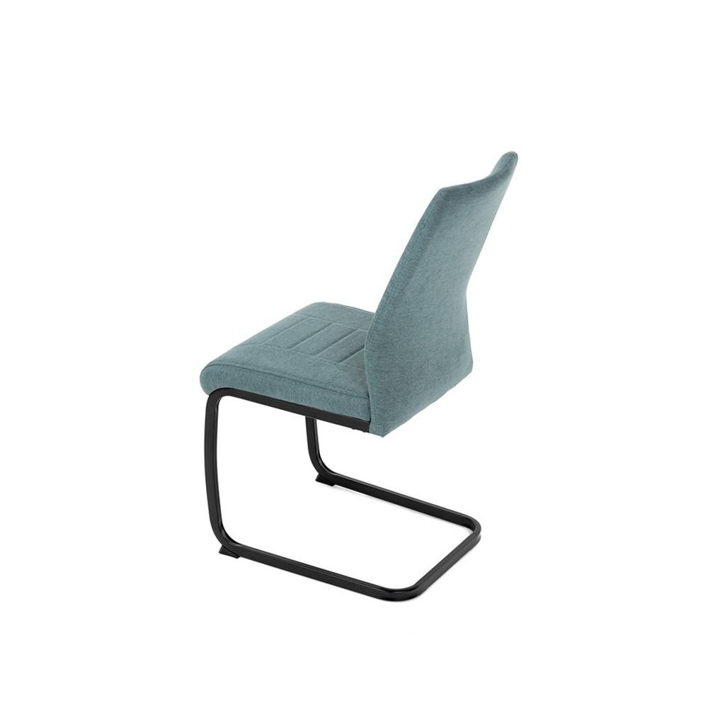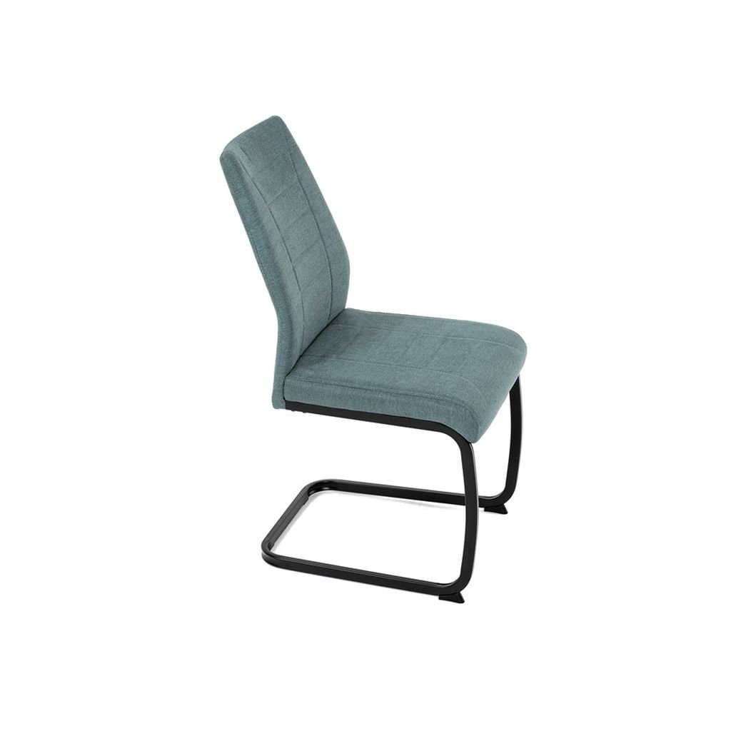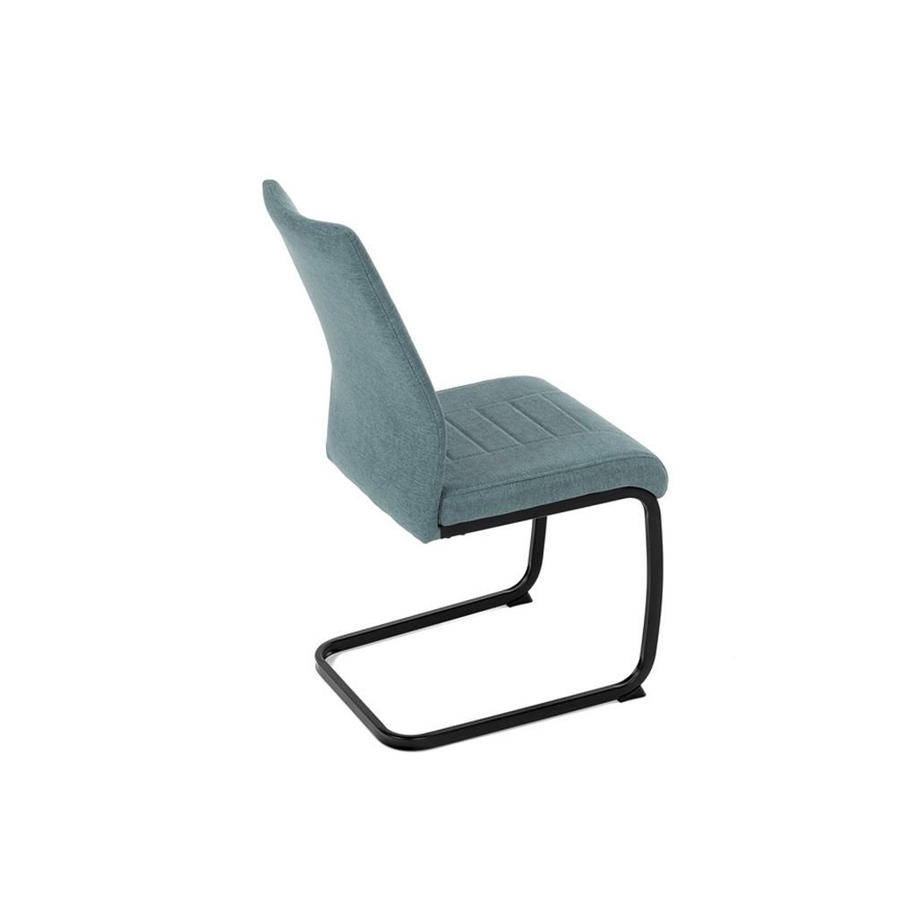 Jedálenská stolička LERIS v sviežej zelenej látke kombinuje pohodlie a štýlový dizajn. Pevné čierne kovové nohy zabezpečujú stabilitu, zatiaľ čo ozdobné prešívanie pridáva eleganciu. Ideálna pre každú