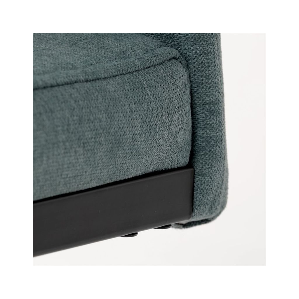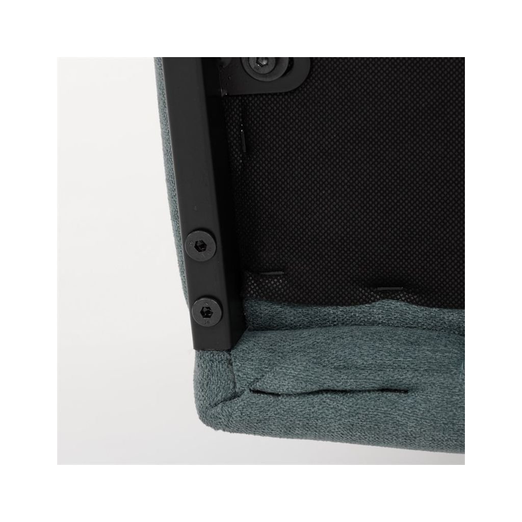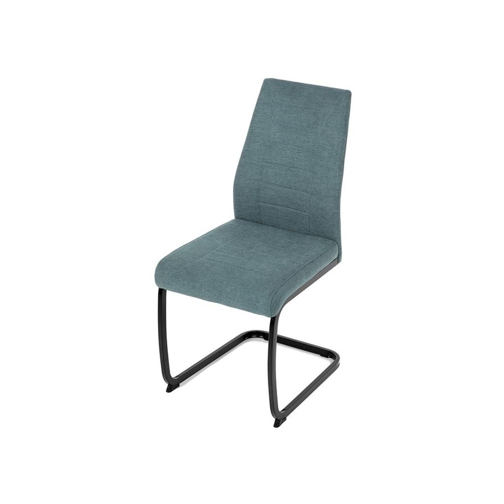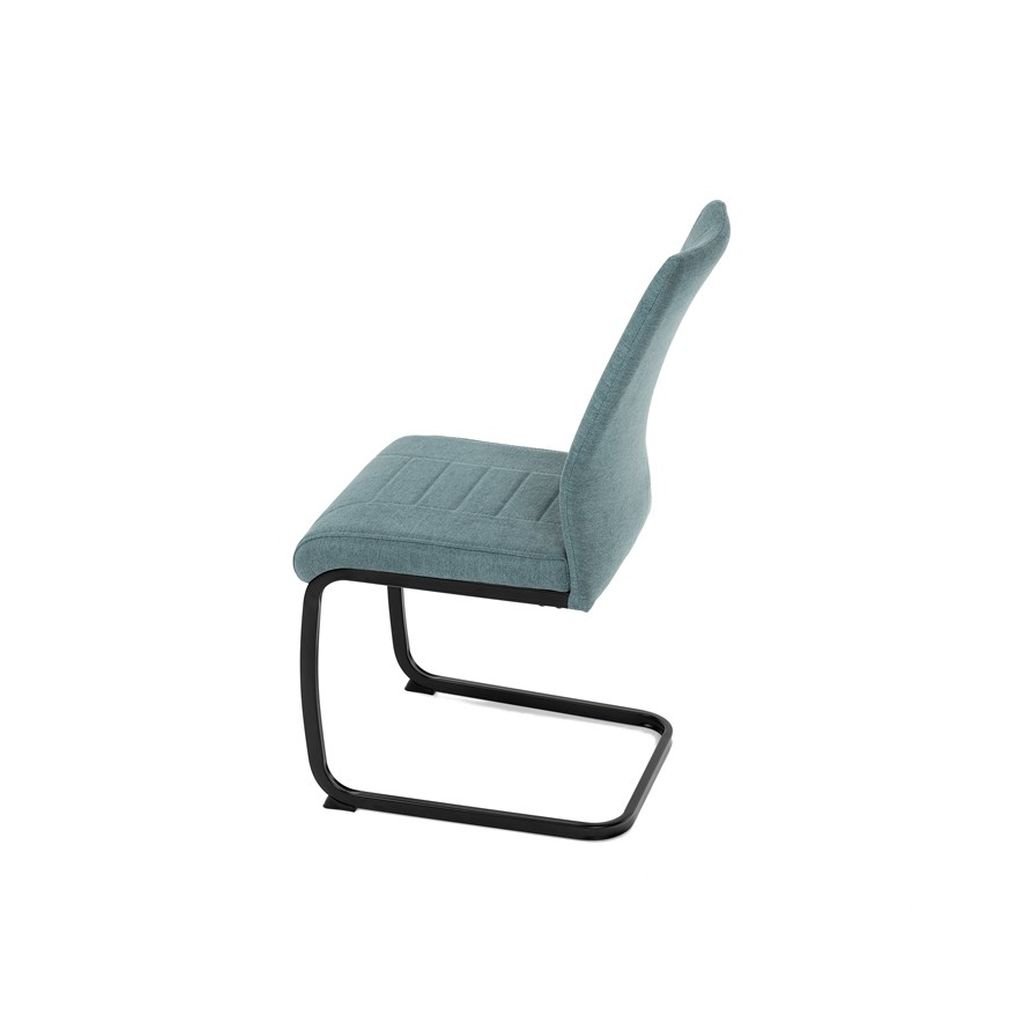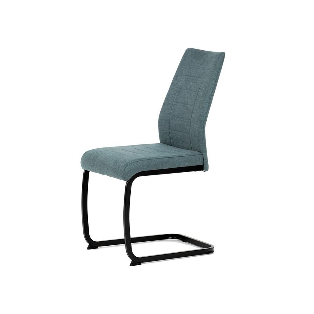 Jedálenská stolička LERIS v sviežej zelenej látke kombinuje pohodlie a štýlový dizajn. Pevné čierne kovové nohy zabezpečujú stabilitu, zatiaľ čo ozdobné prešívanie pridáva eleganciu. Ideálna pre každú