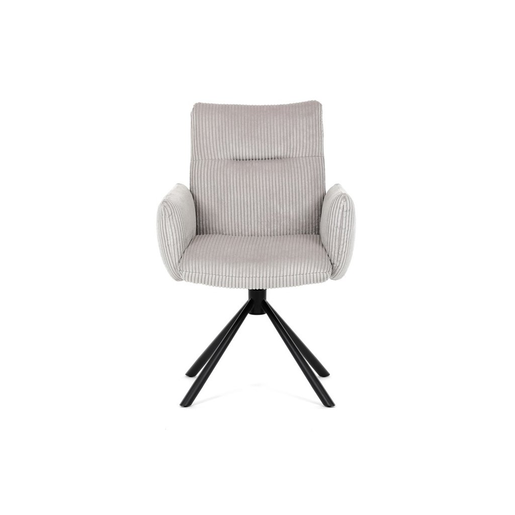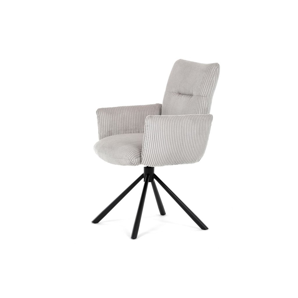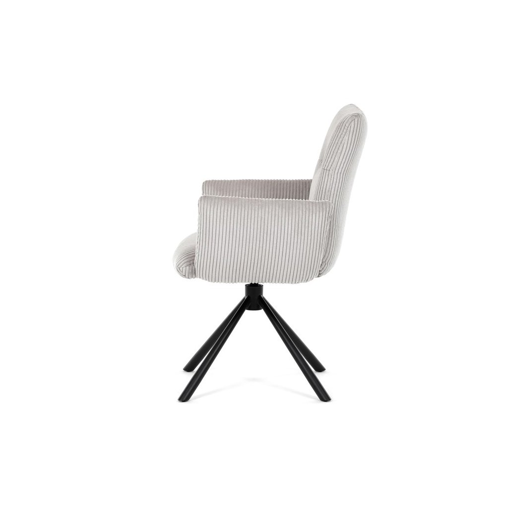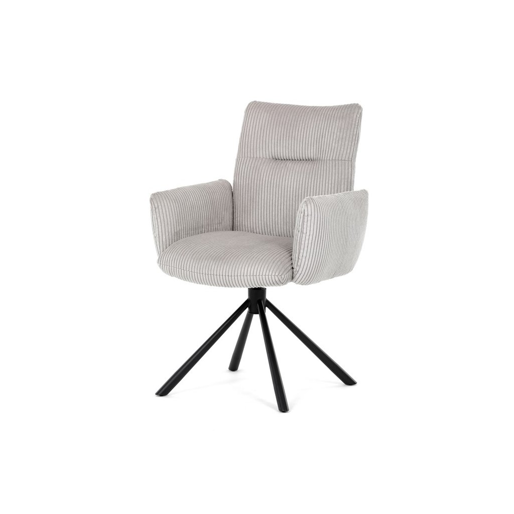 Jedálenská stolička LEXA v krémovej manšestrovej látke je ideálnym spojením elegancie a pohodlia. Jej výrazné polstrovanie sedadla a operadla poskytuje vysoký komfort sedenia, čo ju robí vhodnou aj pre dlhšie posedenia. Tento model v industriálnom štýle disponuje otočným 360° vratným mechanizmom, ktorý uľahčuje manipuláciu a zvyšuje ergonómiu v jedálenskom priestore.