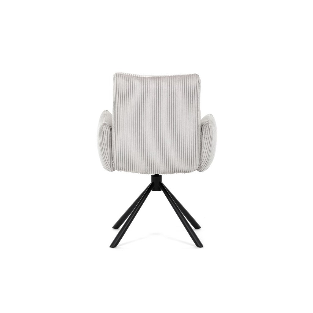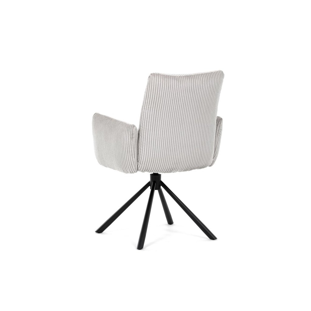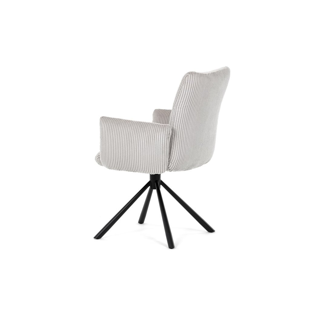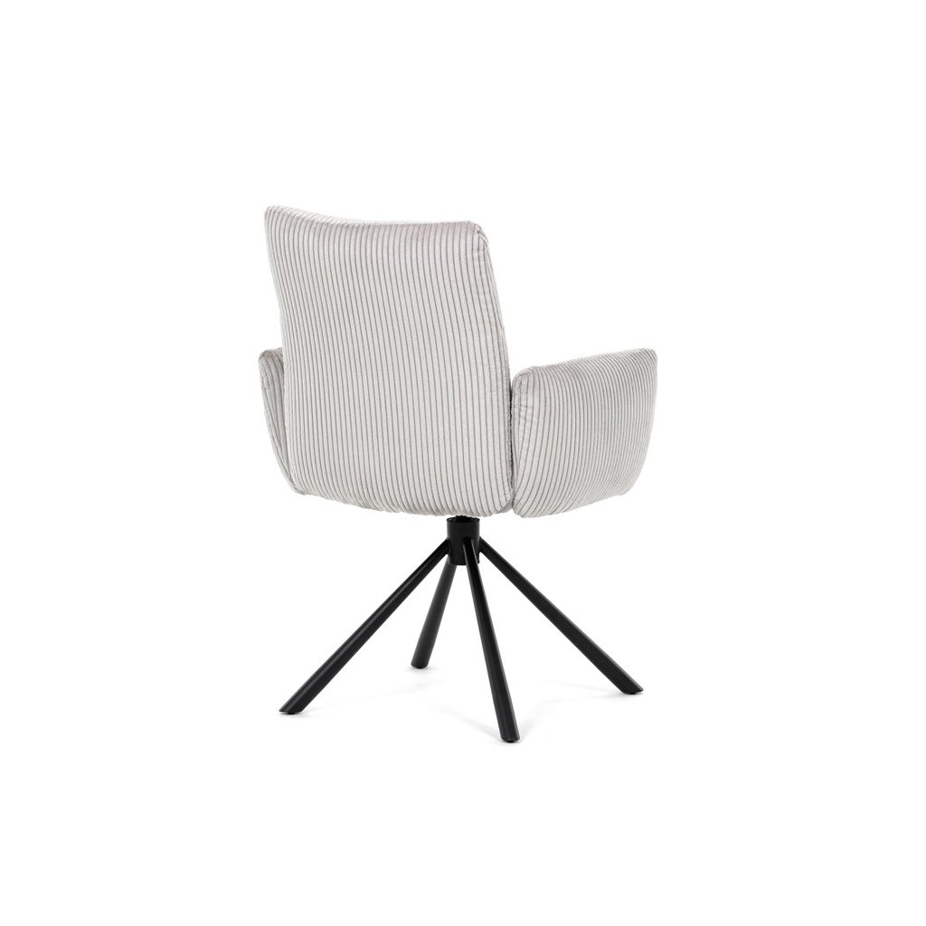 Jedálenská stolička LEXA v krémovej manšestrovej látke je ideálnym spojením elegancie a pohodlia. Jej výrazné polstrovanie sedadla a operadla poskytuje vysoký komfort sedenia, čo ju robí vhodnou aj pre dlhšie posedenia. Tento model v industriálnom štýle disponuje otočným 360° vratným mechanizmom, ktorý uľahčuje manipuláciu a zvyšuje ergonómiu v jedálenskom priestore.