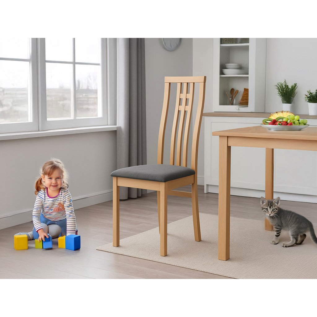 Jedálenská stolička MARIGOLD kombinuje klasický dizajn s vysokou funkčnosťou, čím predstavuje ideálny doplnok do vašich jedálenských priestorov. Vyrobená z masívneho bukového dreva, tento model ponúka stabilitu a dlhú životnosť, pričom béžová látka dodáva nábytkovému kusu príjemný a teplý vzhľad.