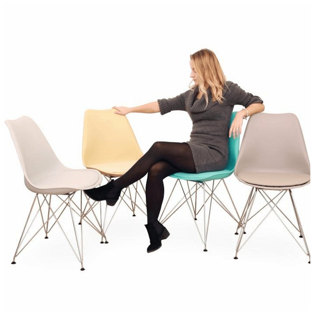Stolička je vyrobená z odolného plastu s chrómovanými nohami, ktoré zaručujú stabilitu a pevnosť. S mäkkou vložkou na sedenie sa stáva skvelou voľbou pre dlhé večere pri stole, kde si môžete vychutnávať jedlo v pohodlí.