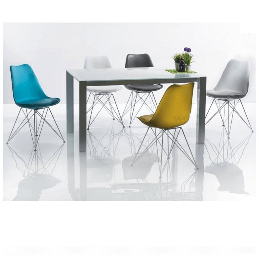 Moderná jedálenská stolička METAL v bielej farbe s mäkkou vložkou na sedenie. Kvalitný plast a chrómované nohy zaručujú stabilitu. Rozmery: 48x56x83 cm, nosnosť 110 kg. Dodávaná v demonte.