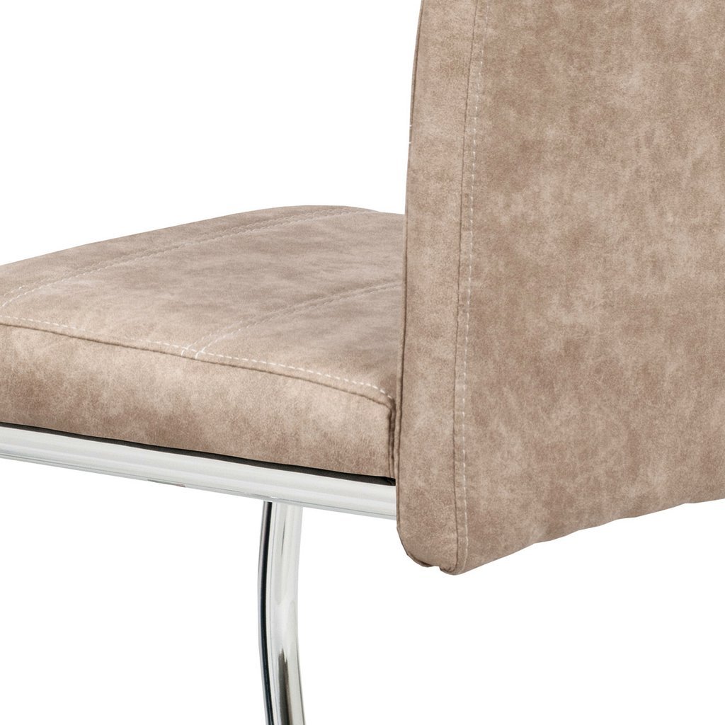 Jedálenská stolička NYLA v modernom béžovom odtieni je perfektným doplnkom do vašej jedálne. S poťahom z kvalitnej látky imitujúcej kožu ponúka kombináciu elegancie a praktických vlastností, čím sa stáva ideálnou voľbou pre každodenné sedenie. Pevná kovová konštrukcia s chrómovaným povrchom zaisťuje vysokú stabilitu a dlhú životnosť aj pri častom používaní.