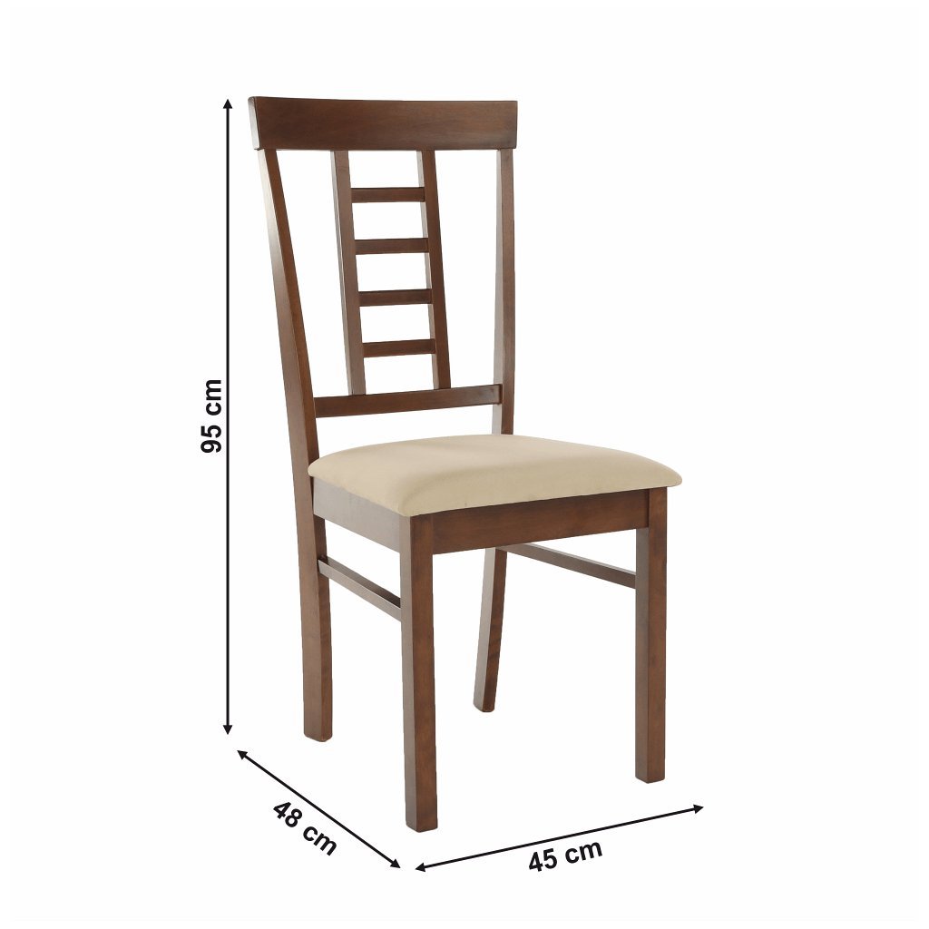 Jedálenská stolička OLEG v béžovej látke pridá eleganciu vašej jedálni. Kvalitné drevo v spojení s béžovým čalúnením. Rozmery: 45x48x95 cm, nosnosť 110 kg. Dodávané v demonte.