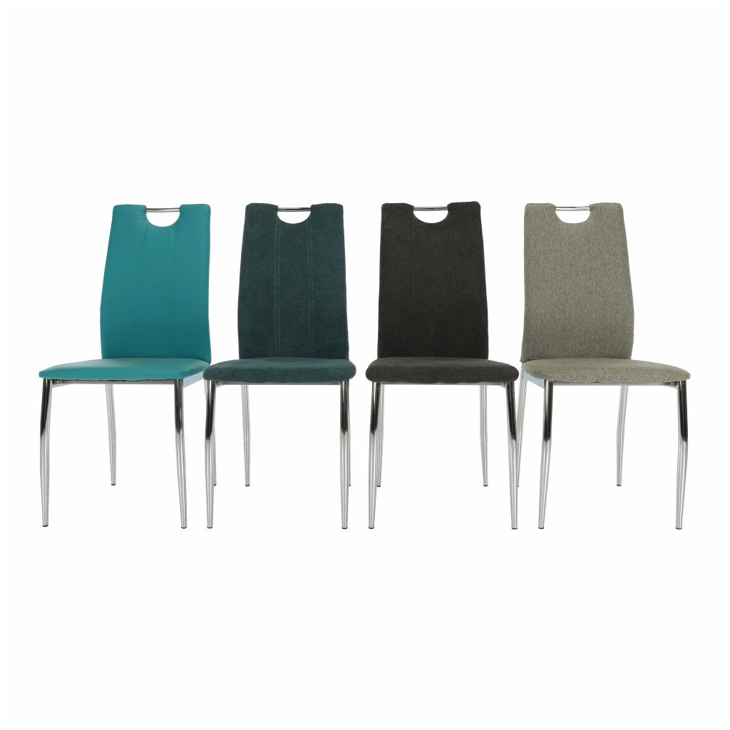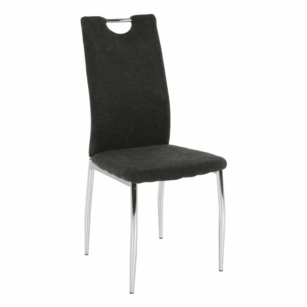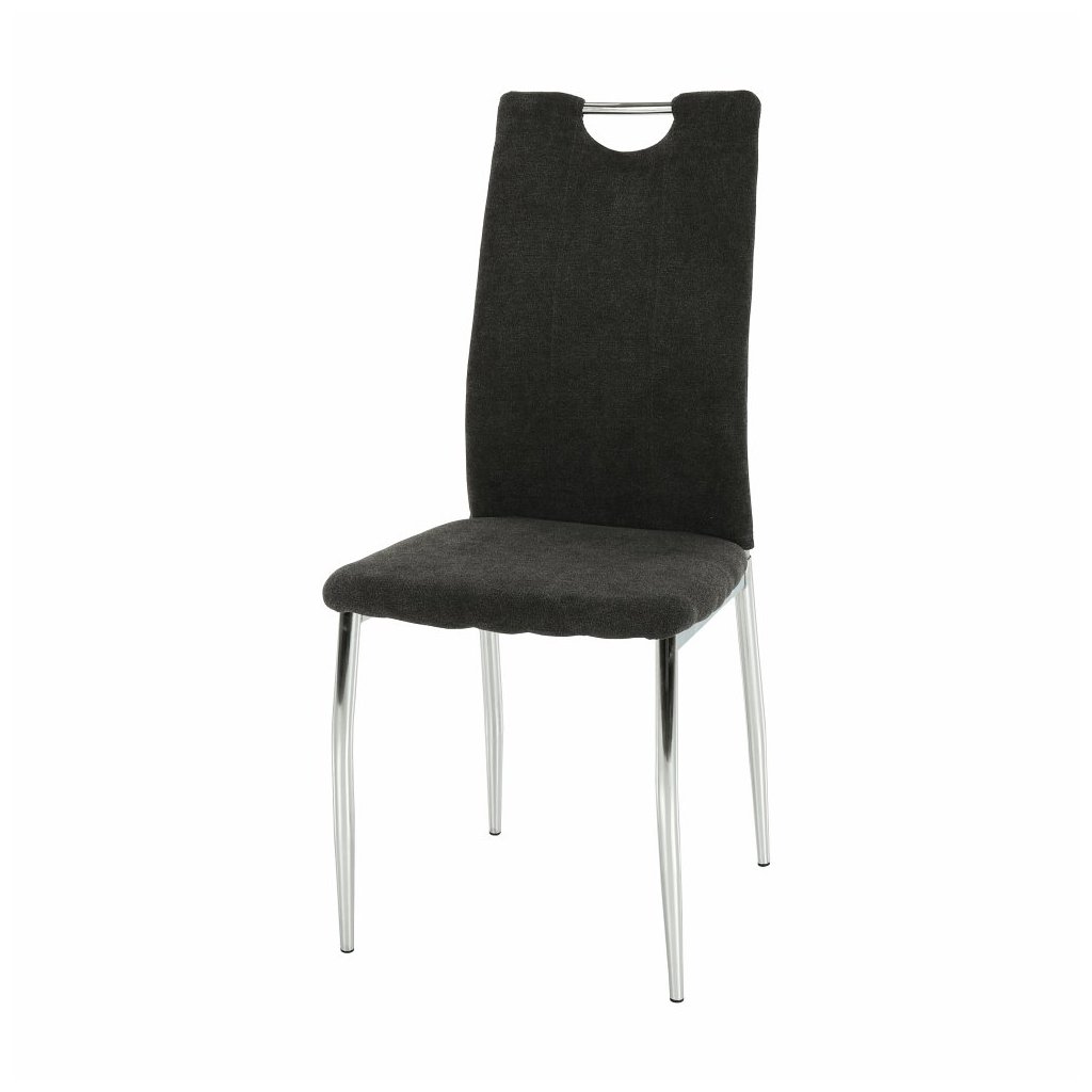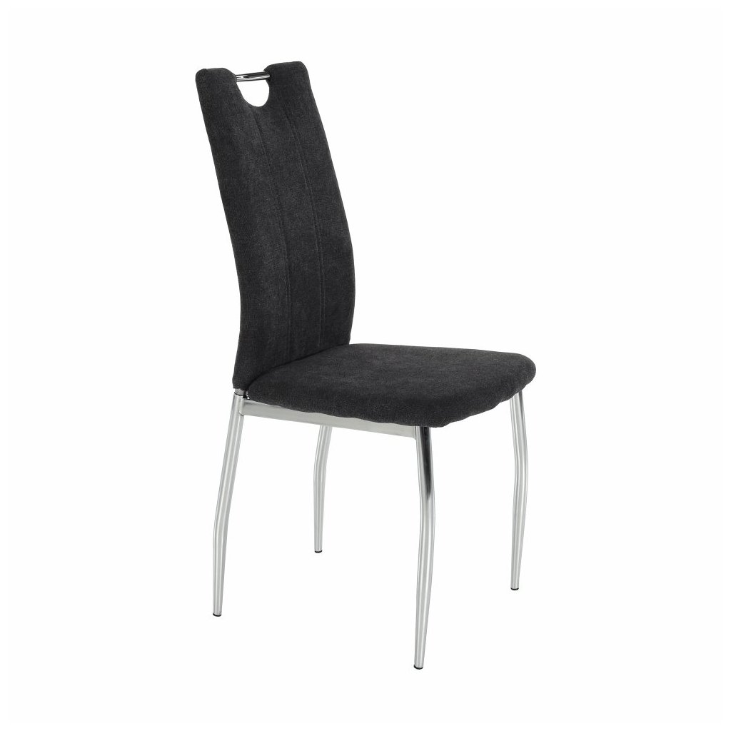 Jedálenská stolička OLIVA v hnedosivej látke je elegantným doplnkom do každej jedálne. Stabilné chrómové nohy a pohodlné sedenie zaručujú komfort a nosnosť do 110 kg. Rozmery: 42x52x97 cm.