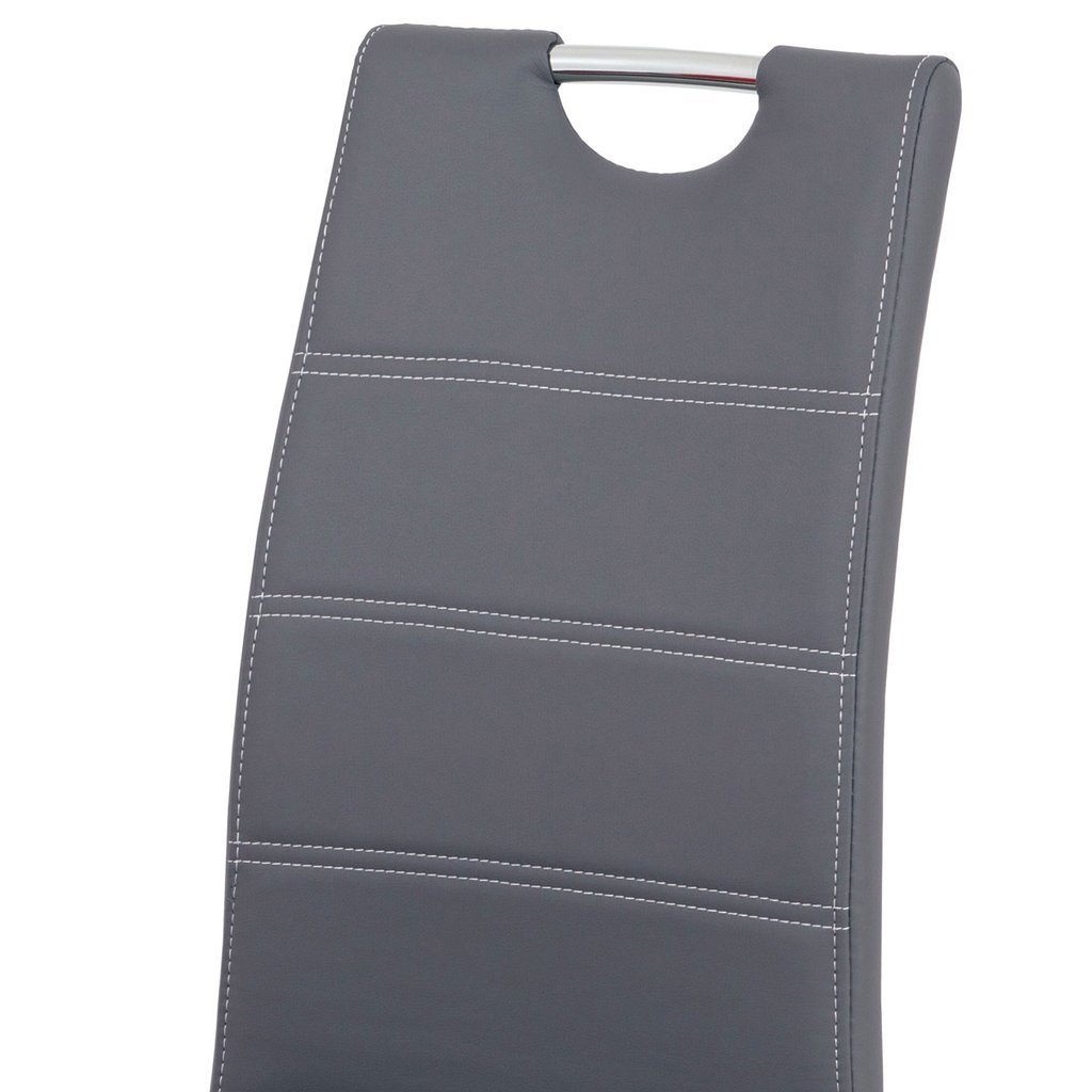 Objavte eleganciu s jedálenskou stoličkou OPHELIA! Šedá ekokoža s dizajnovým prešitím dodá vášmu jedálenskému priestoru štýlový nádych. Komfort a šarm v jednom!