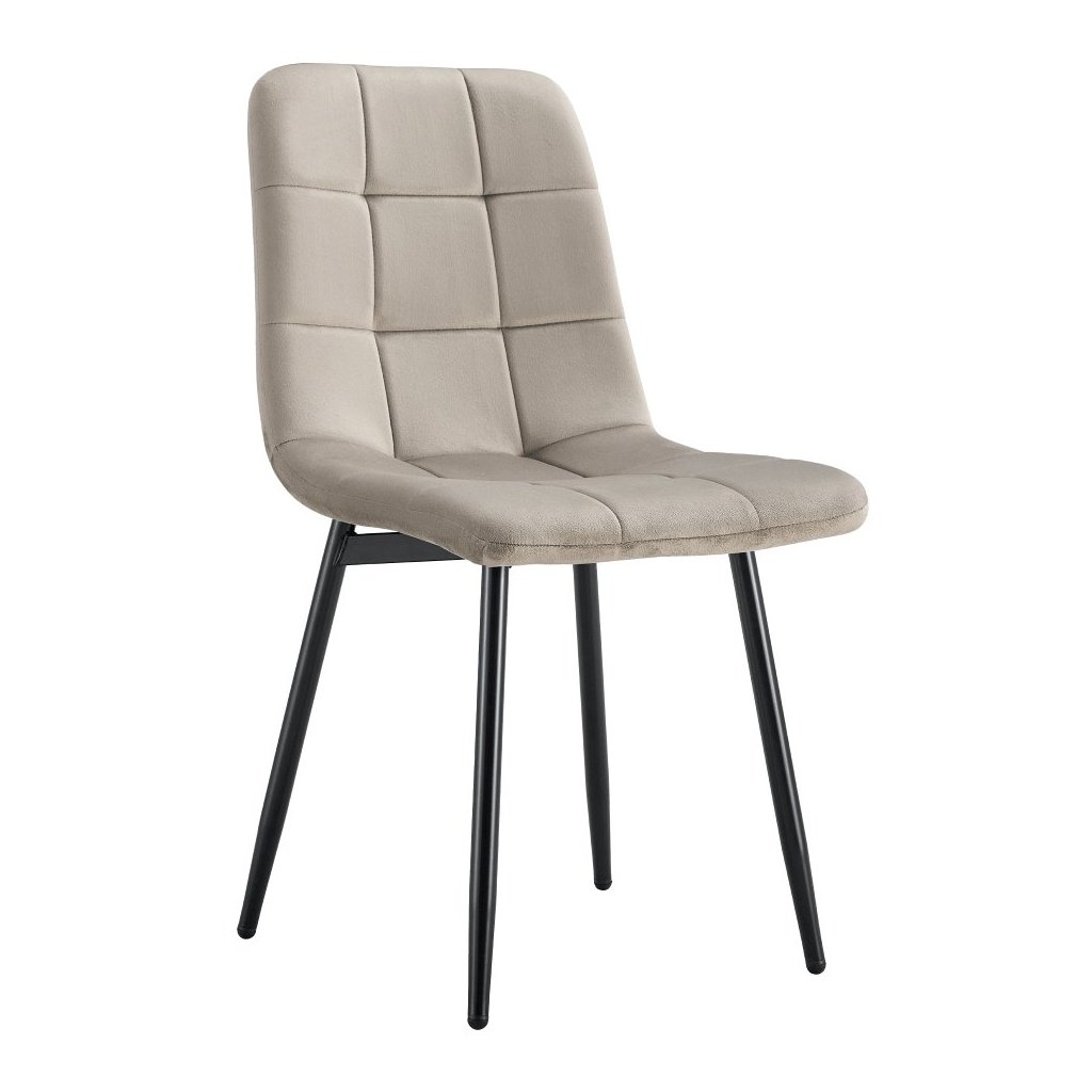 Jedálenská stolička RAMITA v sivohnedej Velvet látke ponúka komfortné sedenie a moderný dizajn. Stabilné čierne kovové nožičky a dekoratívne prešívanie dodajú vášmu interiéru eleganciu.