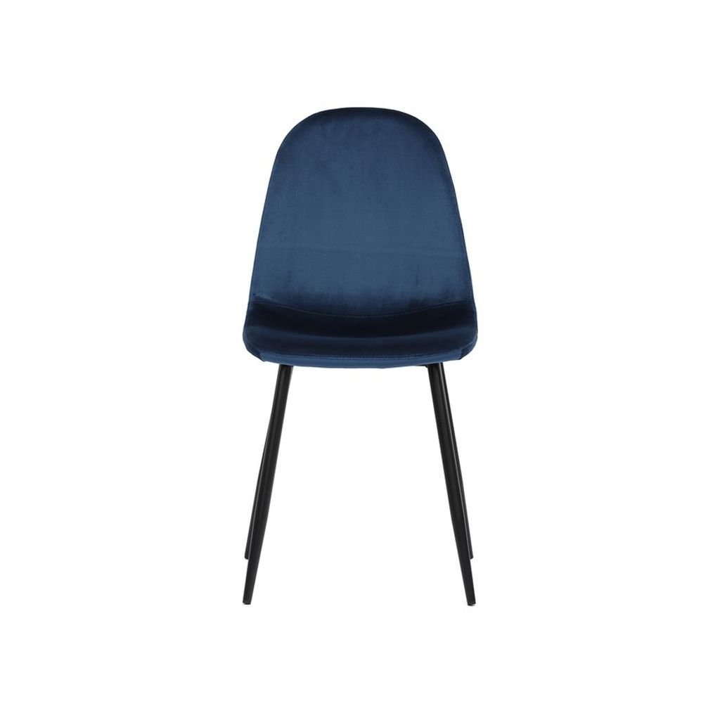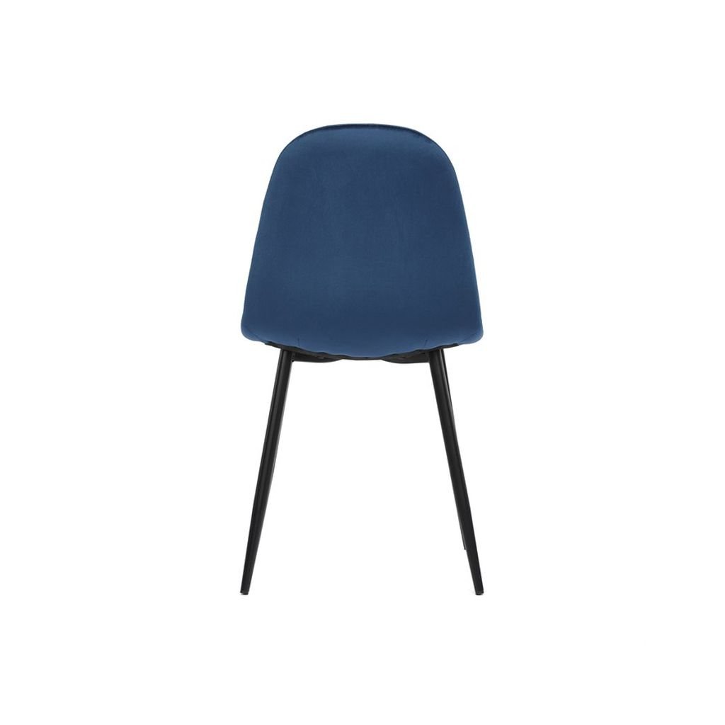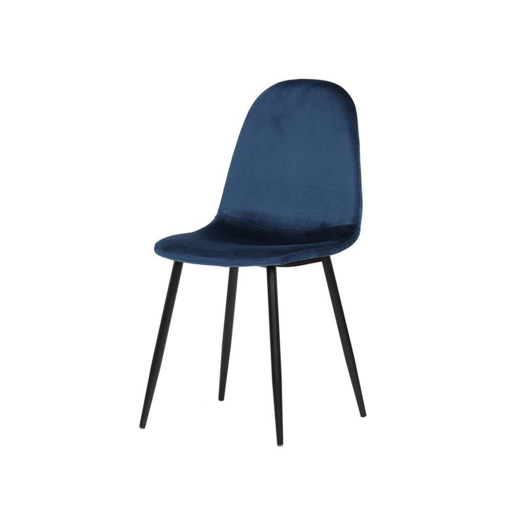 Jedálenská stolička RIMIA v modrom zamatovom prevedení ponúka pohodlné sedenie s ergonomicky tvarovaným sedákom a operadlom. Stabilné čierne kovové nohy zabezpečujú dlhú životnosť a moderný dizajn.