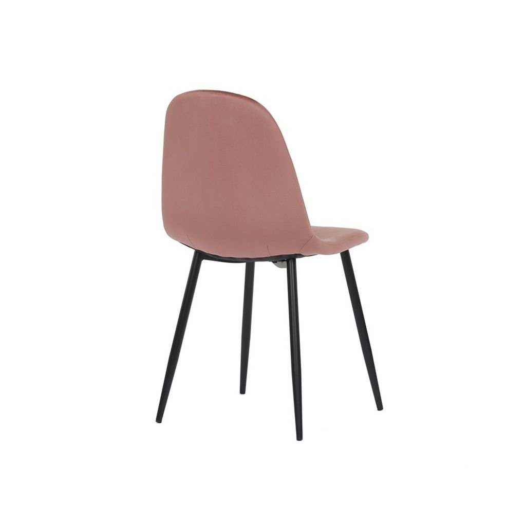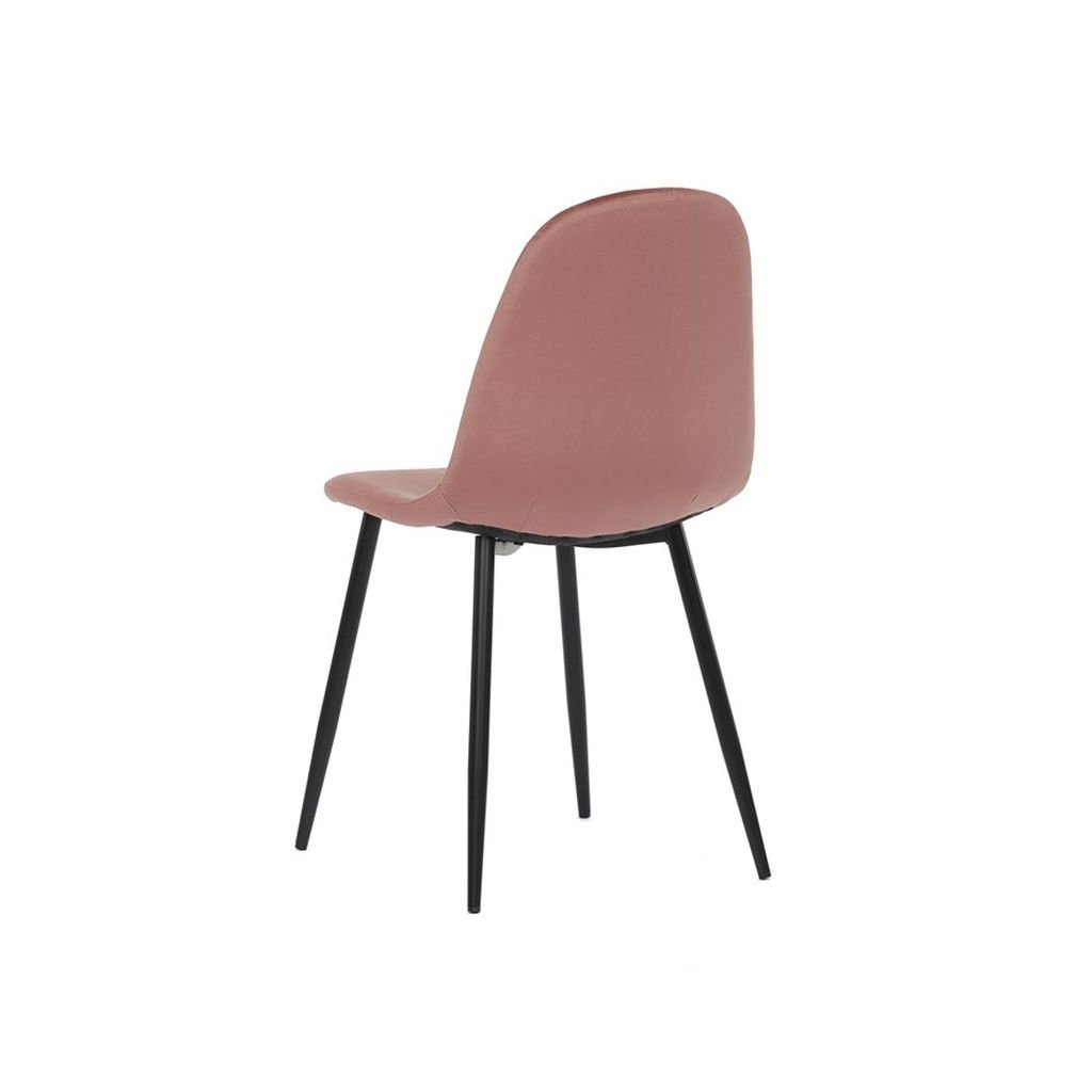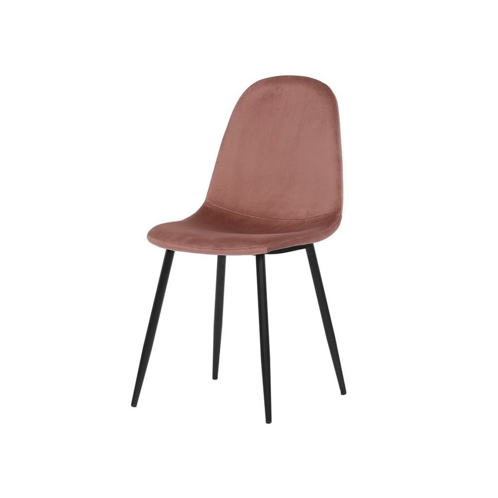 Jedálenská stolička RIMIA v ružovej zamatovej látke ponúka pohodlné sedenie a elegantný dizajn. Pevné čierne kovové nohy zabezpečujú stabilitu a moderný vzhľad. Ideálna do každého interiéru.