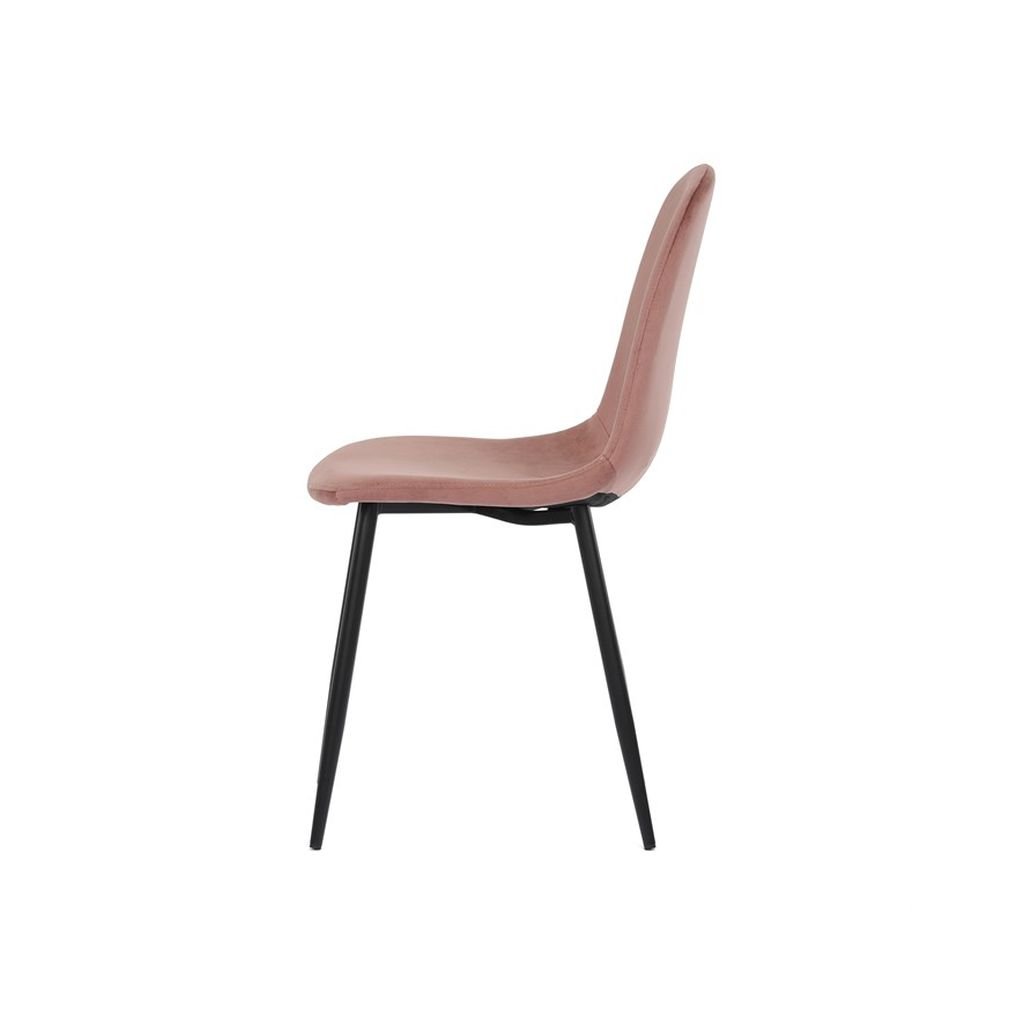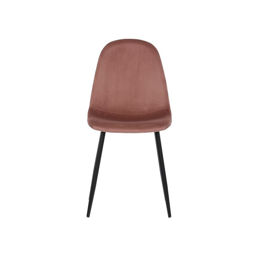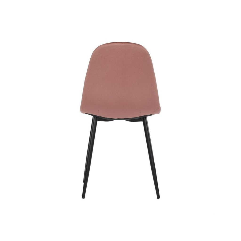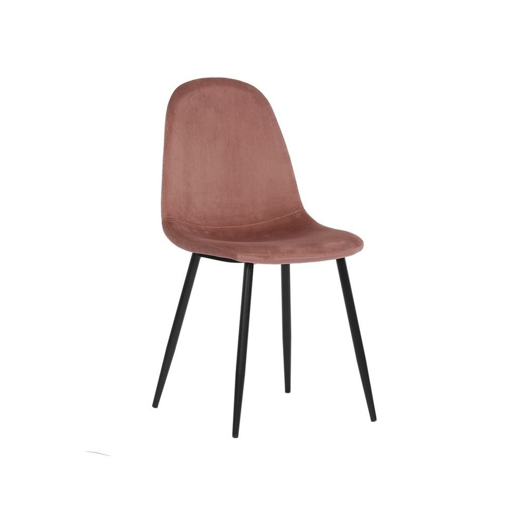 Jedálenská stolička RIMIA v ružovej zamatovej látke ponúka pohodlné sedenie a elegantný dizajn. Pevné čierne kovové nohy zabezpečujú stabilitu a moderný vzhľad. Ideálna do každého interiéru.