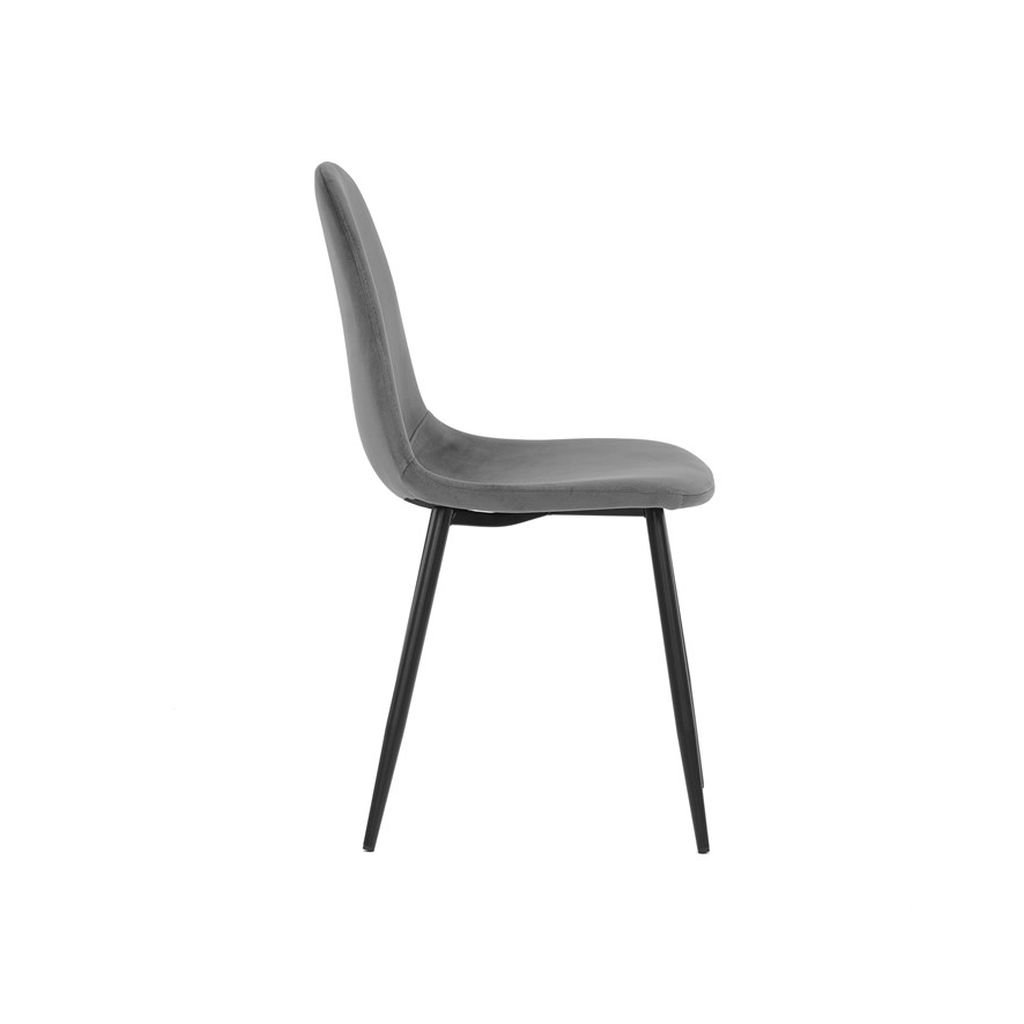 Jedálenská stolička RIMIA v elegantnej sivé zamatovej látke je ideálnym doplnkom pre každú jedáleň. Jej moderný a minimalistický dizajn sa skvele hodí do rôznych interiérových štýlov, čím dodáva priestoru sofistikovaný nádych. Čalúnený sedák a operadlo sú navrhnuté s ohľadom na pohodlie a ergonomické sedenie, čo zaručuje príjemné stolovanie pre všetkých členov domácnosti.