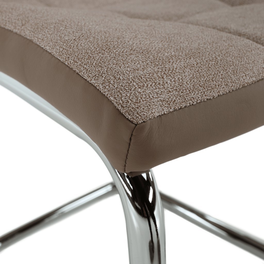 Jedálenská stolička SALOMA v béžovej látke a ekokoži kombinuje moderný dizajn s pohodlným sedením. Elegantné nohy z kovu dodávajú stoličke štýlový vzhľad, ideálna pre každú jedáleň.