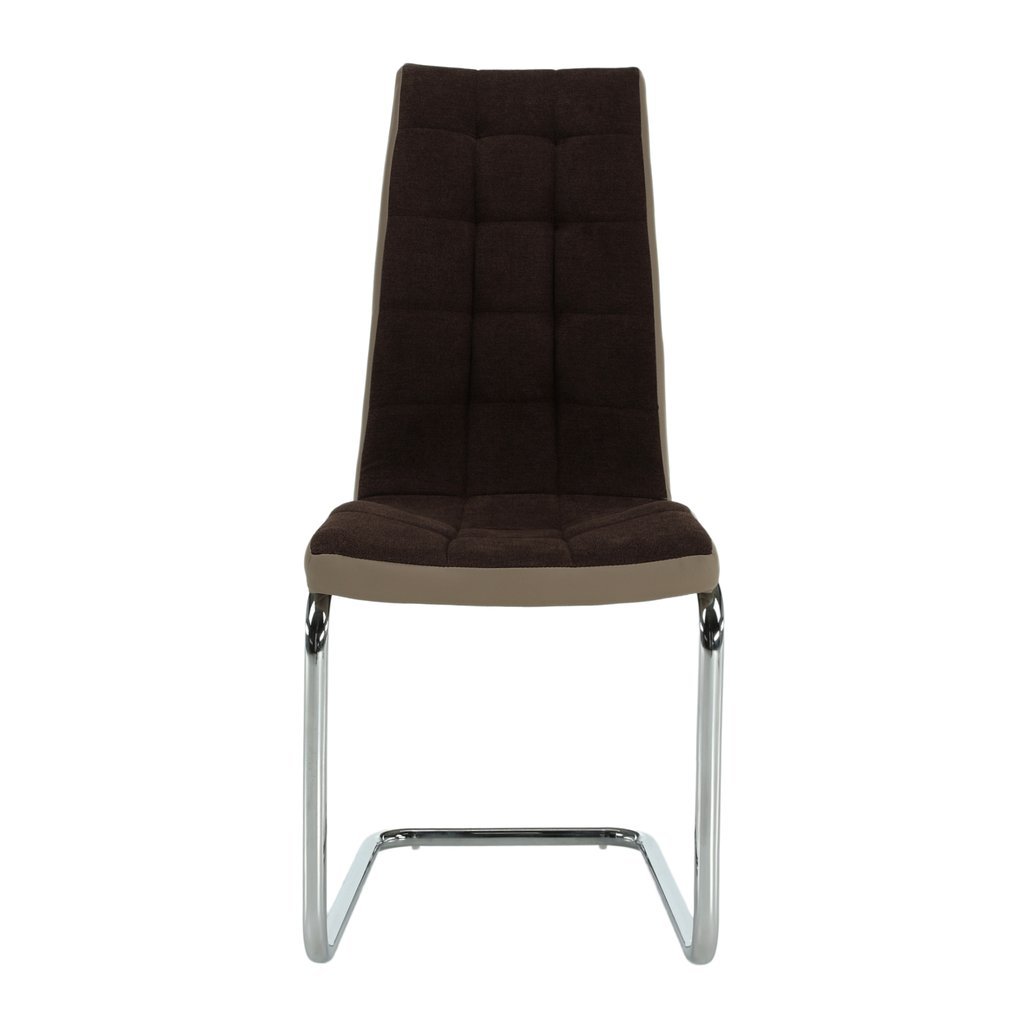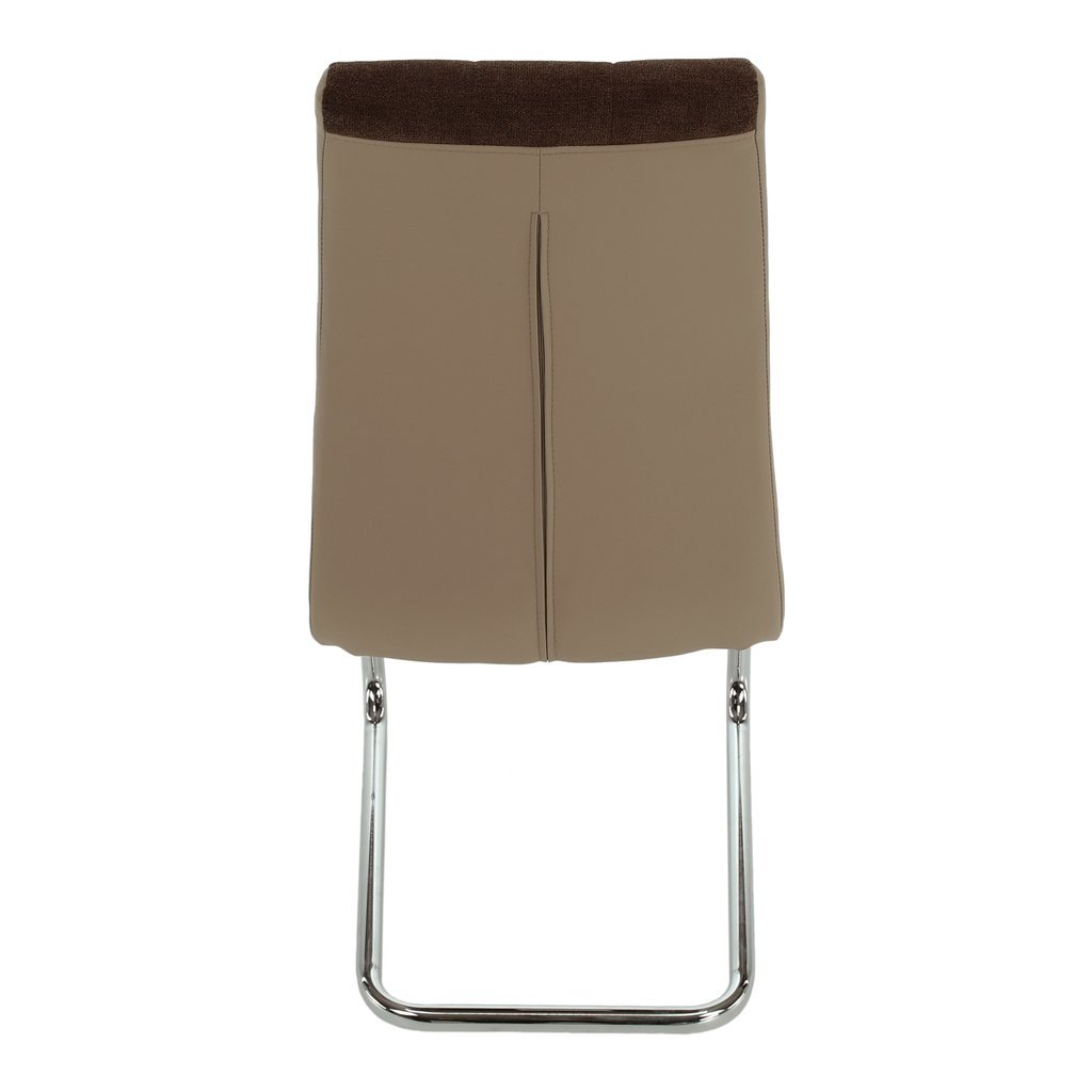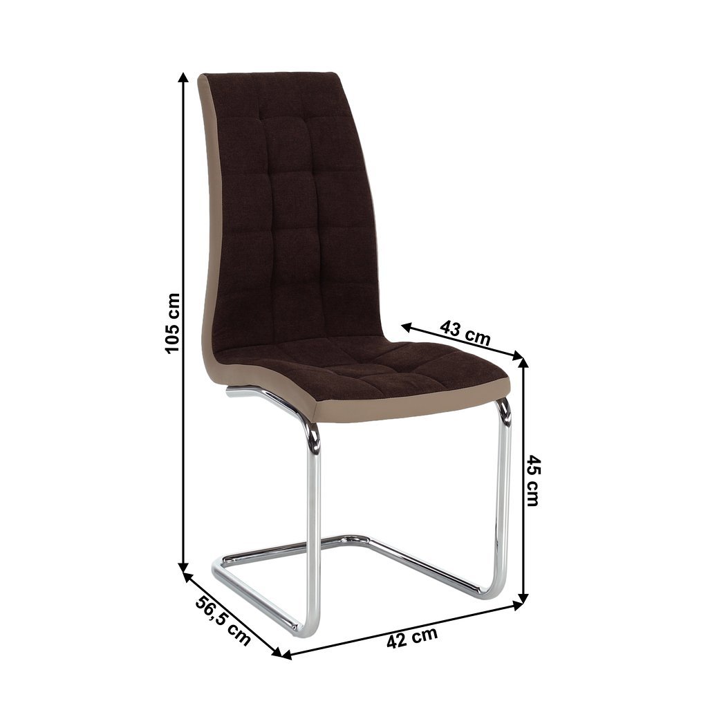 Jedálenská stolička SALOMA v hnedej látke a ekokoži kombinuje nadčasový dizajn s komfortom. Chrómované nohy jej dodávajú luxusný vzhľad. Ideálna pre moderné jedálne. Rozmery: 42x56,5x105 cm.