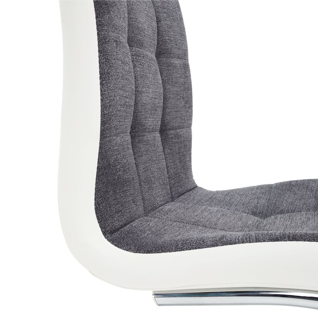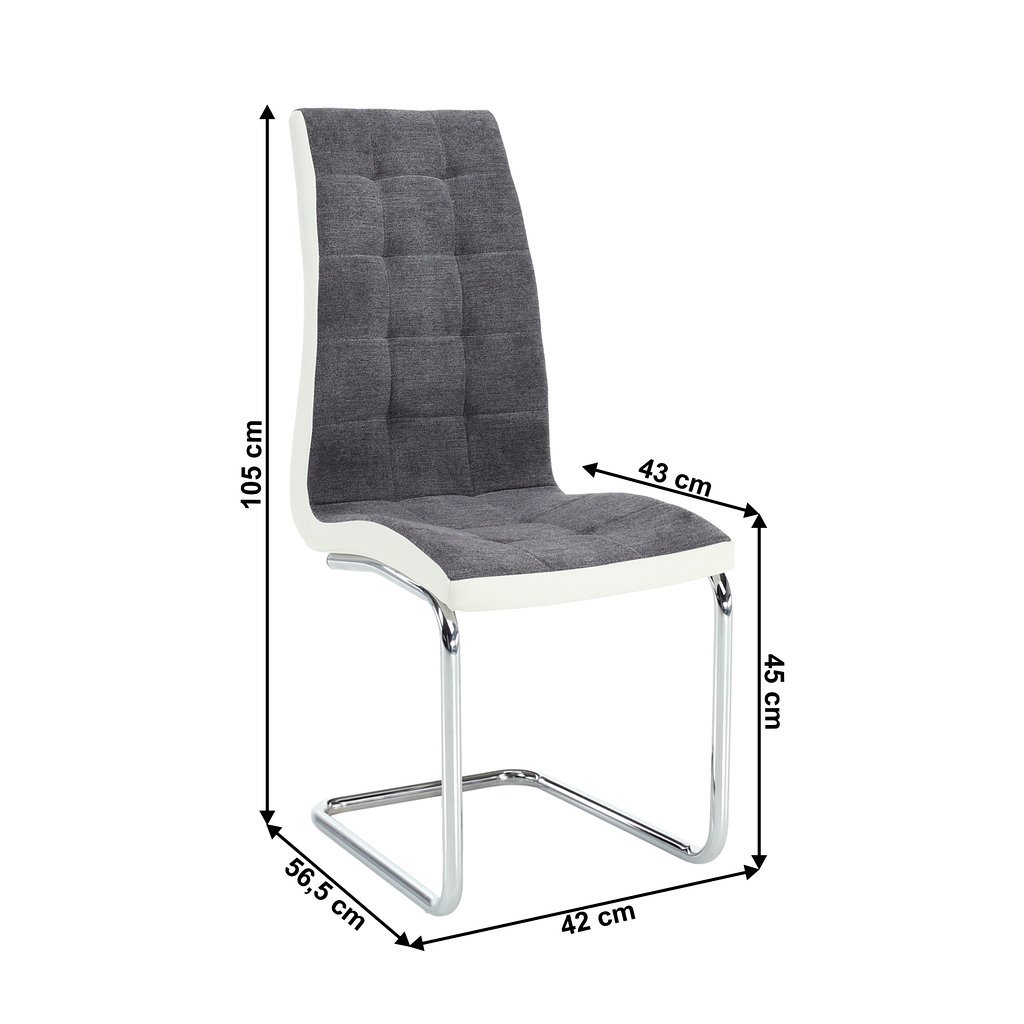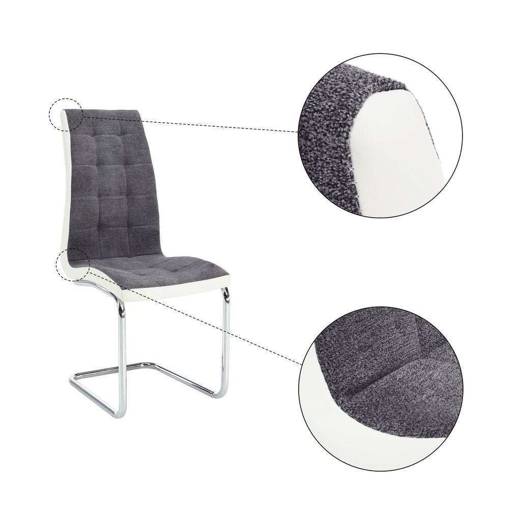Jedálenská stolička SALOMA kombinuje moderný dizajn s praktickými vlastnosťami, ktoré oceníte pri každom jedle. Jej elegantná sivá látka a ekokoža v bielej farbe dodajú vašej jedálni štýlový vzhľad, zatiaľ čo chrómované nohy stoličky pridávajú na luxusnom dojme.