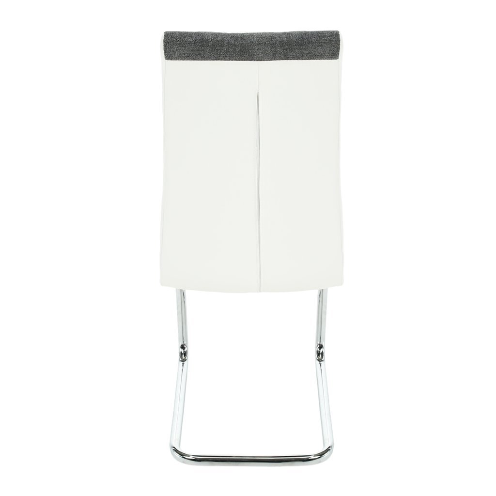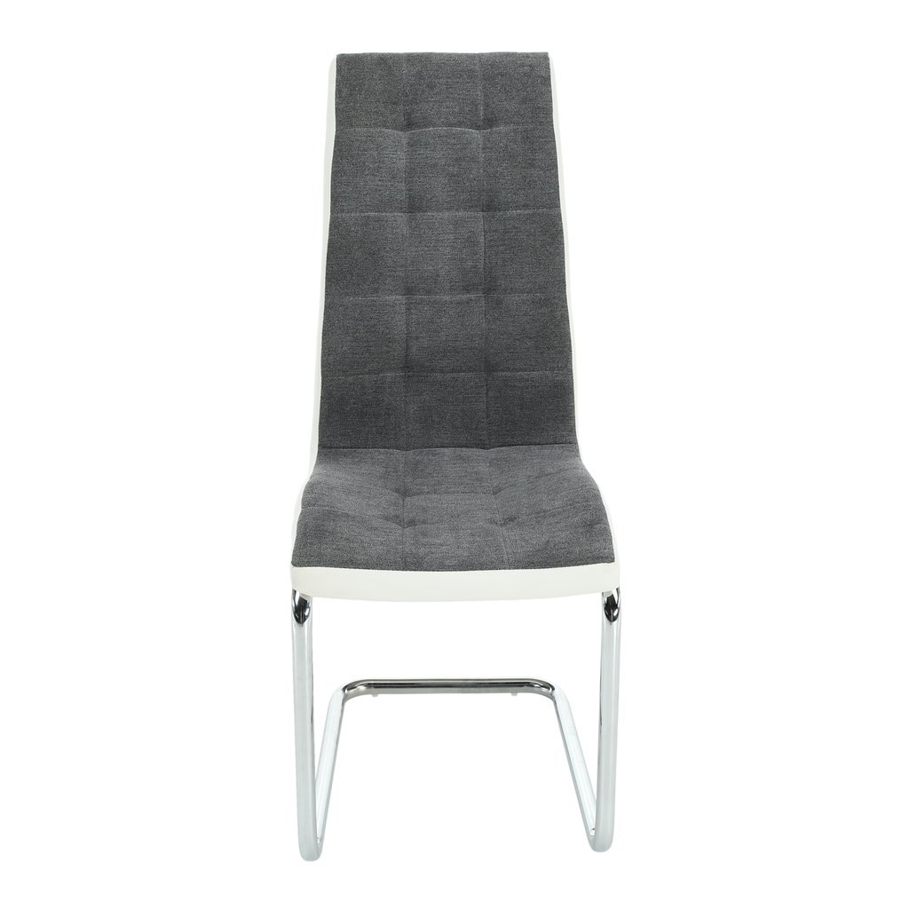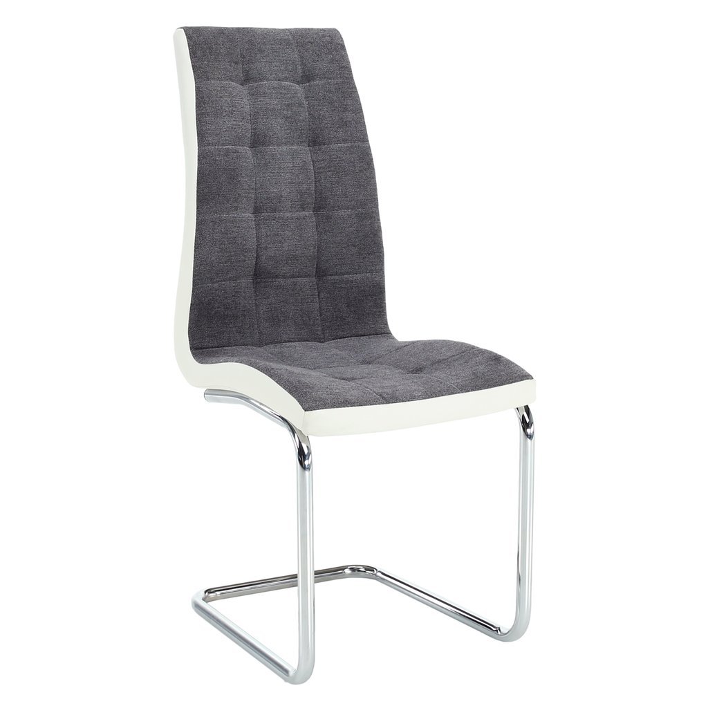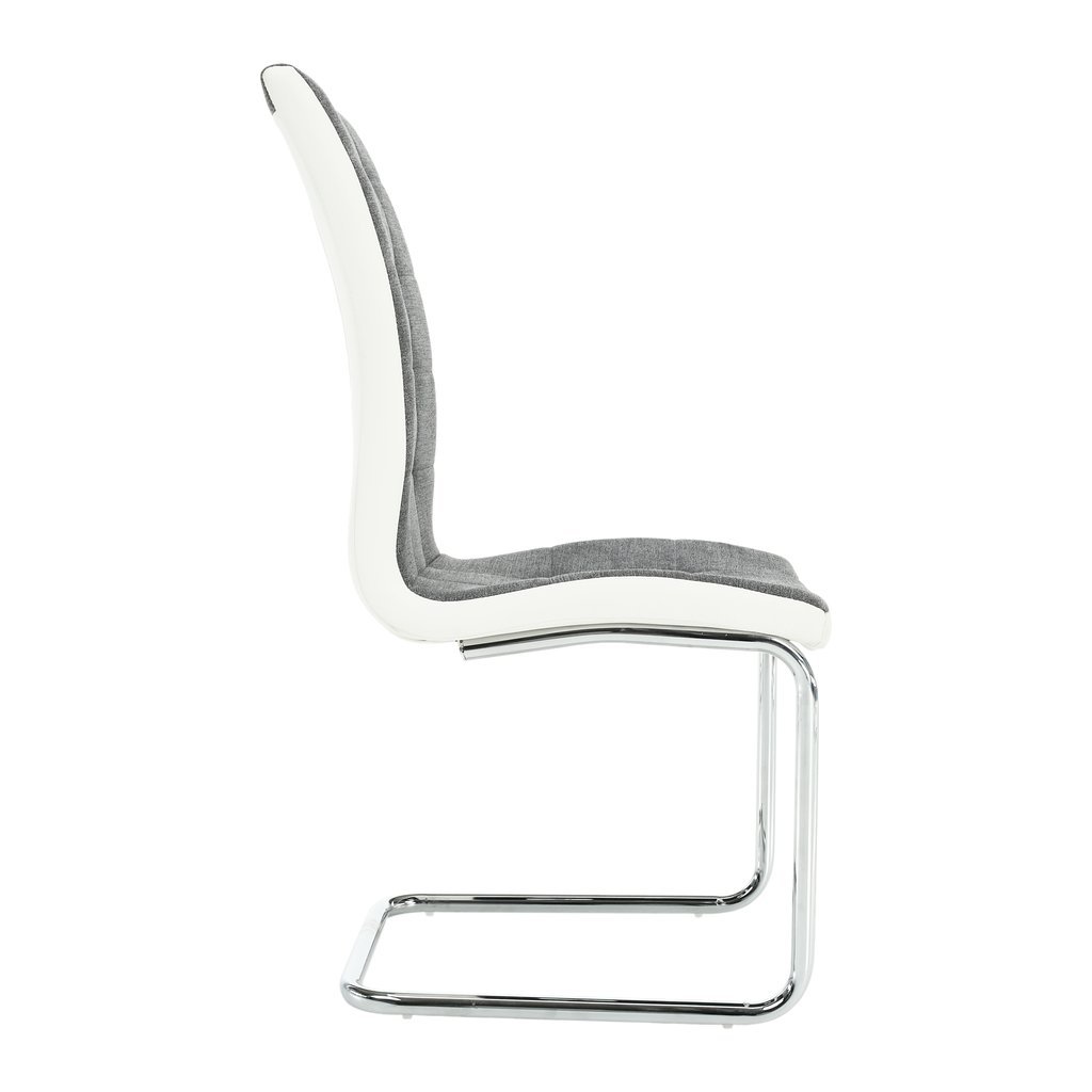 Jedálenská stolička SALOMA kombinuje moderný dizajn s praktickými vlastnosťami, ktoré oceníte pri každom jedle. Jej elegantná sivá látka a ekokoža v bielej farbe dodajú vašej jedálni štýlový vzhľad, zatiaľ čo chrómované nohy stoličky pridávajú na luxusnom dojme.
