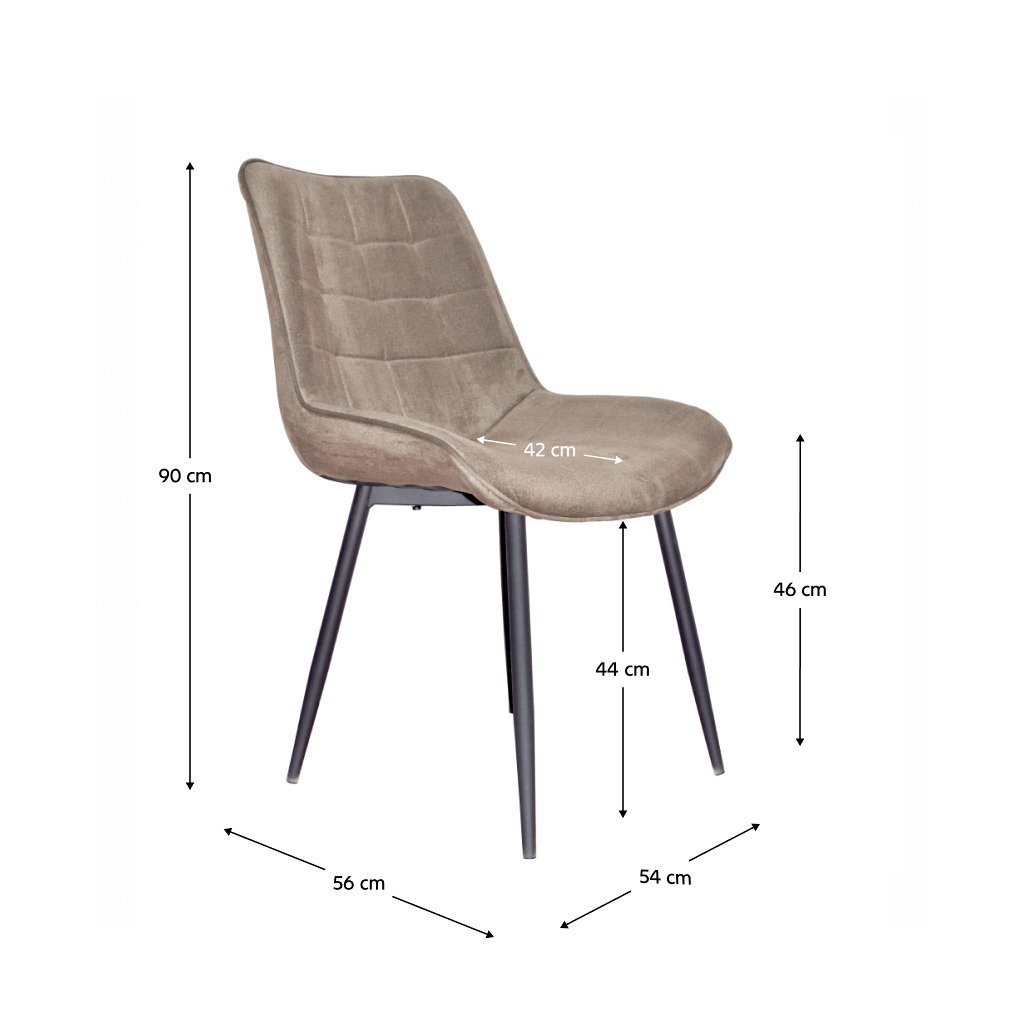 Jedálenská stolička SARIN zaujme sivohnedou zamatovou látkou a čiernymi kovovými nohami. Moderný dizajn s dekoratívnym šitím, nosnosť 120 kg. Rozmery: 54x56x90 cm. Dodávaná v demonte.