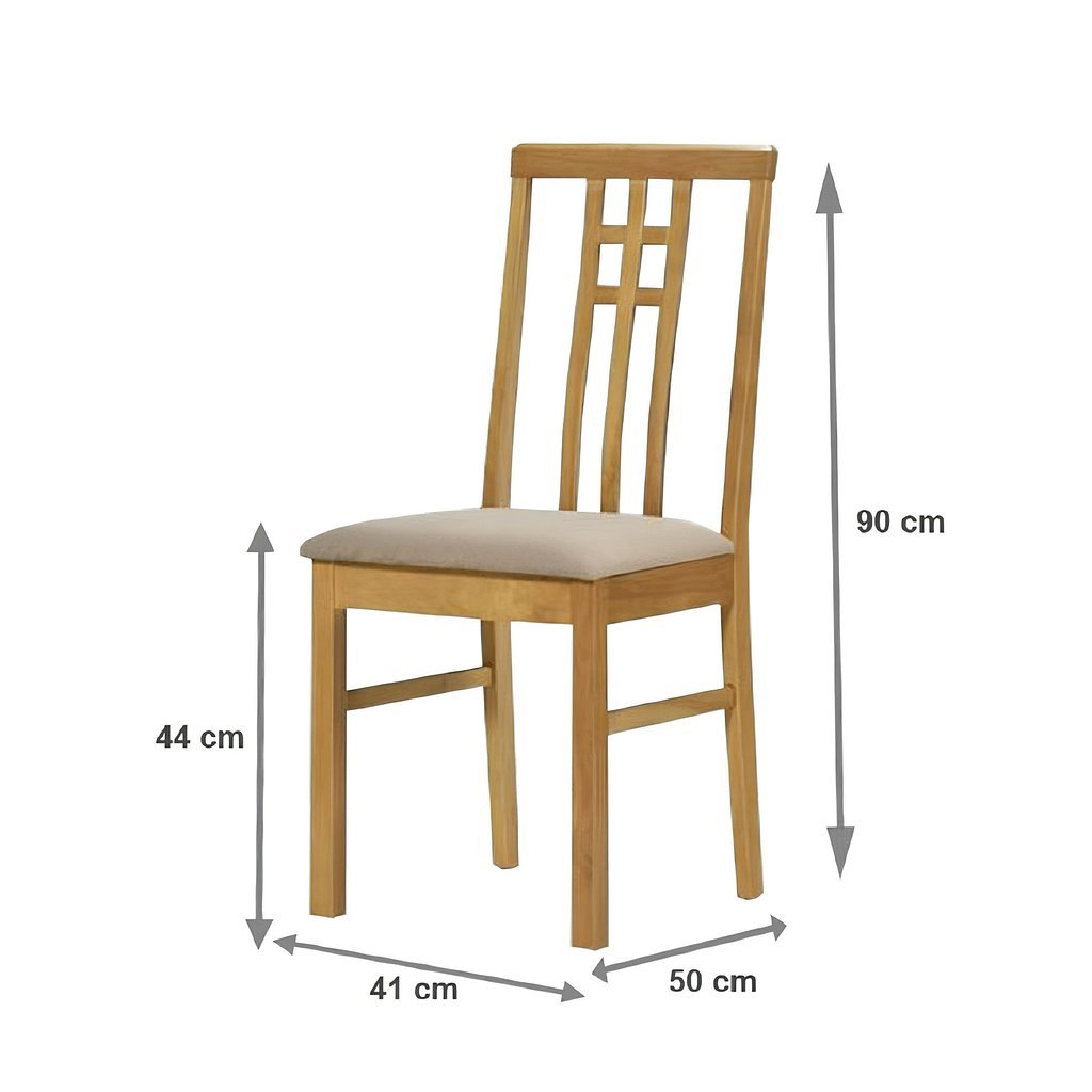 Jedálenská stolička SILAS kombinuje nadčasový dizajn s praktickosťou. Kvalitné drevo v odtieni dub sonoma a krémová látka vytvárajú harmonický vzhľad. Nosnosť 110 kg, rozmery 41x50x90 cm. Dodávaná v d