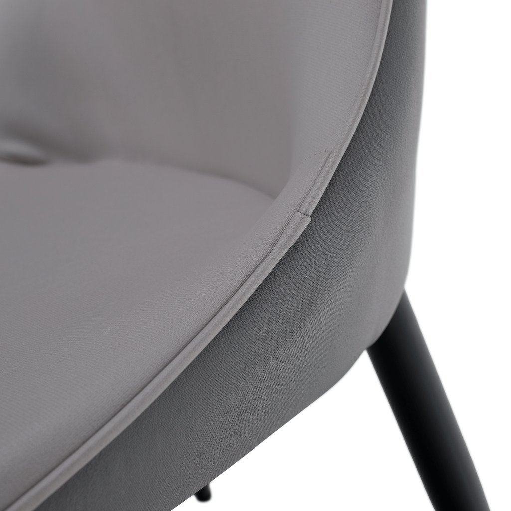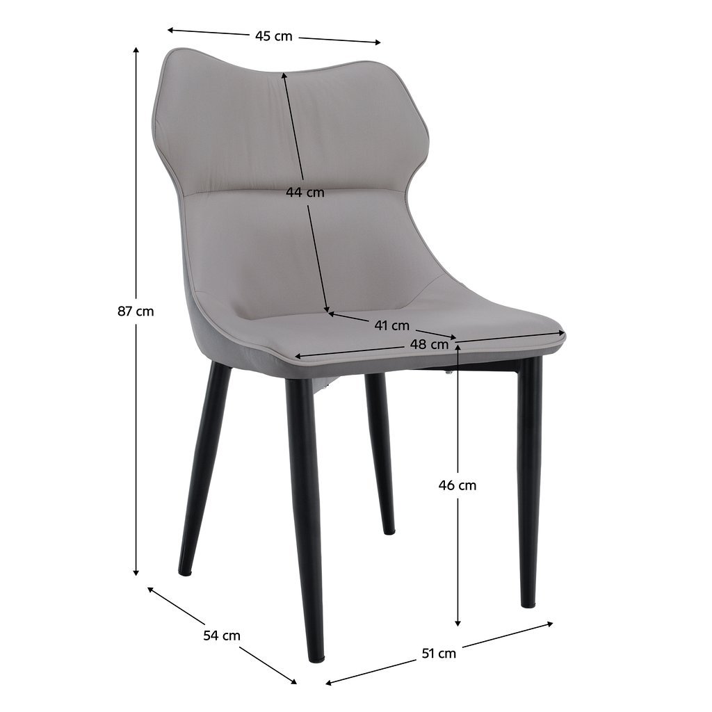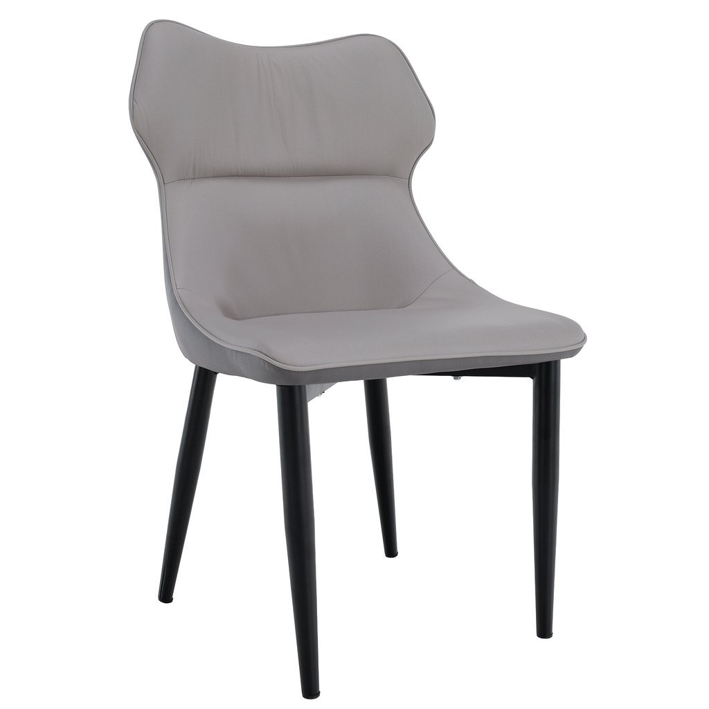 Jedálenská stolička TABITA v svetlosivej látke spojí štýlový dizajn s pohodlím. Čierne kovové nohy zaručujú stabilitu, zatiaľ čo dekoratívne šitie pridáva moderný nádych. Ideálna na skrášlenie vášho j