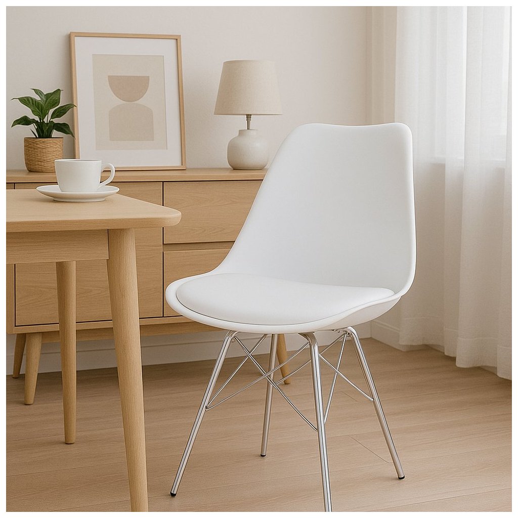 Jedálenská stolička TAMORA je ideálnym doplnkom pre vašu jedáleň, ktorý kombinuje moderný dizajn a praktickosť. S jej elegantným bielym prevedením a chrómovými detailmi sa stane stredobodom pozornosti a dodá vášmu interiéru štýlový vzhľad.