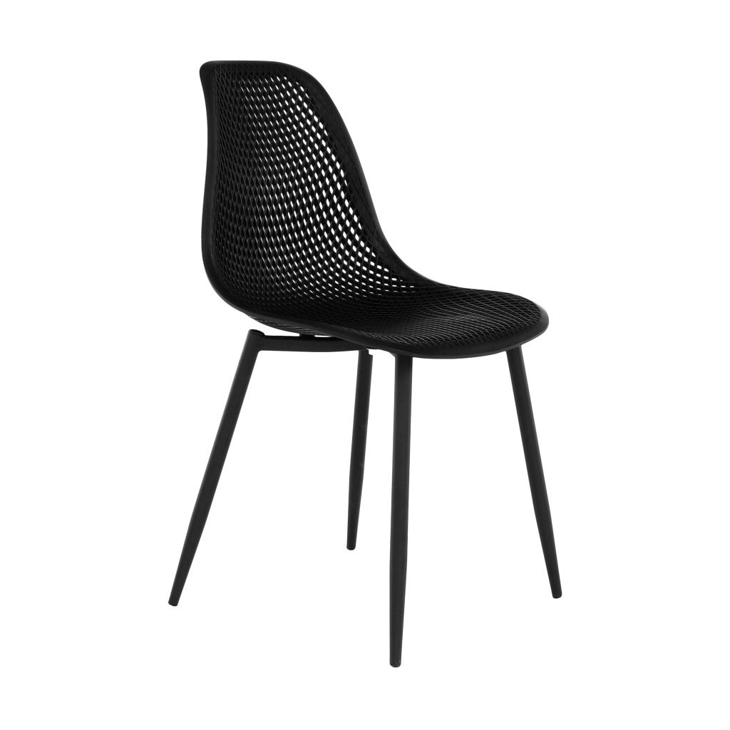 Jedálenská stolička TEGRA v čiernej farbe kombinujte moderný dizajn s praktickosťou. Plastové sedadlo a kovové nohy zaručujú stabilitu a komfort. Rozmery: 37x53x86 cm, nosnosť 90 kg.