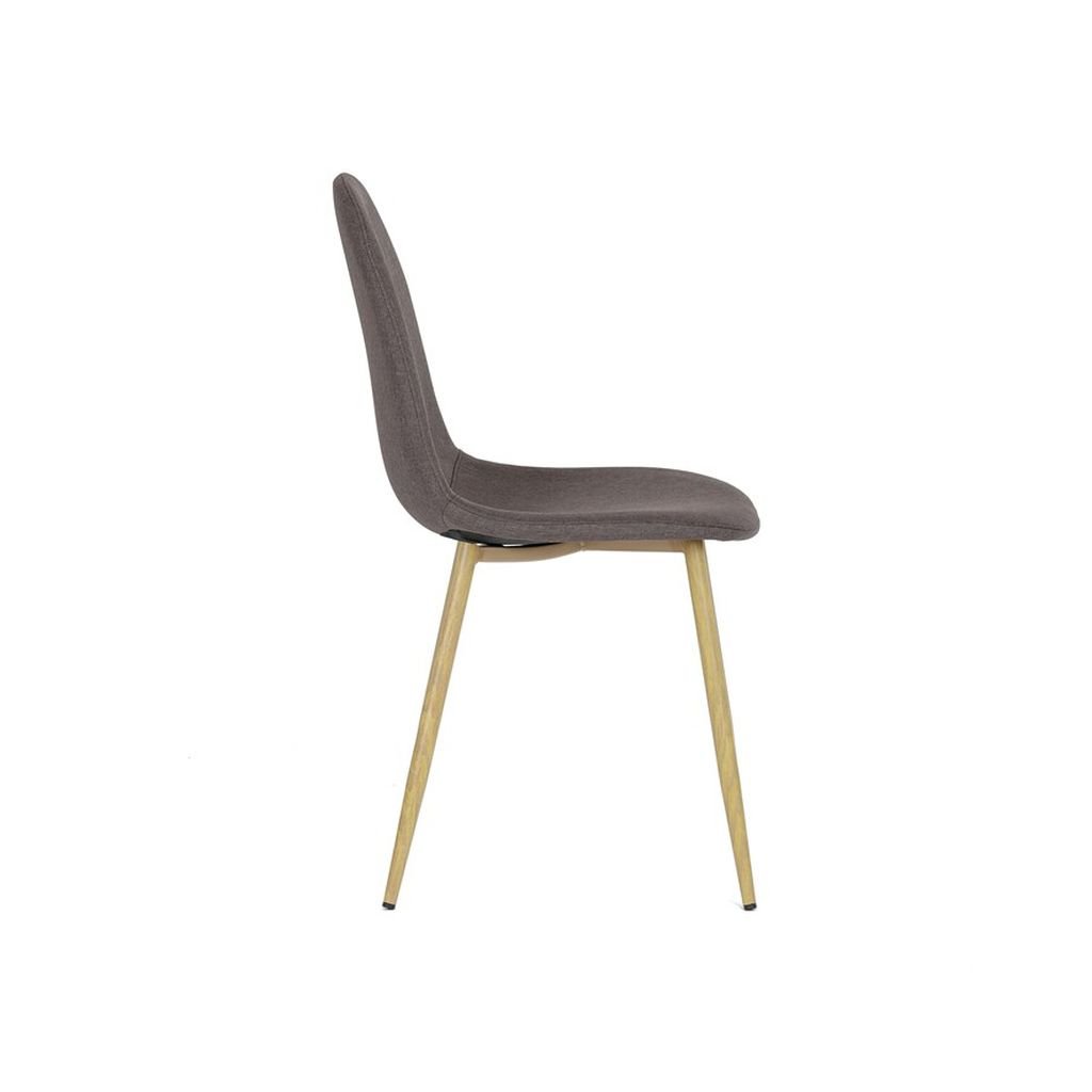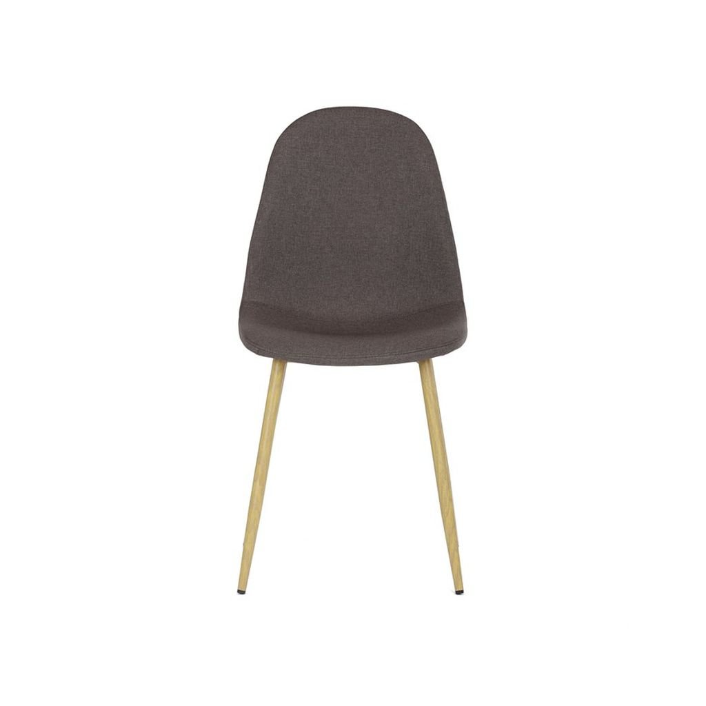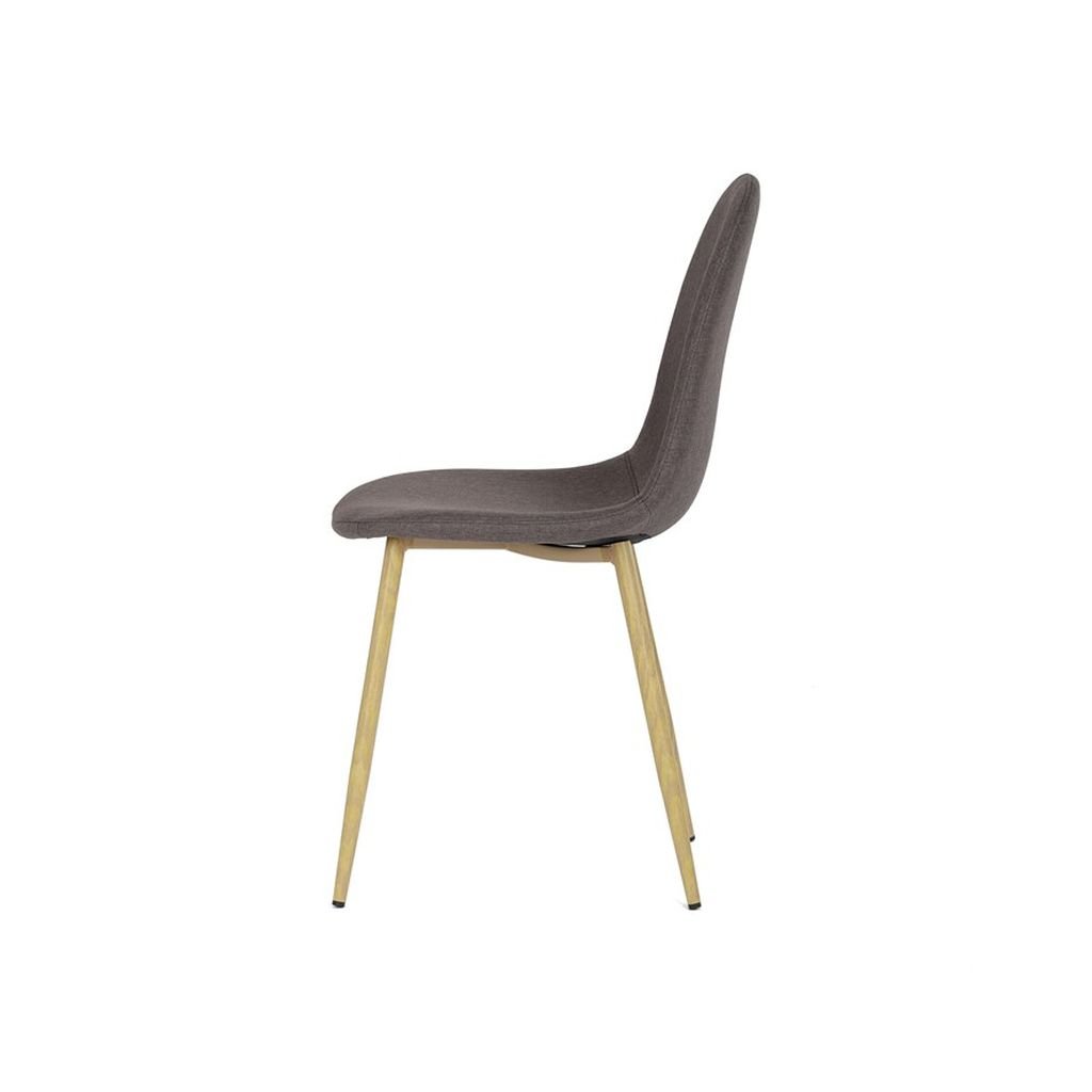 Potiahnutá kvalitnou hnedou látkou, táto stolička ponúka nielen príjemný povrch, ale aj jednoduchú údržbu. Stabilné kovové nohy v dekore dubu zaisťujú jej pevnosť a dodávajú estetický kontrast, čím sa stáva atraktívnym kusom nábytku vo vašej domácnosti.