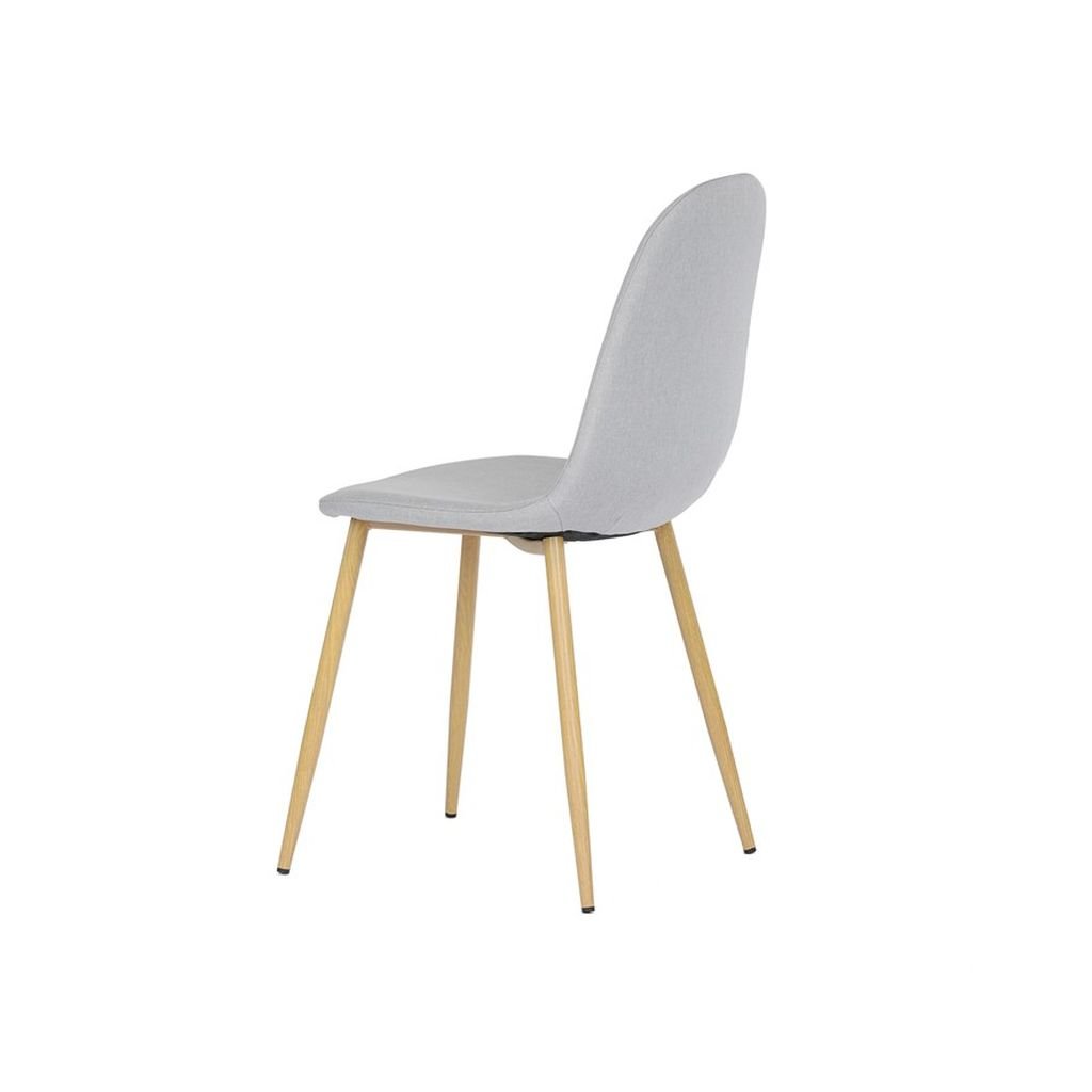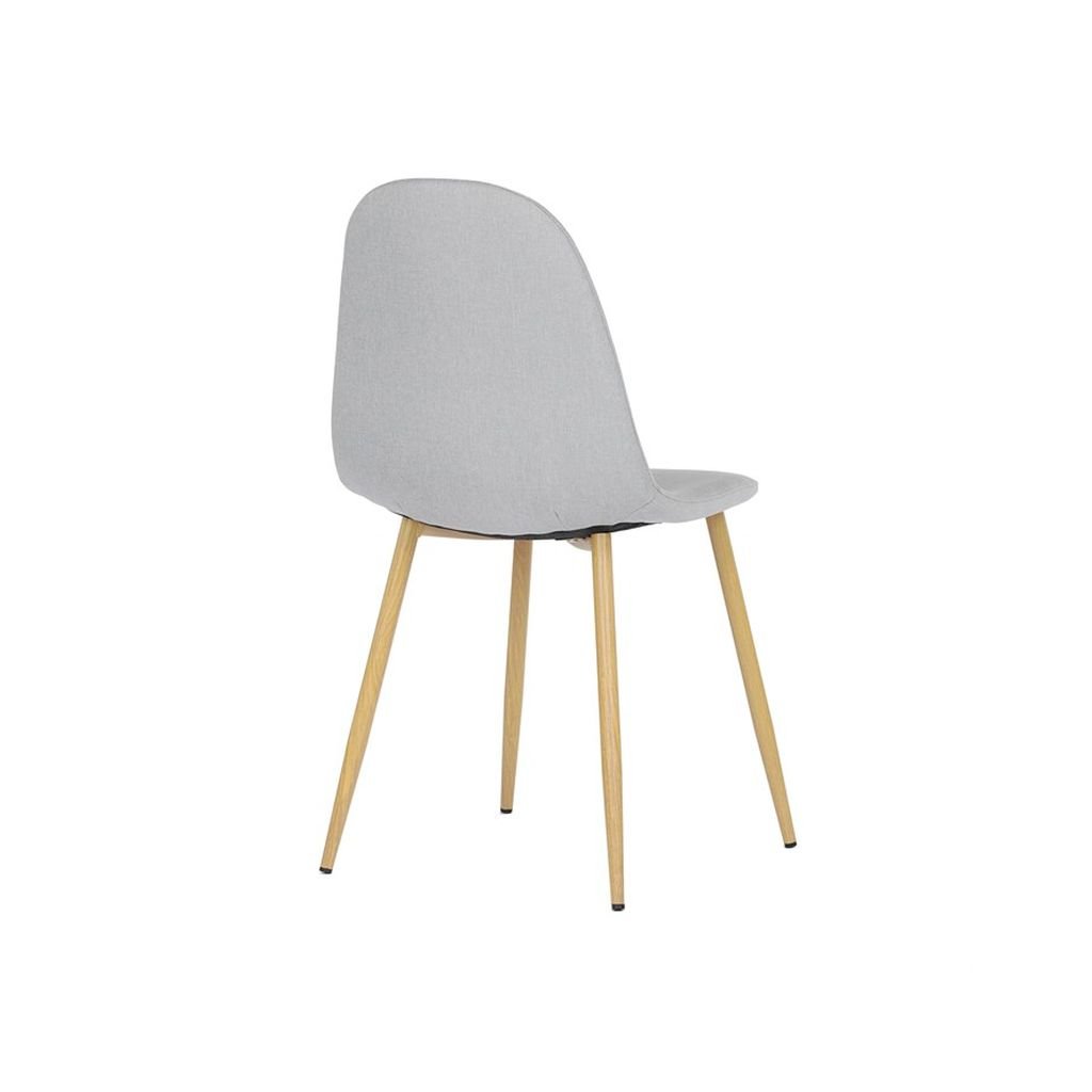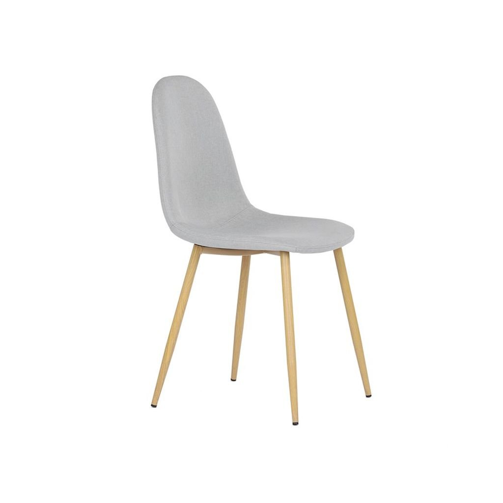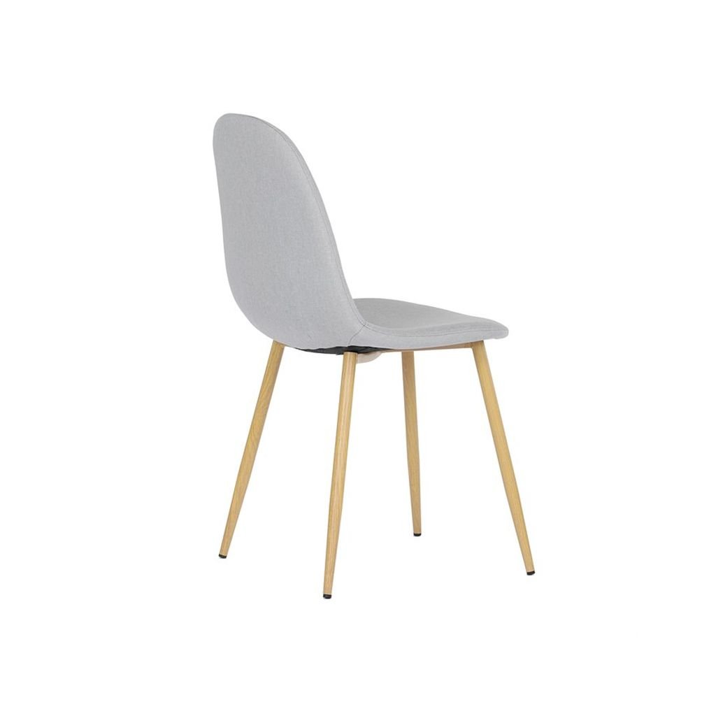 Čalúnený sedák a operadlo v neutrálnom odtieni striebornej farby sú nielen štýlové, ale aj veľmi pohodlné. Kovové nohy s povrchovou úpravou v dekore dreva zaručujú stabilitu a dlhú životnosť, čo robí túto stoličku ideálnou na každodenné používanie.