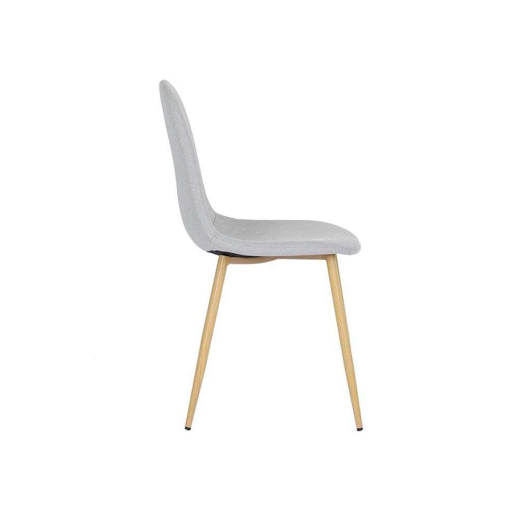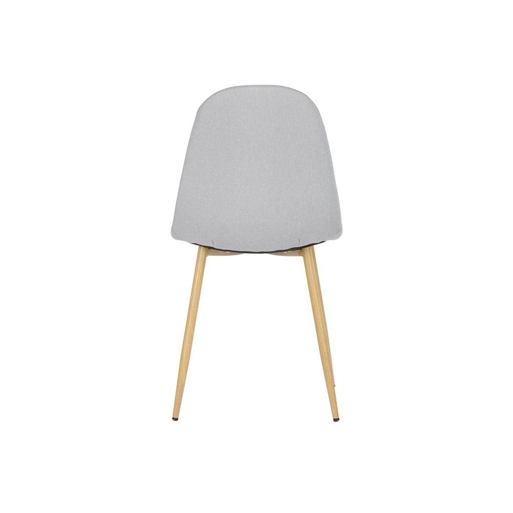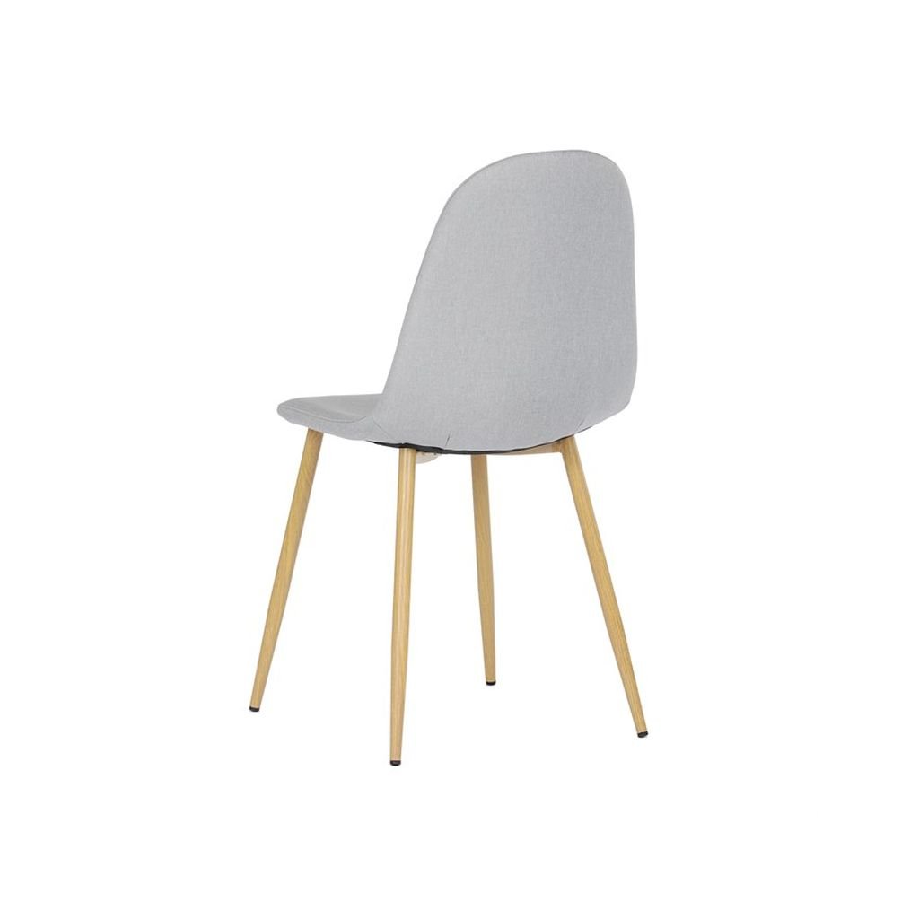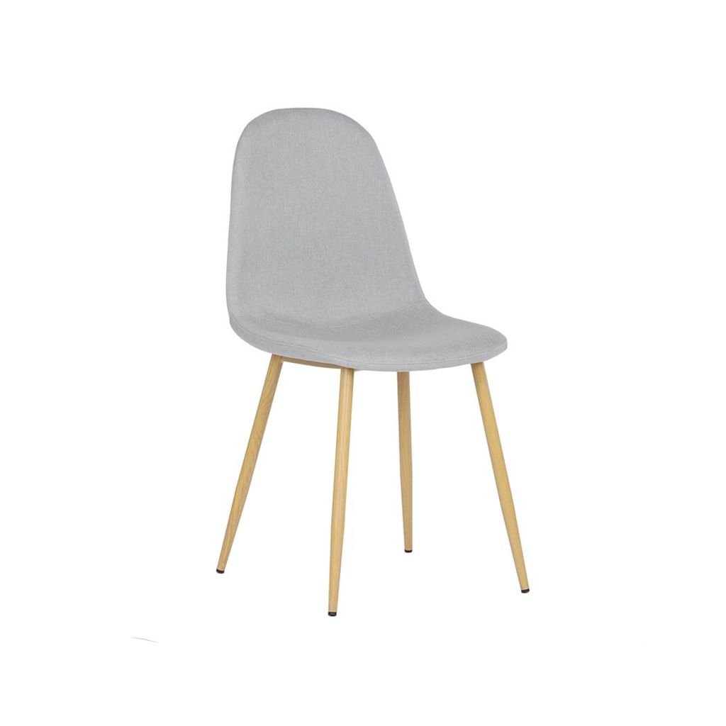 Čalúnený sedák a operadlo v neutrálnom odtieni striebornej farby sú nielen štýlové, ale aj veľmi pohodlné. Kovové nohy s povrchovou úpravou v dekore dreva zaručujú stabilitu a dlhú životnosť, čo robí túto stoličku ideálnou na každodenné používanie.