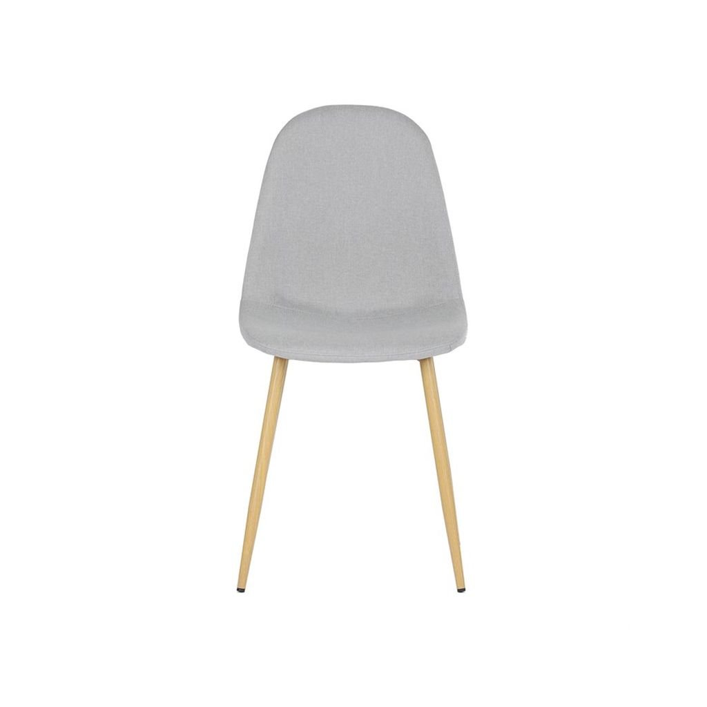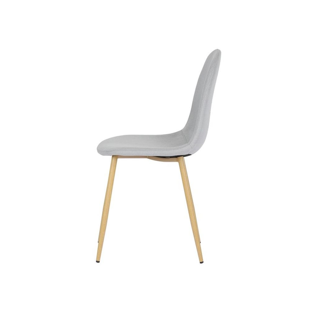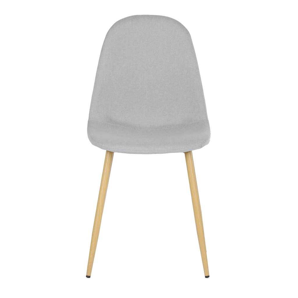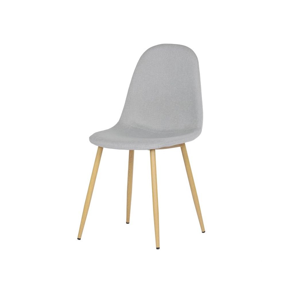Čalúnený sedák a operadlo v neutrálnom odtieni striebornej farby sú nielen štýlové, ale aj veľmi pohodlné. Kovové nohy s povrchovou úpravou v dekore dreva zaručujú stabilitu a dlhú životnosť, čo robí túto stoličku ideálnou na každodenné používanie.