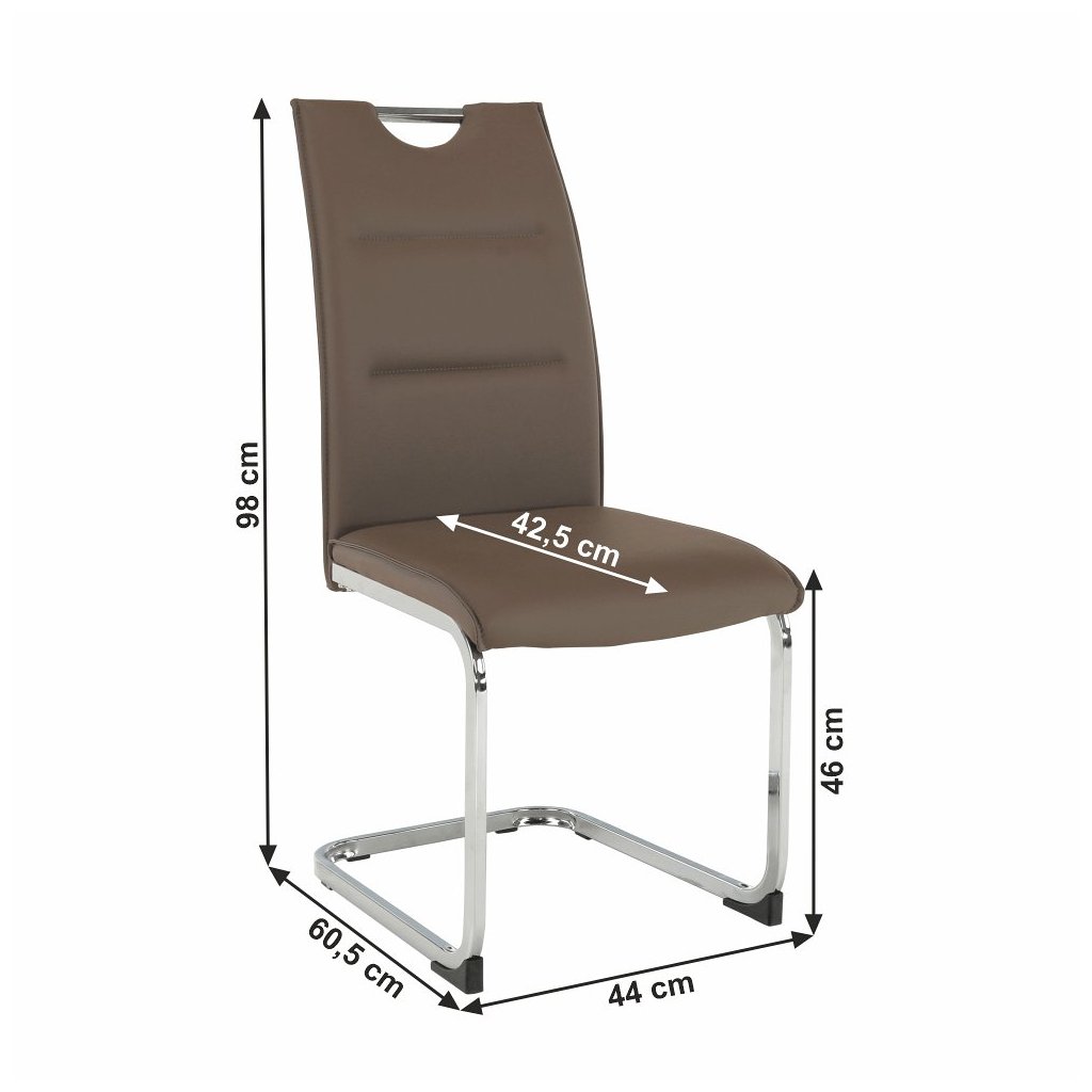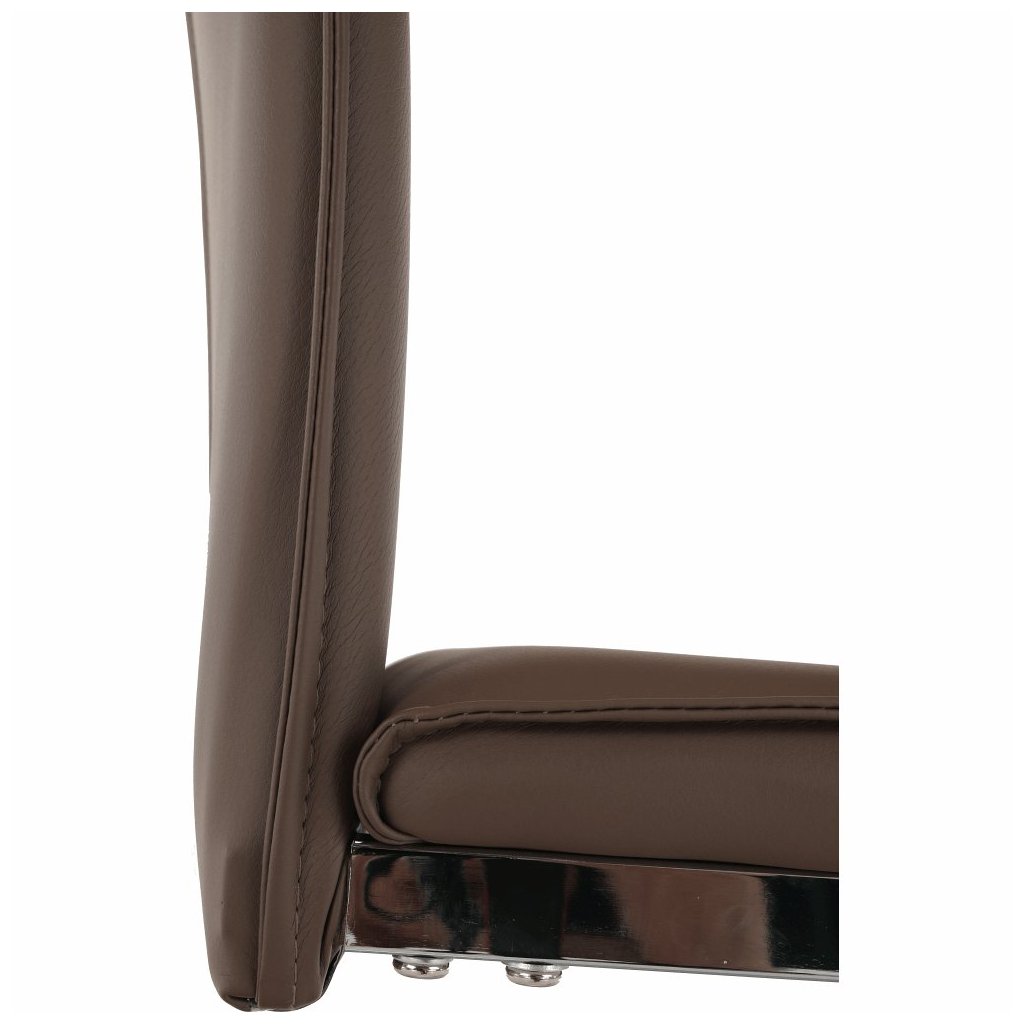 Jedálenská stolička TOSENA v hnedej ekokoži spája elegantný dizajn s kvalitnou chrómovou konštrukciou. Stabilná a pohodlná, ideálna na každú jedáleň. Rozmery: 44x60,5x98 cm. Nosnosť 90 kg.