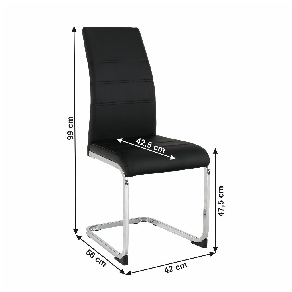 Jedálenská stolička VATENA v čiernej ekokoži spojuje moderný dizajn s kvalitným spracovaním. Chrómová konštrukcia zabezpečuje stabilitu a nosnosť 90 kg. Rozmery: 42x56x99 cm. Dodávaná v demonte.