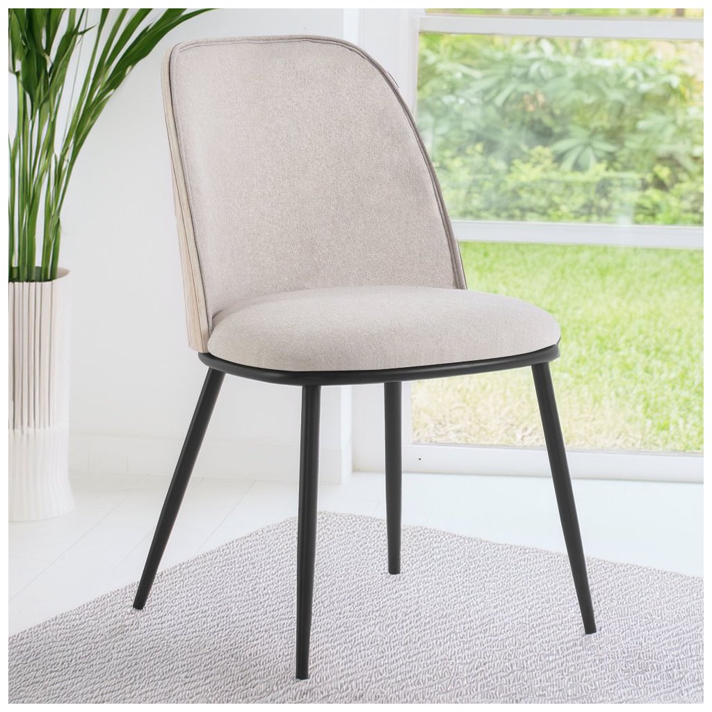 Jedálenská stolička VUDIA v béžovohnedej látke kombinuje eleganciu a pohodlie. Je ideálna do každej jedálne, pričom jej moderný dizajn osvieži váš interiér.